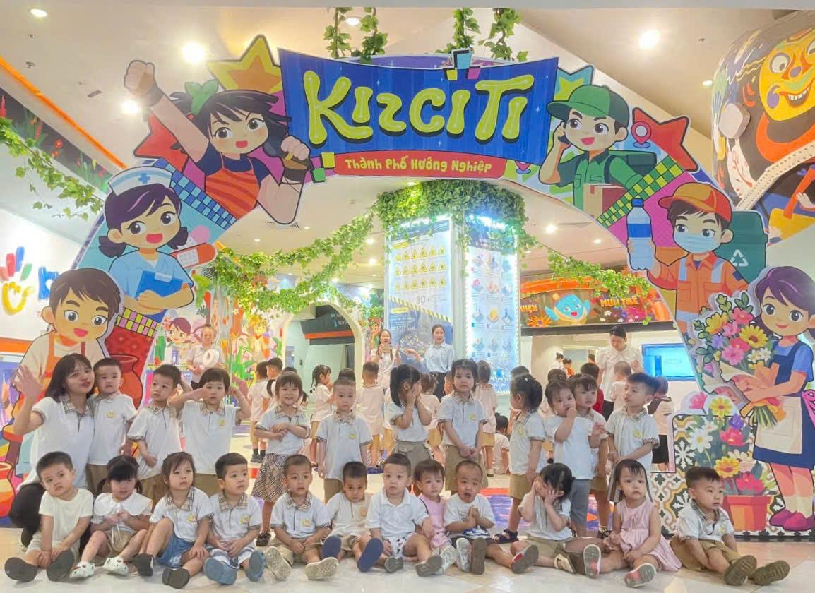 Các bé lớp B2 trường mầm non Tuổi hoa hoạt động tham quan, trải nghiệm tại thành phố hướng nghiệp Kizcity