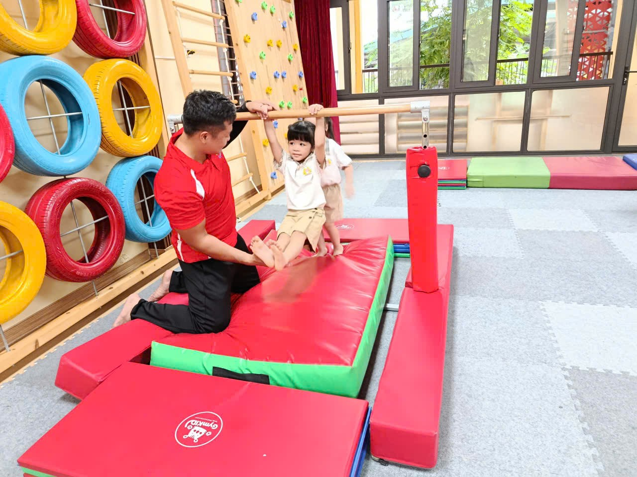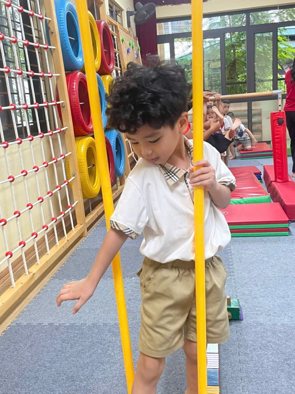 Hôm nay, các bạn nhỏ lớp Mẫu giáo nhỡ B3 đã cùng nhau bước vào một hành trình Gymkids thật vui nhộn. Trong không gian rộn ràng tiếng nhạc và tiếng cười, từng em như trở thành “nhà thám hiểm nhí” đầy năng lượng, sẵn sàng chinh phục những thử thách vận động mới mẻ.