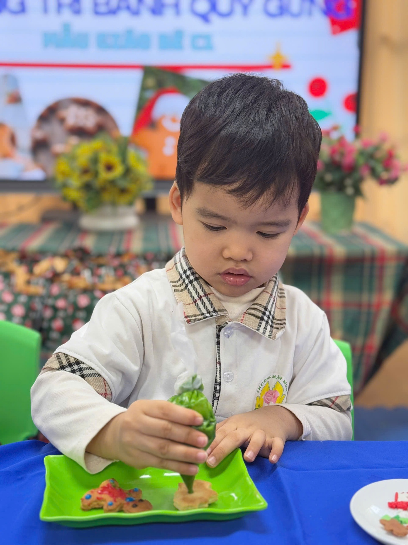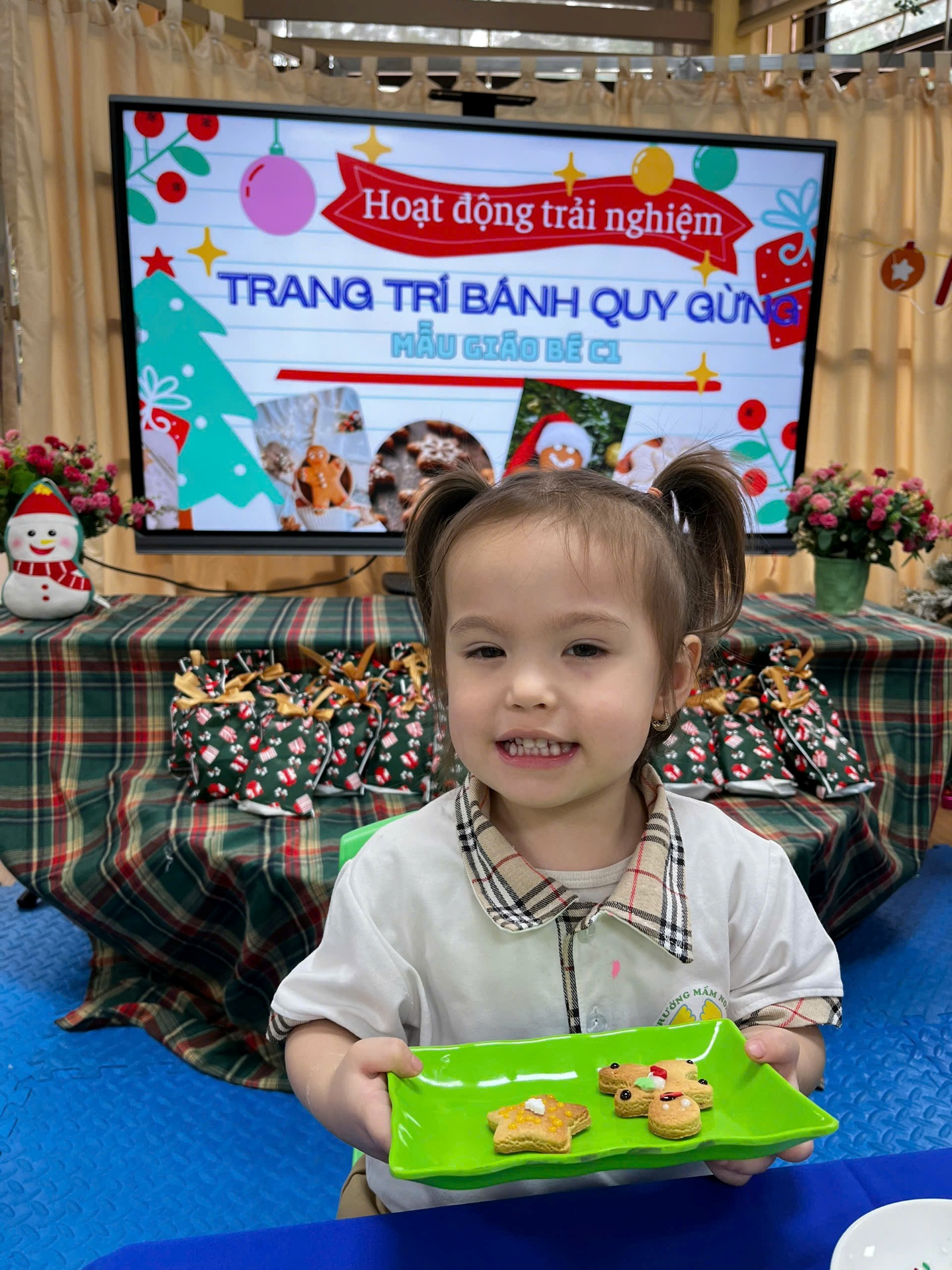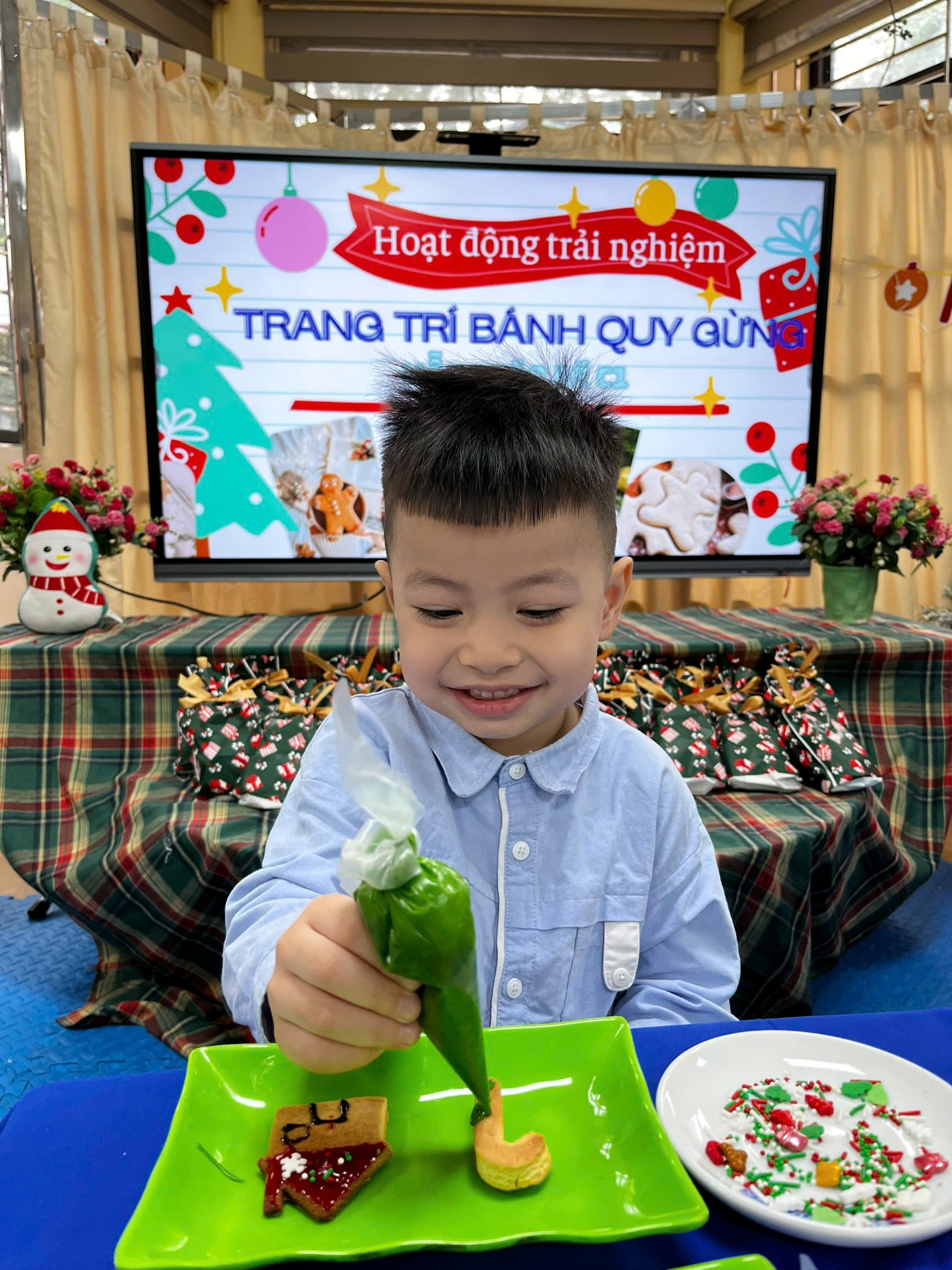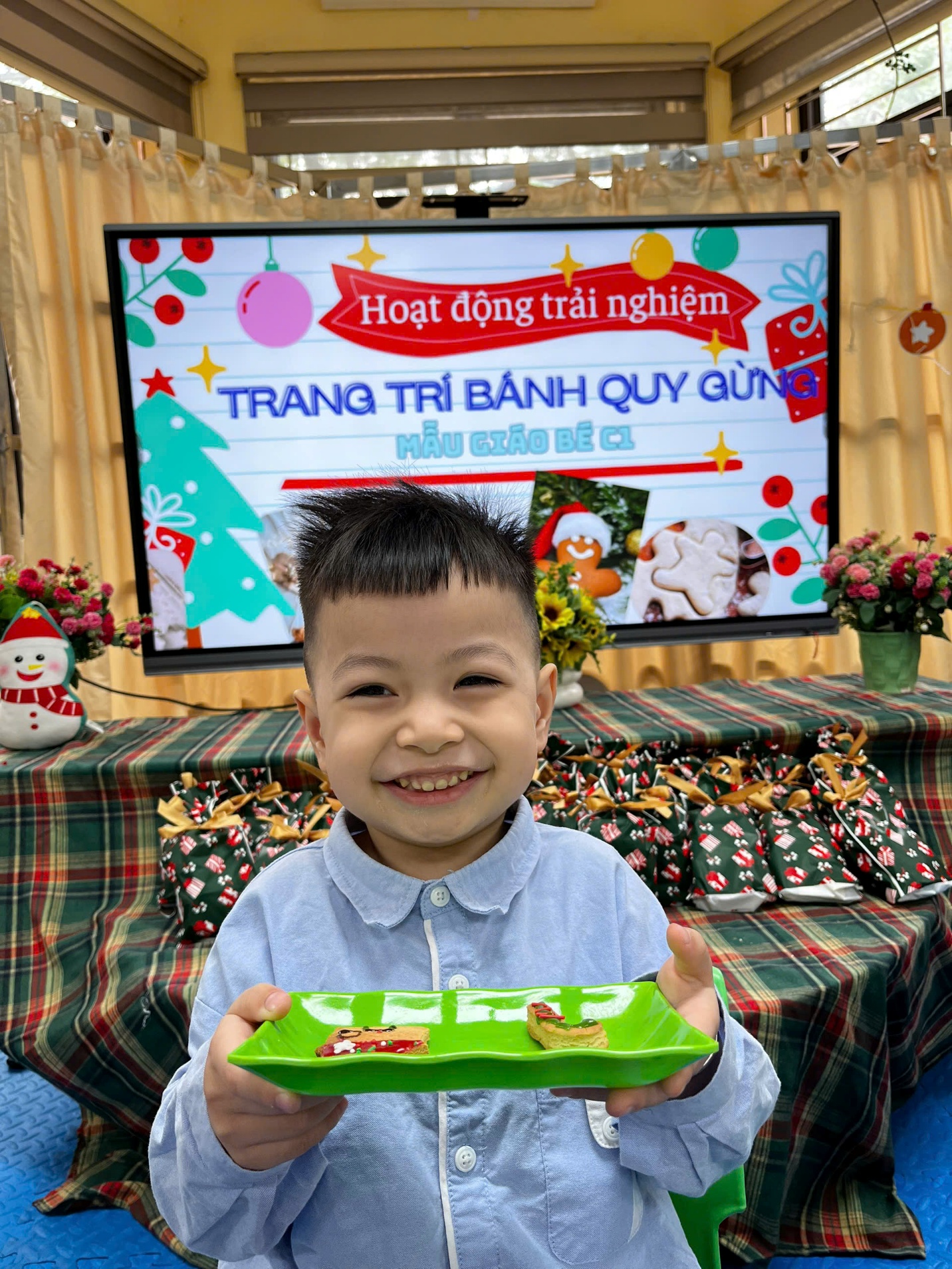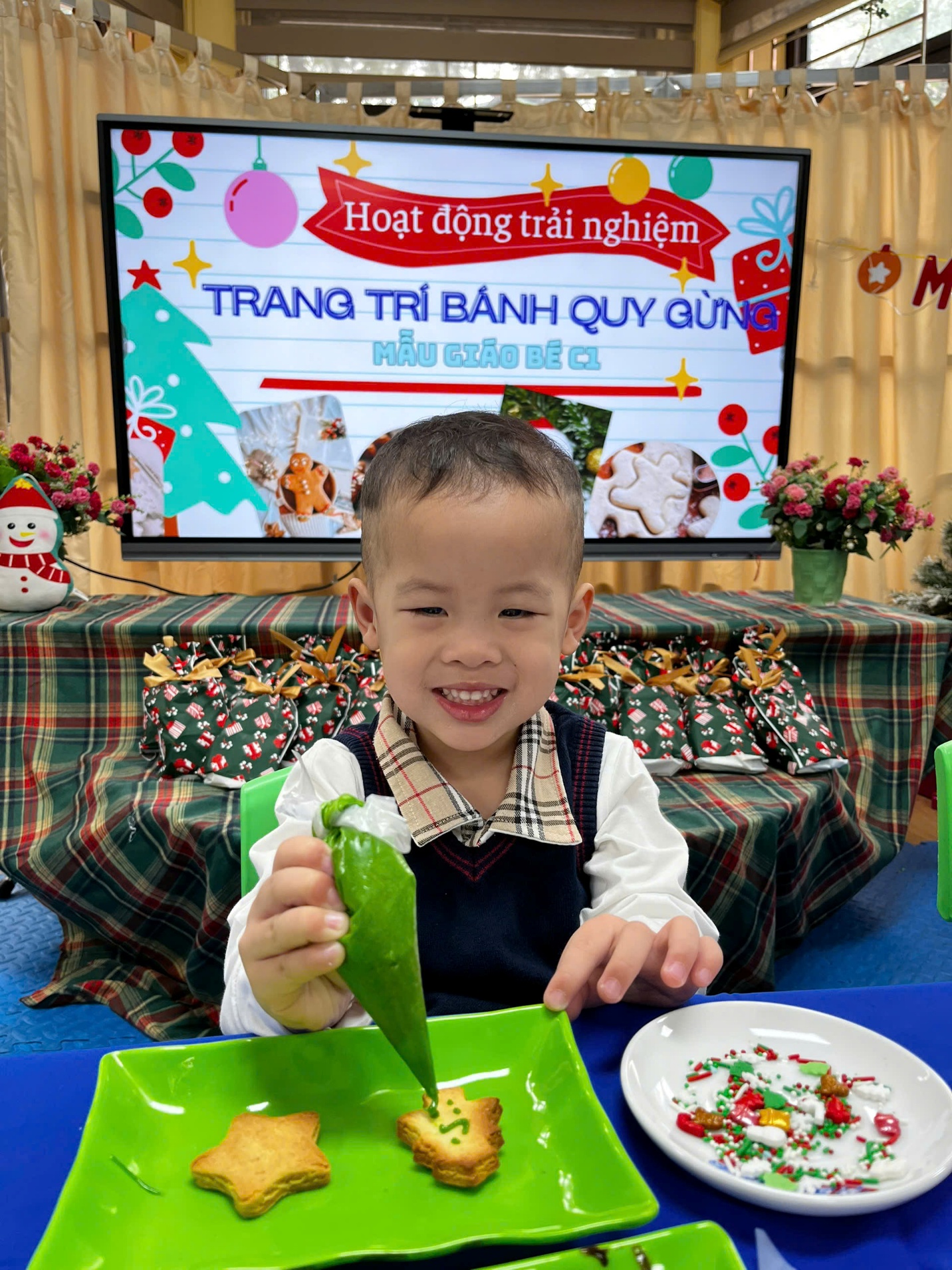 . Dưới sự hướng dẫn nhẹ nhàng của giáo lớp bé C1 các con tạo hình những chiếc bánh gừng, trang trí thật xinh xắn mang đậm sắc màu Noel. Mùi thơm ngọt ngào của bánh gừng lan tỏa khắp không gian lớp học, làm cho ngày Giáng sinh thêm trọn vẹn. Qua buổi trải nghiệm, các bé cảm nhận được niềm vui lao động và ý nghĩa của việc tự tay tạo ra sản phẩm cho ngày lễ.