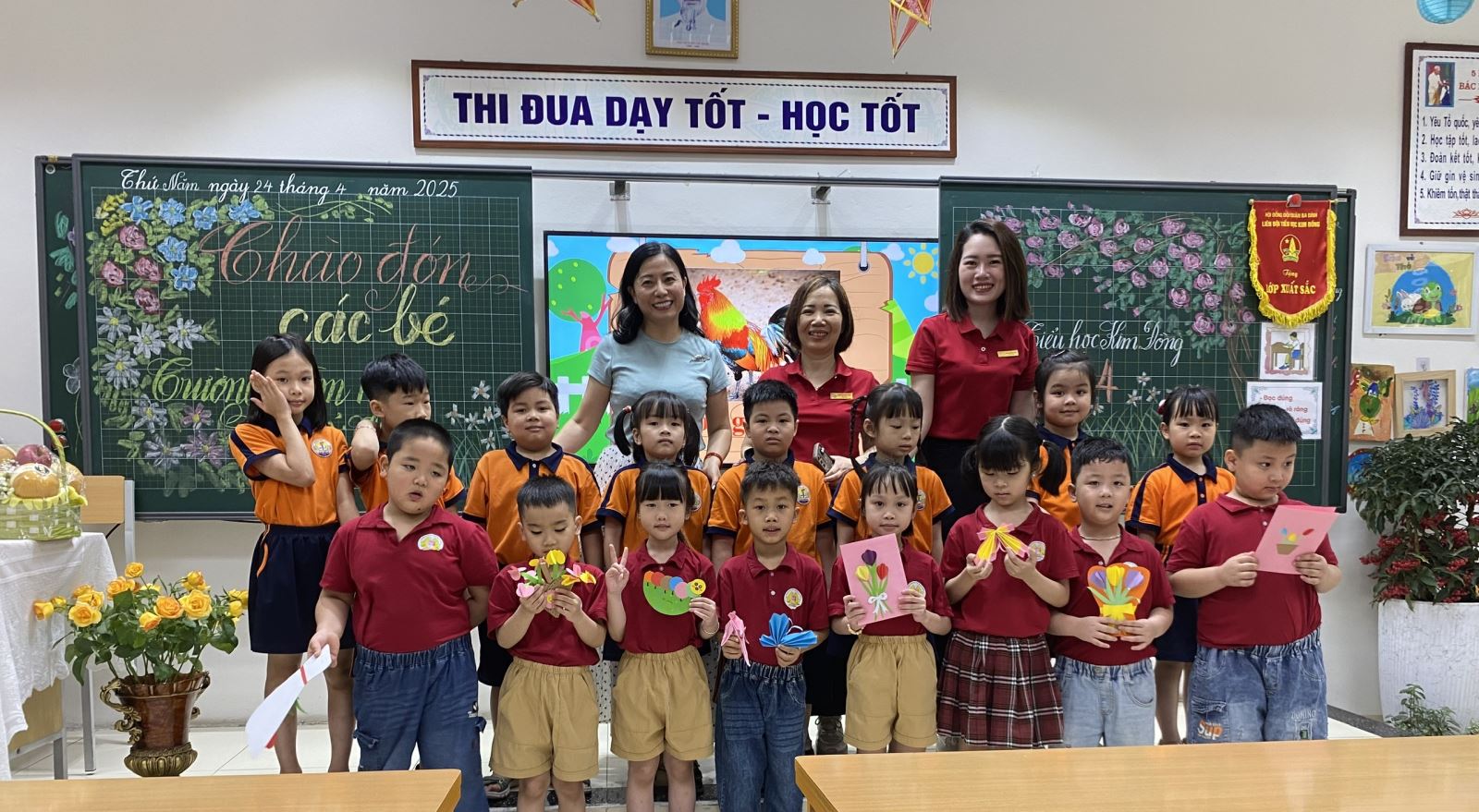 Cô trò lớp MGL A1 giao lưu, học tập tại lớp 1A4 trường TH Kim Đồng