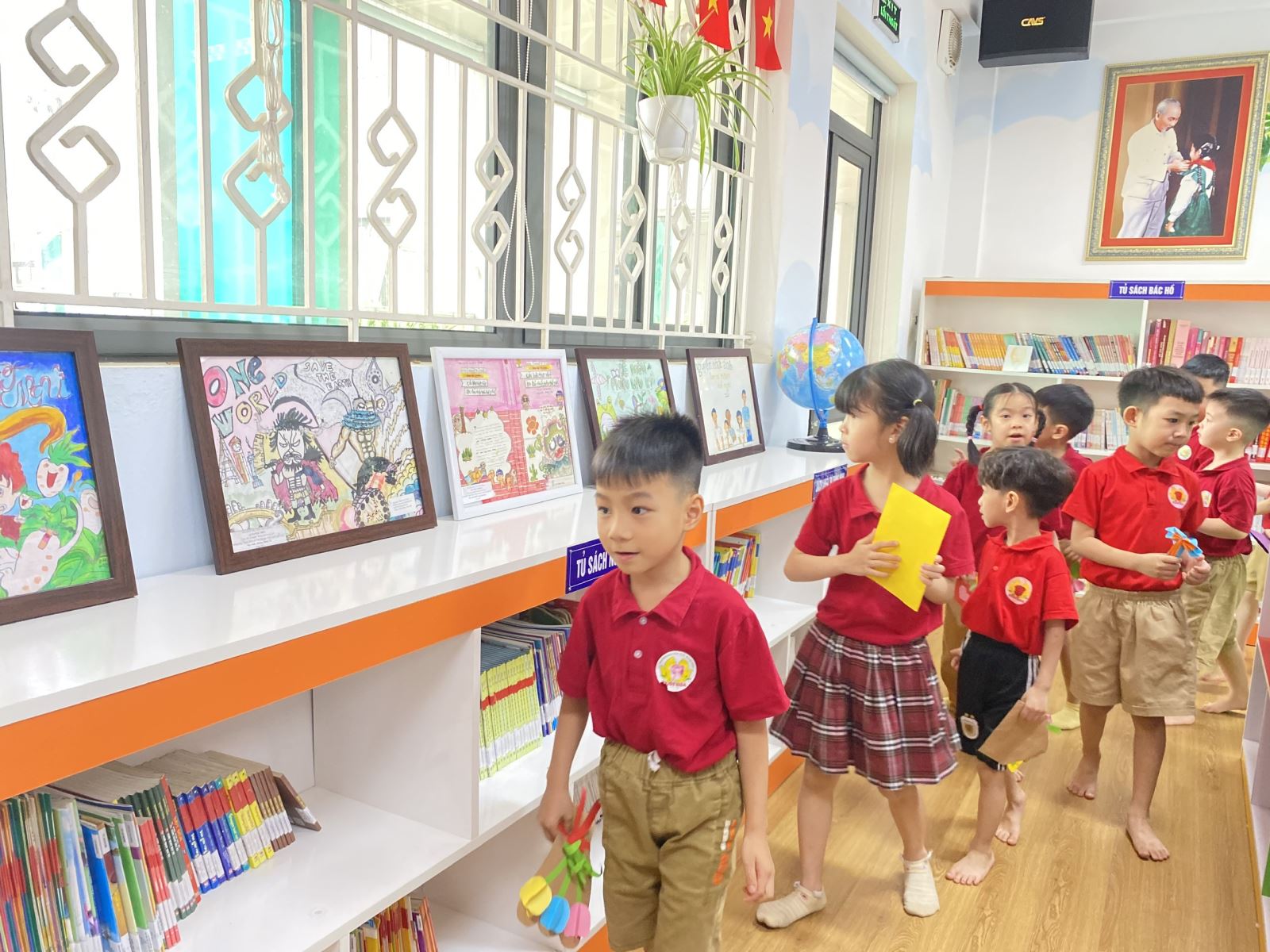 Các bạn nhỏ còn được đi tham quan phòng thư viện của trường