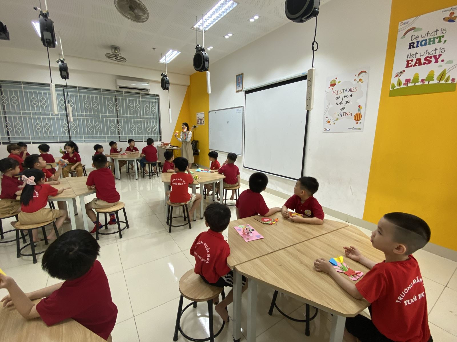 Tại đây, các bé được tham quan lớp học, thư viện, phòng chức năng và tham gia một tiết học thử đầy hấp dẫn. Không gian trường học rộng rãi, thân thiện cùng sự chào đón nồng nhiệt từ các thầy cô đã khiến các bạn nhỏ rất hào hứng.