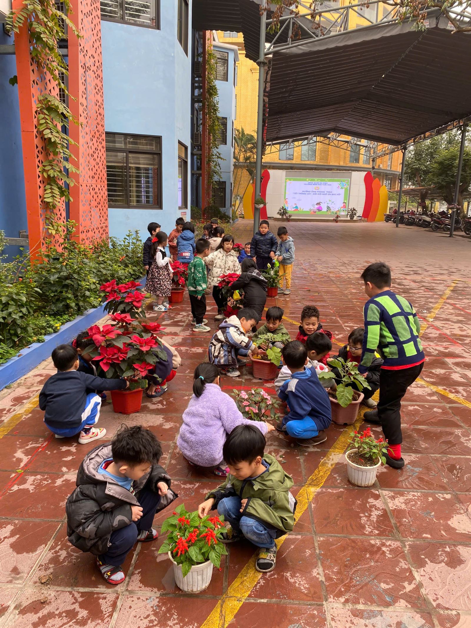 Hưởng ứng phong trào "Tết trồng cây đời đời nhớ ơn Bác Hồ", các bạn nhỏ lớp A1 trường mầm non Tuổi Hoa đã cùng nhau tham gia hoạt động trồng cây đầy ý nghĩa. Dưới sự hướng dẫn của các cô, các bé đã cùng nhau chăm sóc những mầm non mới, tưới nước, vun xới đất và tìm hiểu về lợi ích của việc trồng - chăm sóc cây xanh. Những cây xanh được trồng không chỉ tạo thêm không gian xanh mát cho trường mà còn góp phần giáo dục các bé về ý thức bảo vệ môi trường.