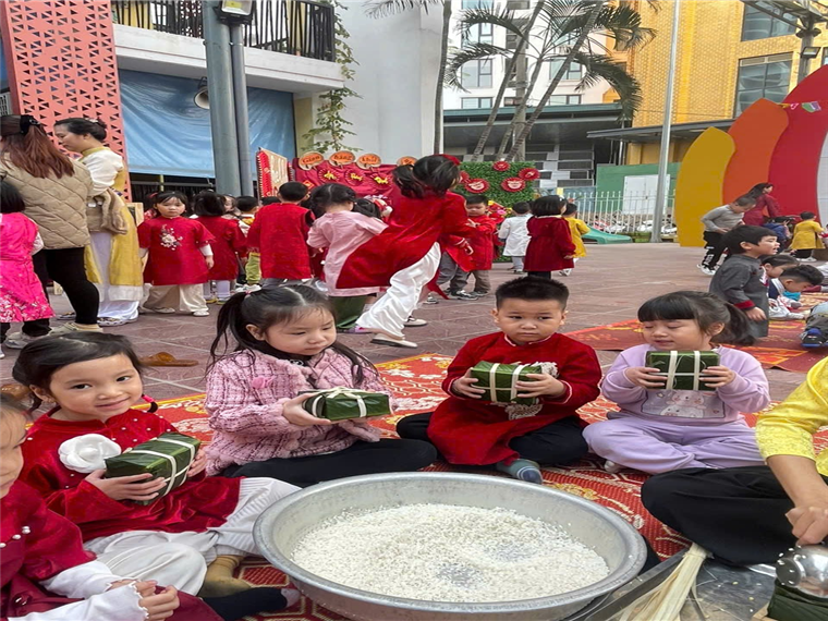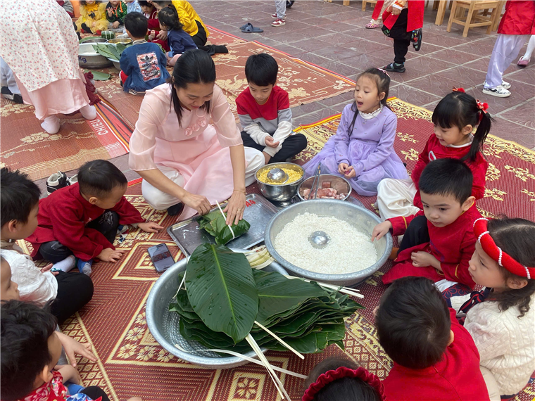 Sáng ngày 17/1 Cùng với chuỗi hoạt động chuẩn bị đón Tết Nguyên Đán Xuân Ất Tỵ, trường Mầm non Tuổi Hoa tổ chức hoạt động trải nghiệm rất đặc biệt, đó là "Lễ hội gói bánh chưng”. Trong lễ hội trẻ đã được cùng các cô chuẩn bị, làm quen, tìm hiểu về các nguyên vật liệu để gói bánh chưng. Với sự nhiệt tình tham gia của các cô giáo và trẻ cùng nhau gói nên những chiếc bánh thật đẹp. Thú vị hơn là trẻ rất hào hứng được trực tiếp tham gia gói bánh chưng, tạo ra thành phẩm do chính bàn tay mình làm ra.
