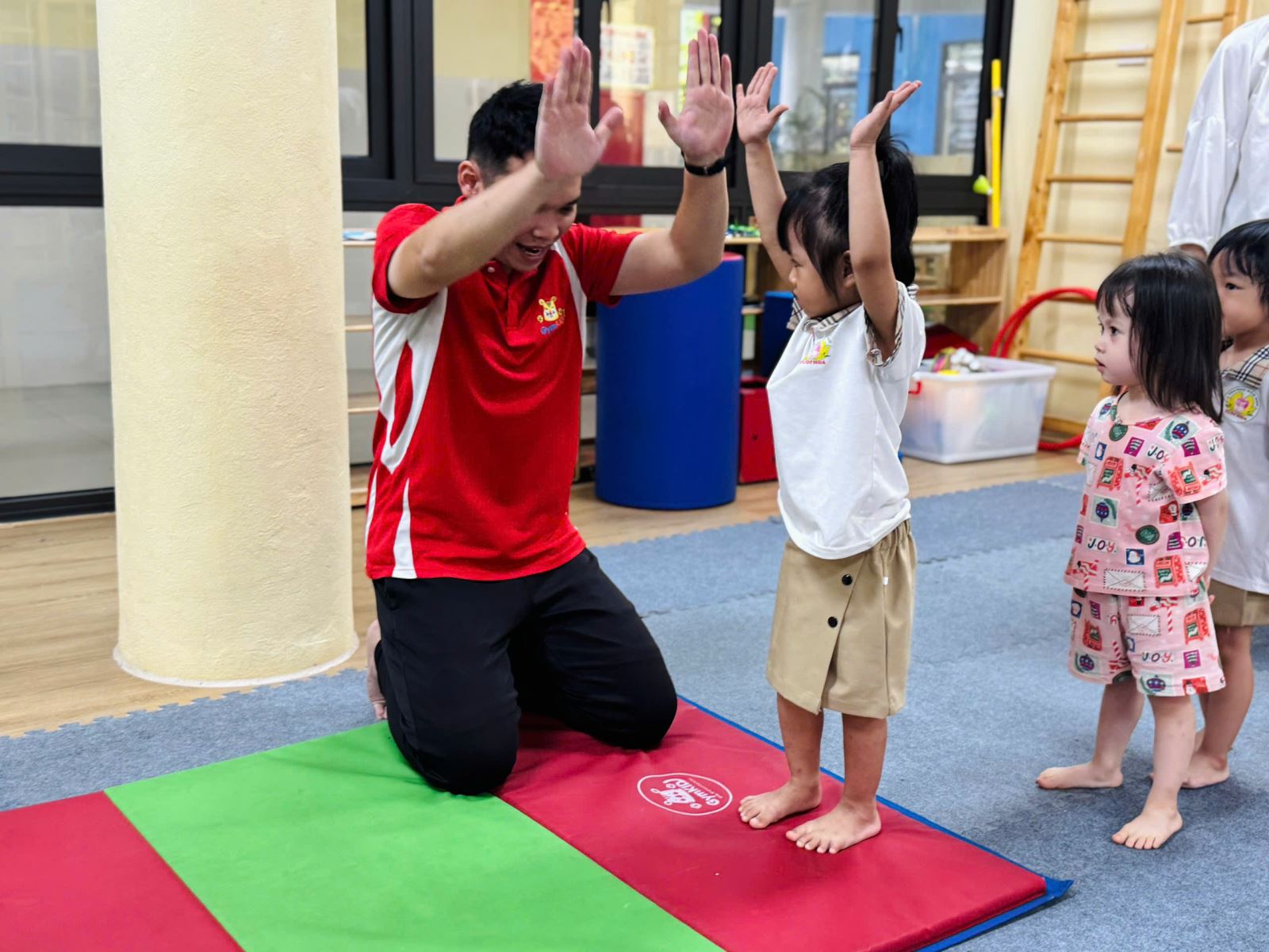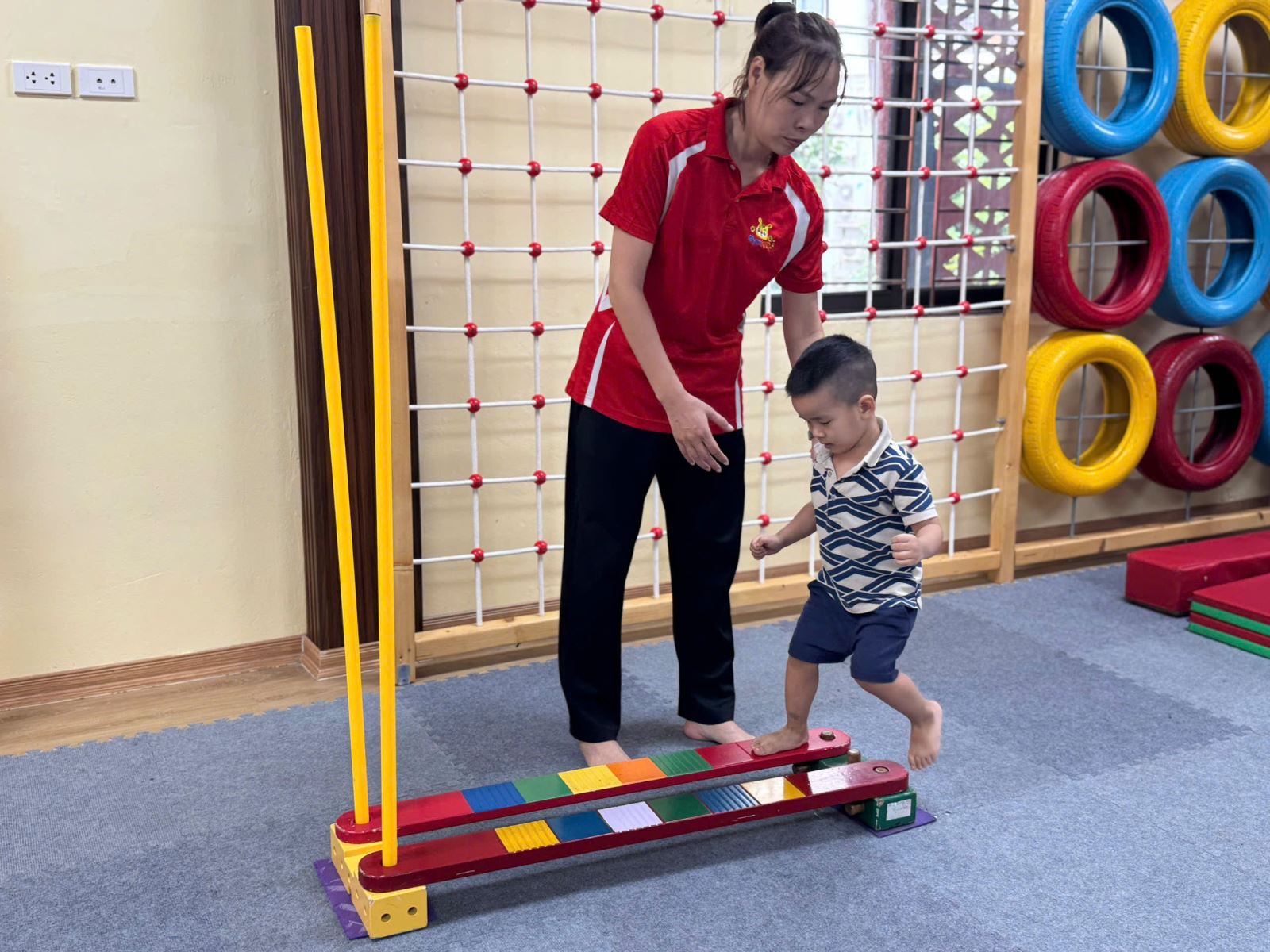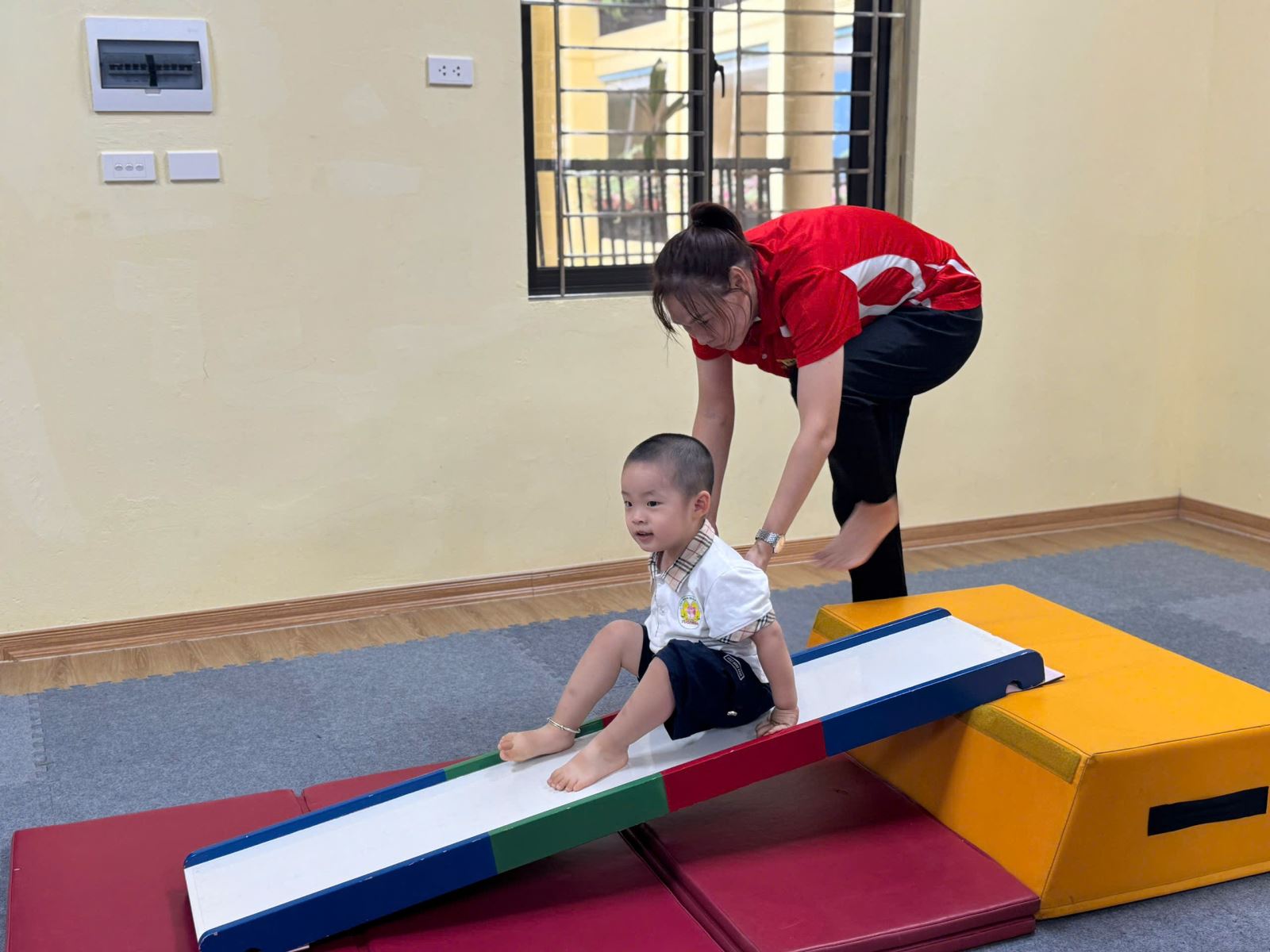 Các bé hào hứng tham gia tập luyện với sự hướng dẫn và hỗ trợ nhiệt tình của các thầy cô .