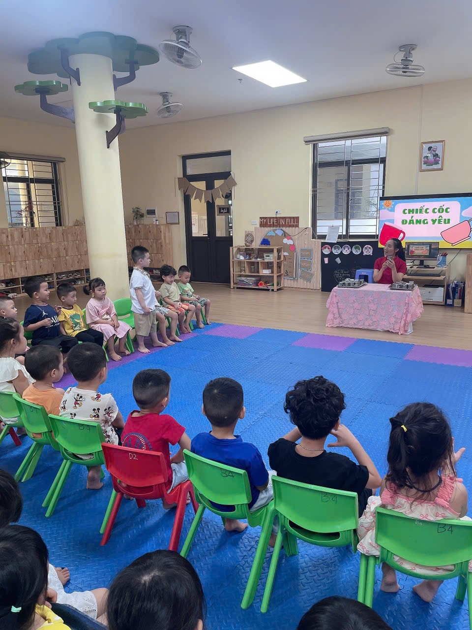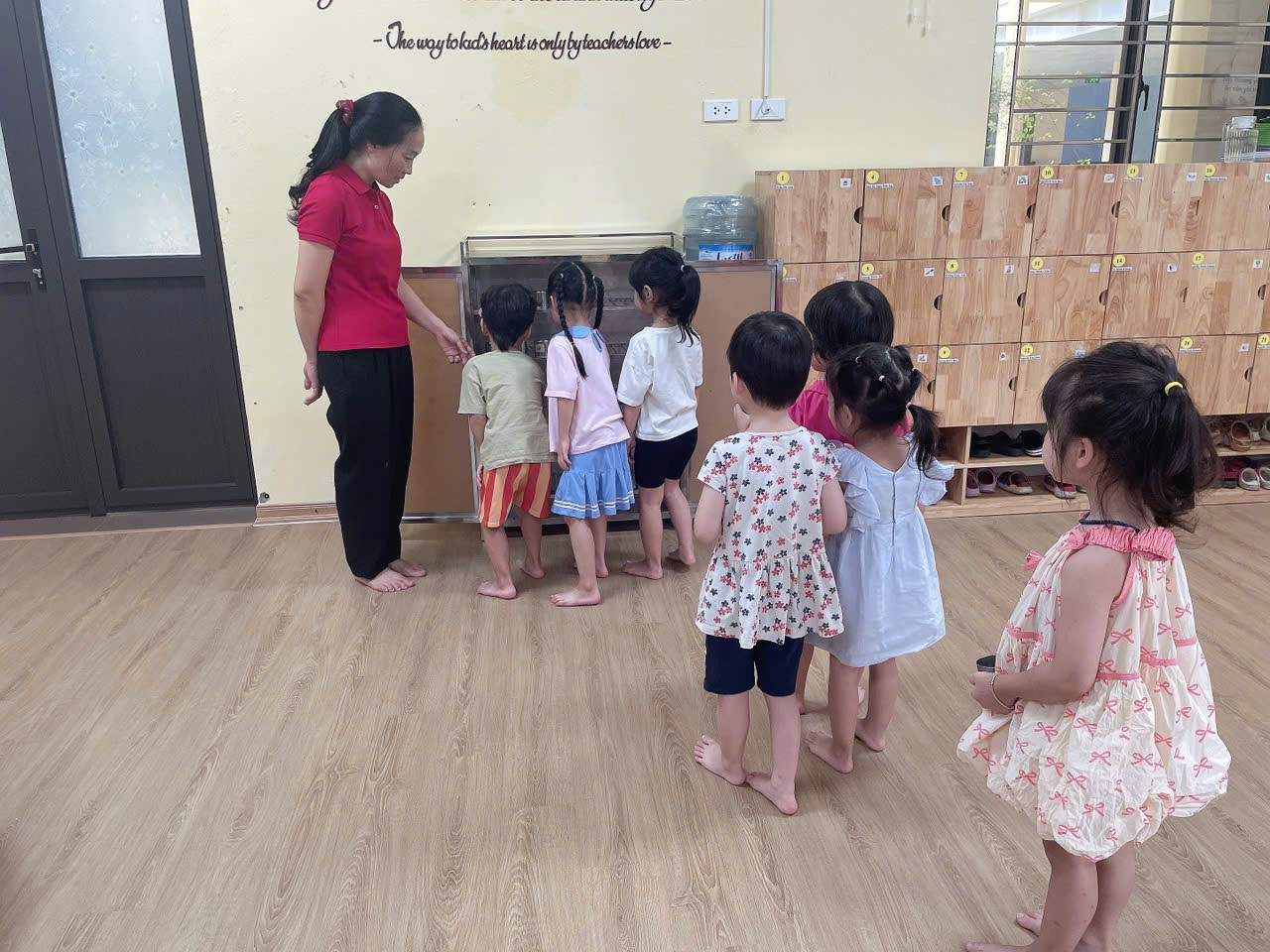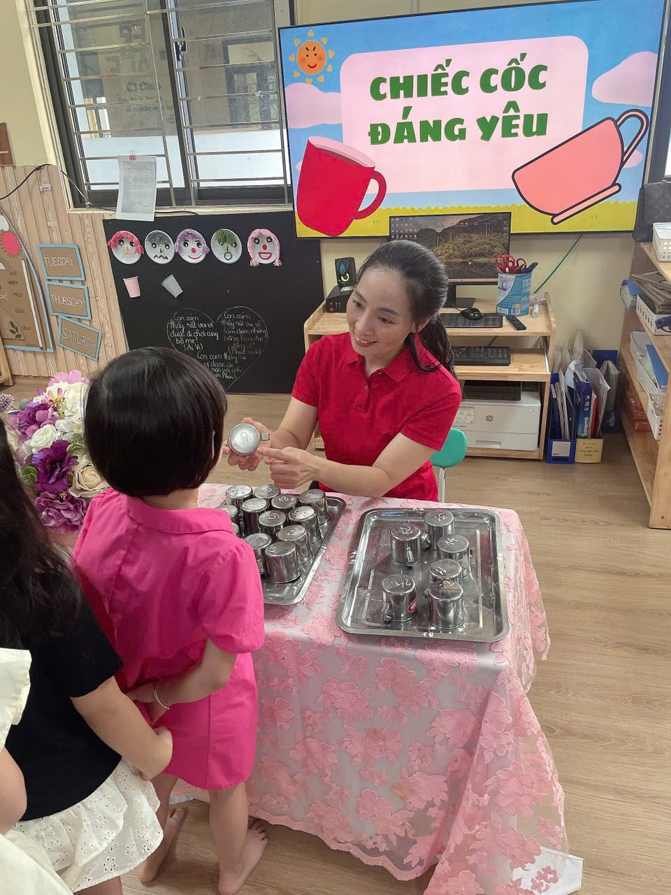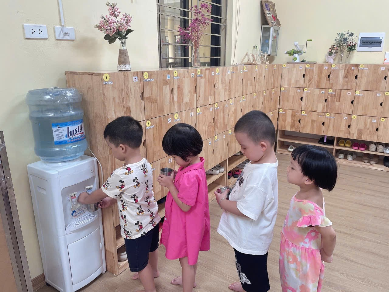 Với sự hướng dẫn tận tình của cô giáo, các bé được làm quen với chiếc cốc uống nước – một vật dụng tưởng chừng đơn giản nhưng lại chứa đựng nhiều bài học quý giá. Các con được học cách phân biệt cốc của mình thông qua màu sắc, hình dán cá nhân hoặc ký hiệu riêng biệt để tránh nhầm lẫn với bạn khác.