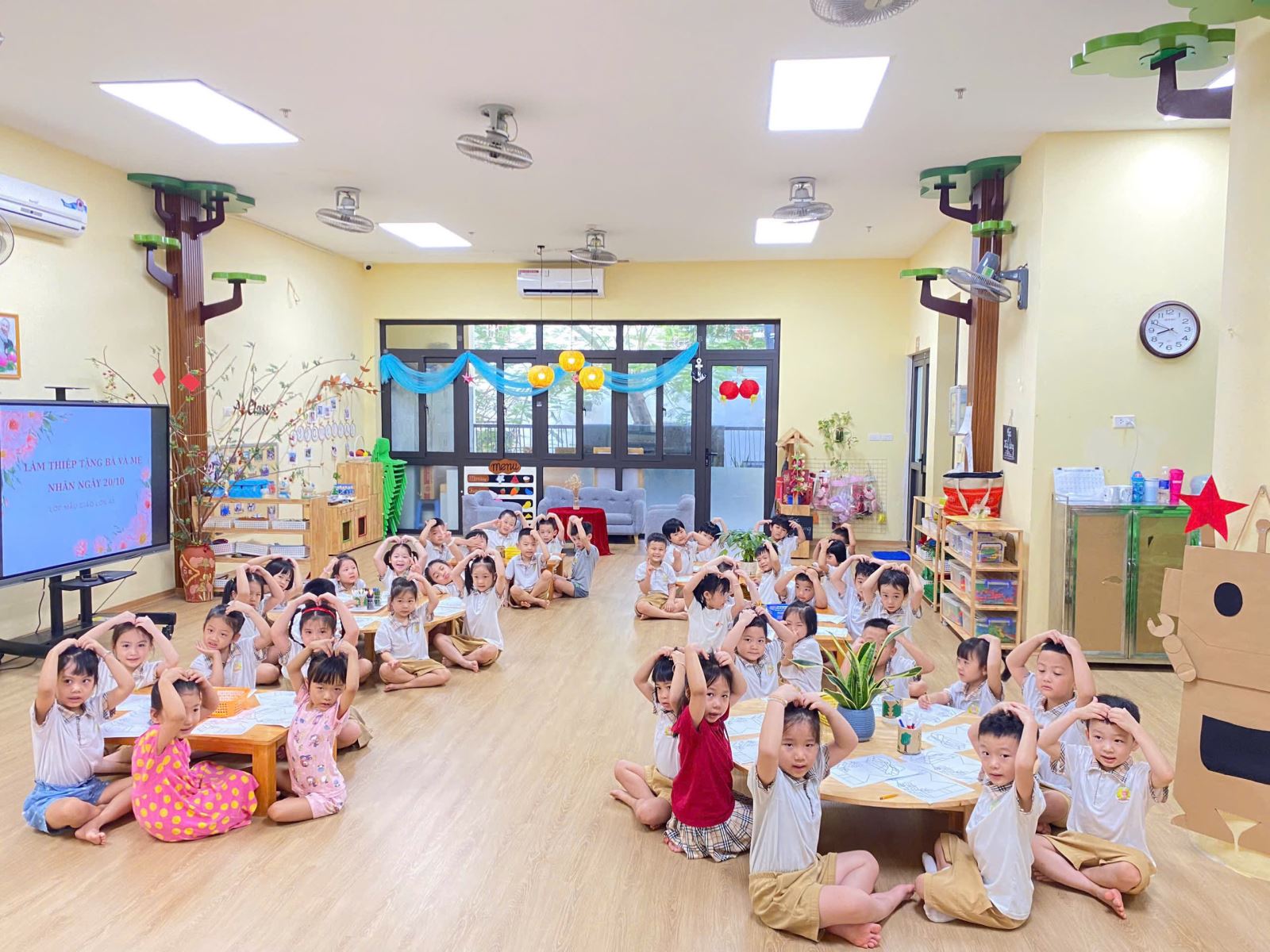 🎉 Kết thúc chuỗi hoạt động là bữa tiệc liên hoan 20/10 vui tươi, tràn ngập tiếng cười, nơi các con cùng nhau hát múa, trò chuyện và cảm nhận trọn vẹn niềm vui của ngày đặc biệt.