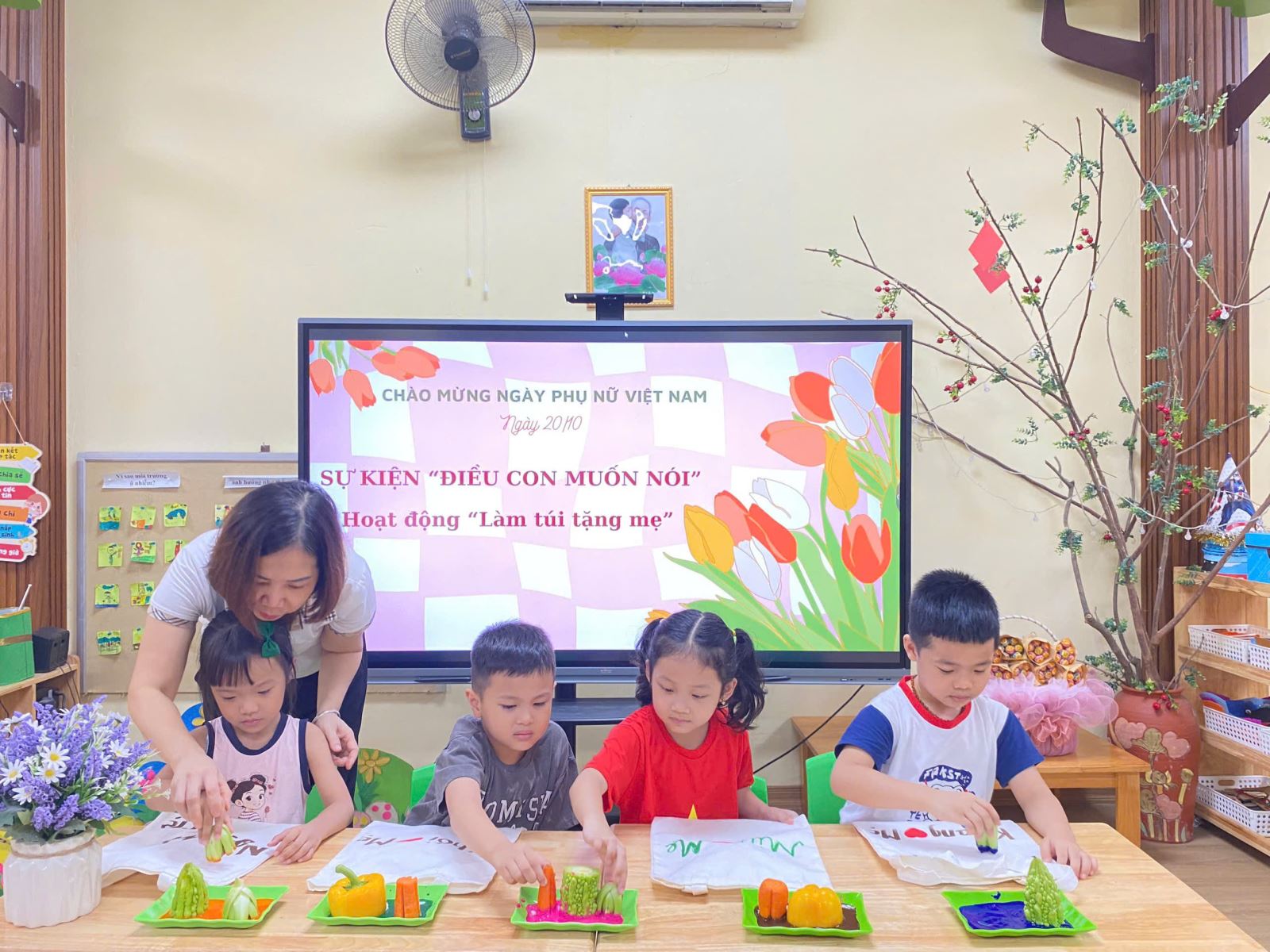 🌼 Với đôi bàn tay khéo léo và trái tim đầy yêu thương, các bé đã tự tay làm những tấm thiệp xinh xắn tặng mẹ, trang trí những chiếc túi đáng yêu gửi tặng bà và mẹ, gửi gắm trong đó những lời chúc ngọt ngào và tình cảm chân thành nhất.