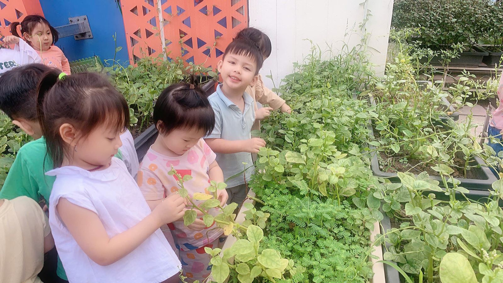 , những ngón tay bé xíu nhổ những cây rau đã được khám phá và trải nghiệm qua đó đã thấy được trẻ đã biết đến rất nhiều loại rau biết cách