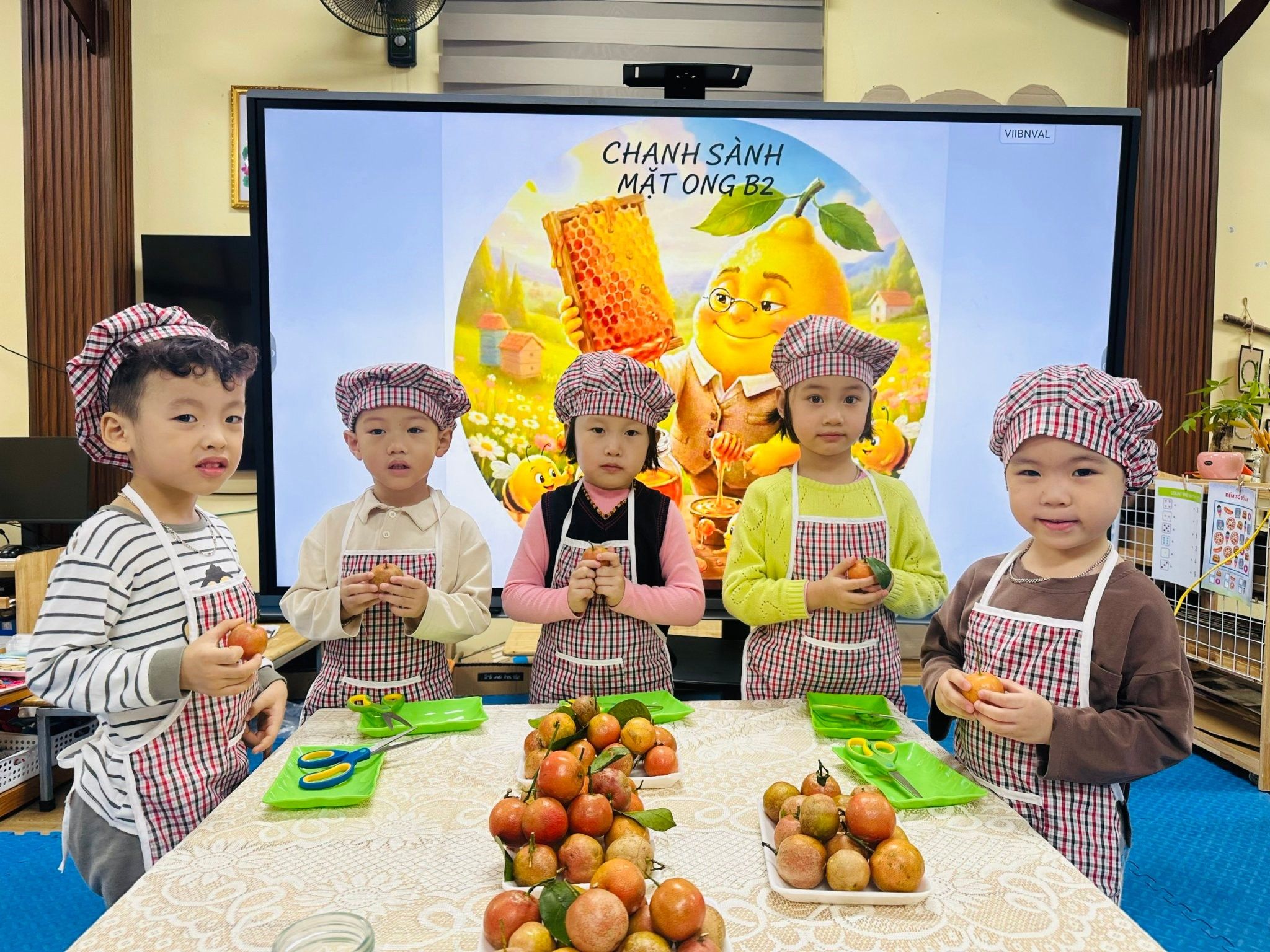 Các bé cắt lá ,chuẩn bị nguyên liệu thái mỏng các lát chanh!!!