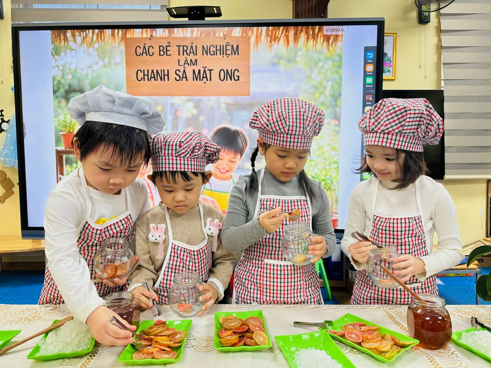 🎄 Giáng Sinh ngọt ngào yêu thương cùng các bé lớp B2 -Bé trải nghiệm làm Chanh sành Mật ong !! 🎄