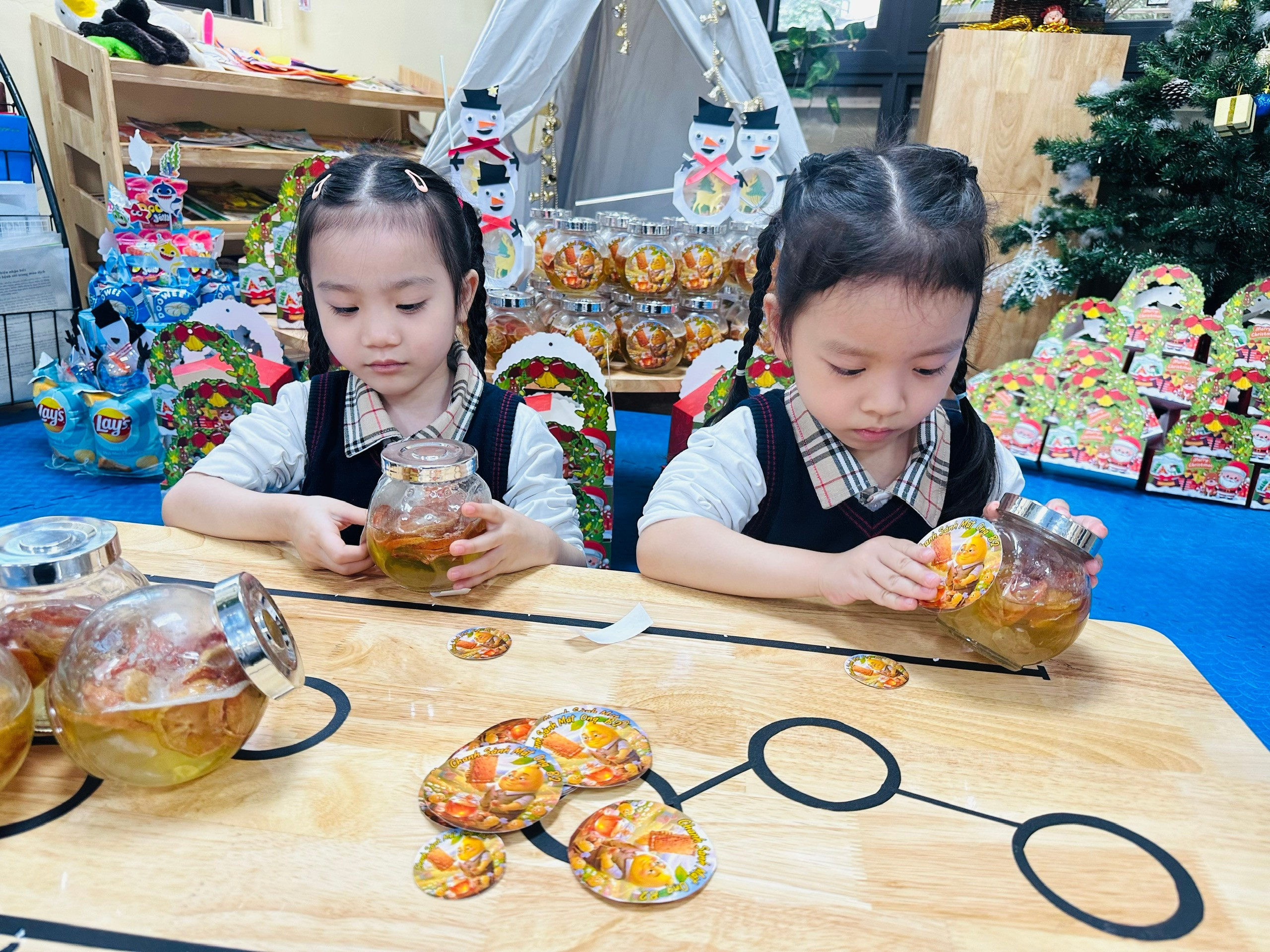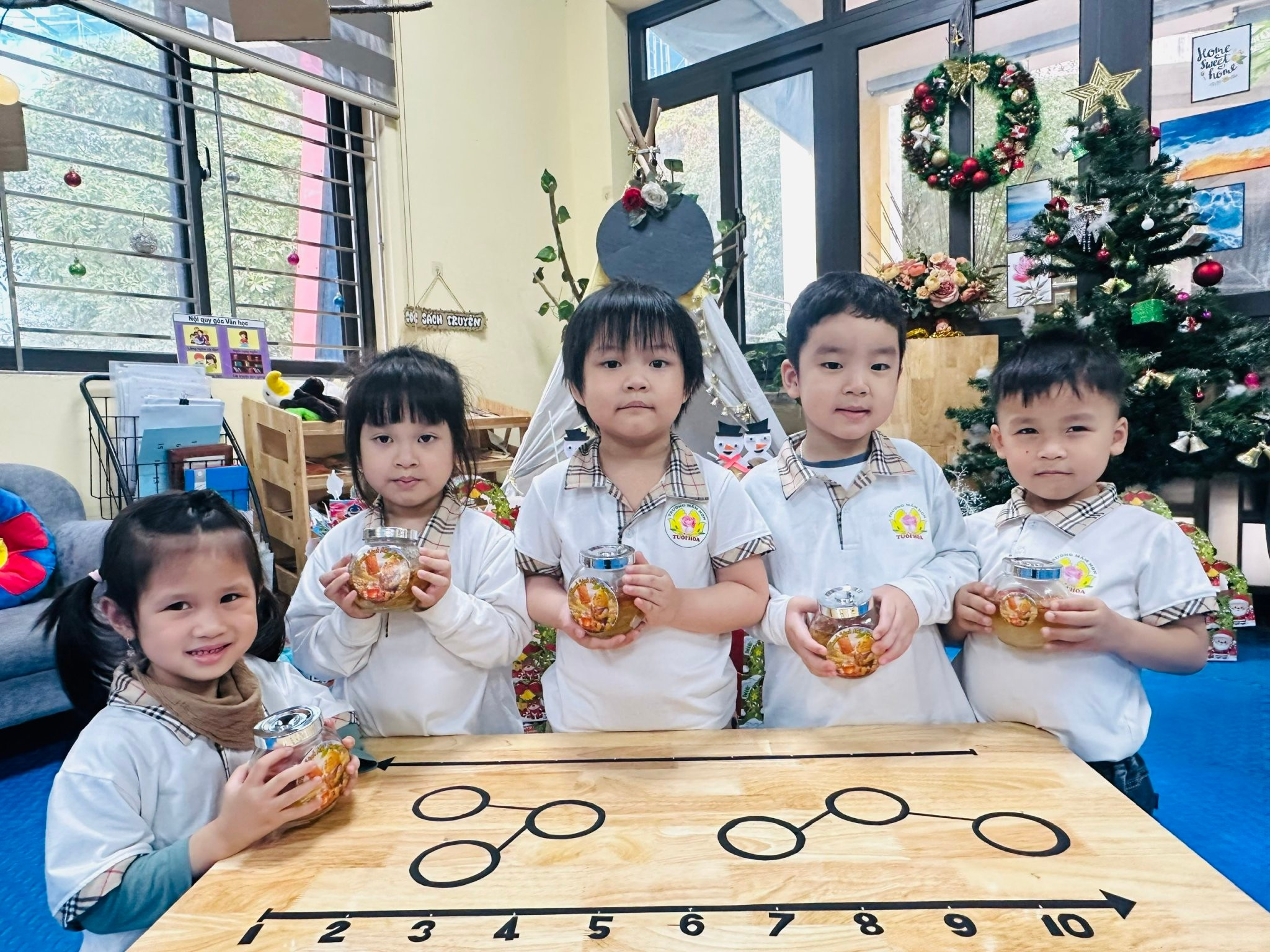🎄🎅🏻Giáng sinh không chỉ là mùa của ánh đèn lung linh mà còn là dịp tuyệt vời để trẻ được sáng tạo, trải nghiệm và gửi gắm yêu thương qua những món quà do chính đôi tay mình làm ra. Dưới sự hướng dẫn của các cô giáo các bé B2 đã tự tay làm những lọ mật ong chanh đào cho mùa đông giá lạnh .Món quà ý nghĩa dành tặng người thân yêu của các bé