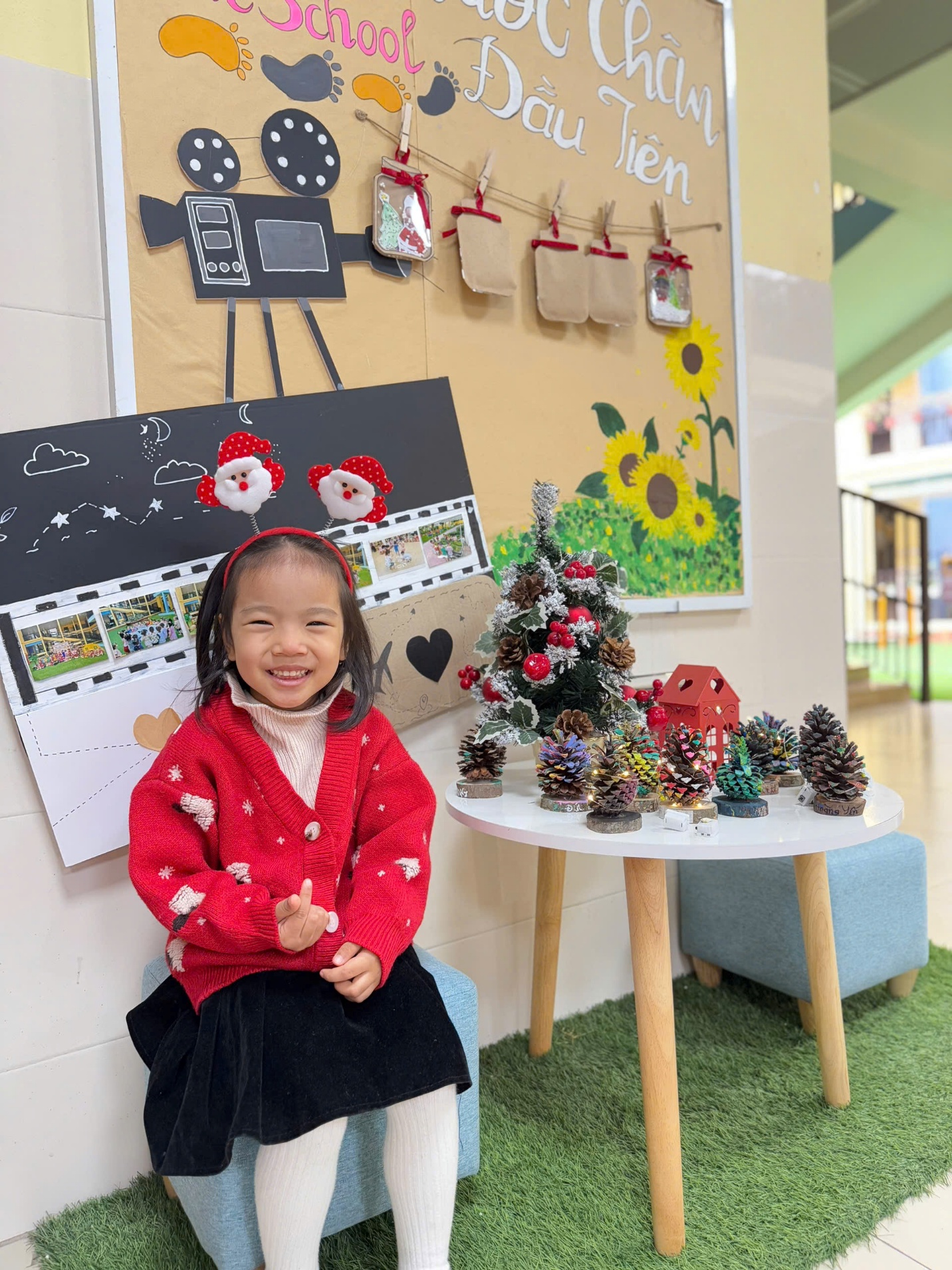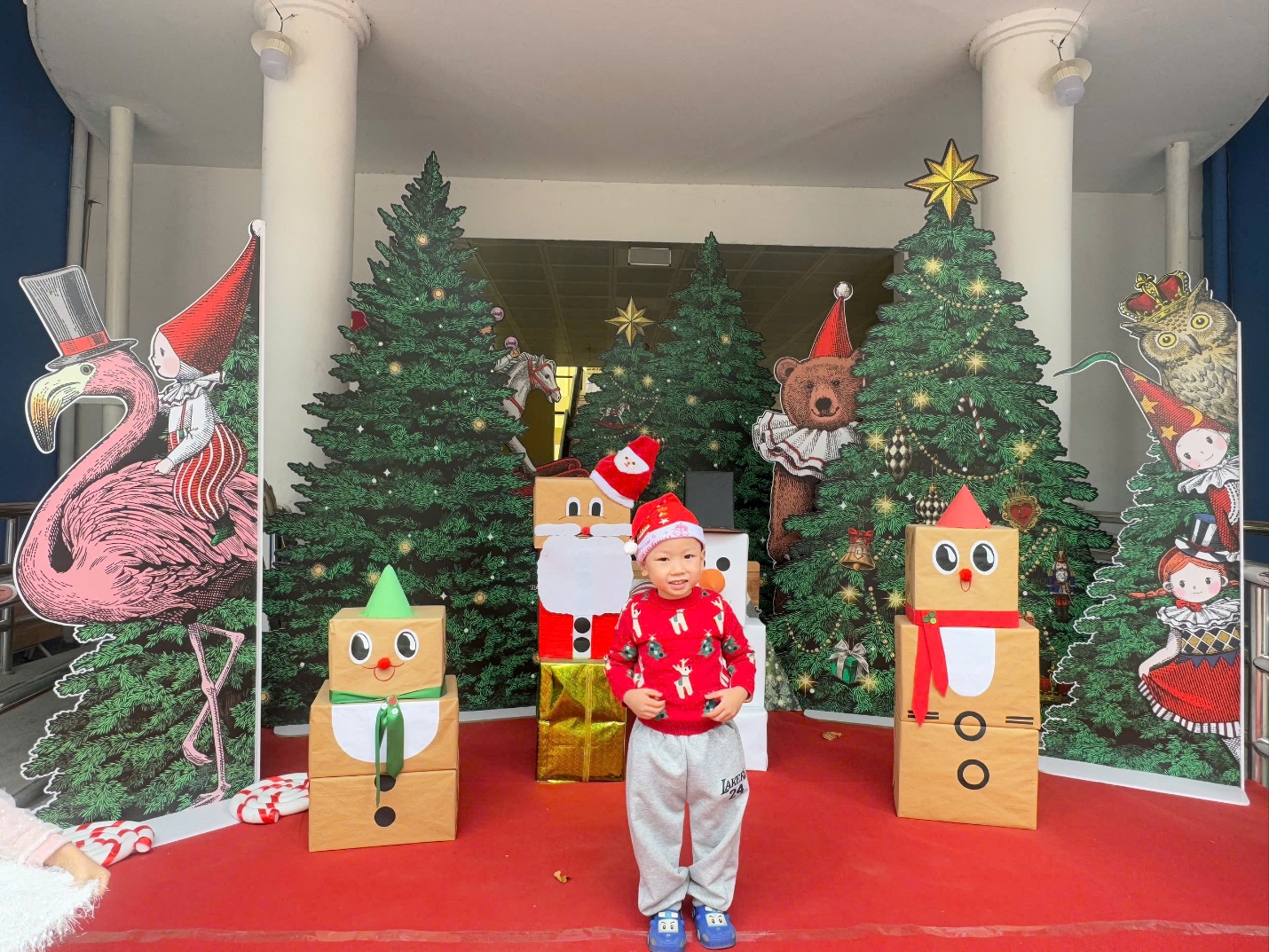 Hình ảnh bé Bảo Khang với chiếc mũ Noel check in với background