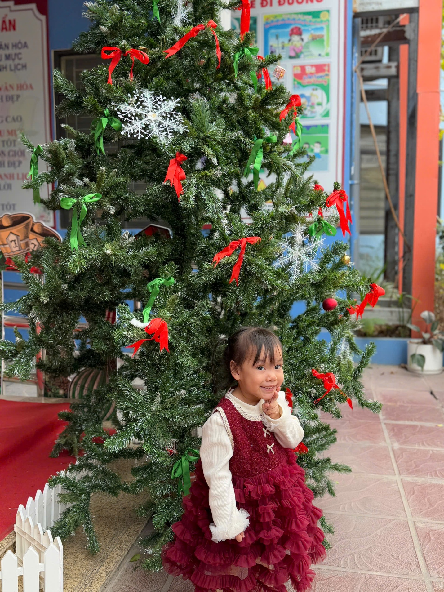 Hình ảnh bé Tuệ Anh bên cây thông Noel ấm áp