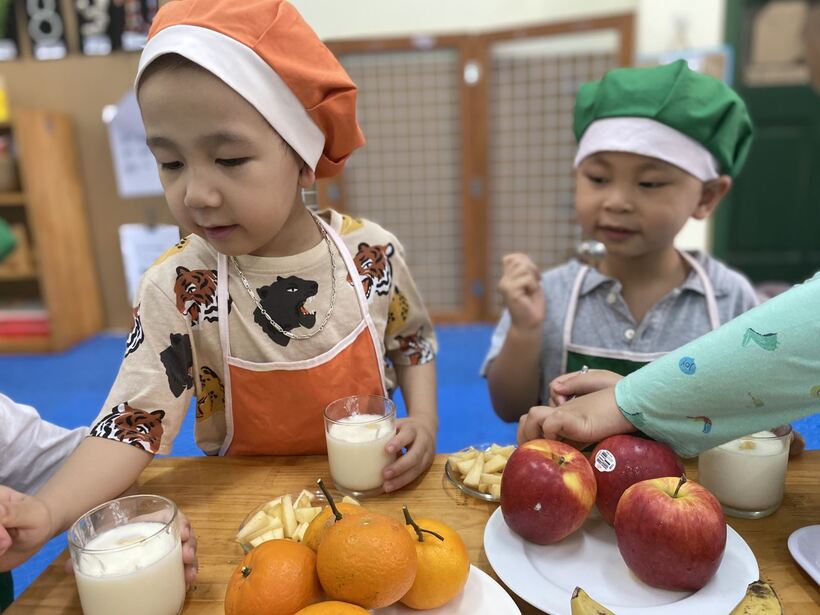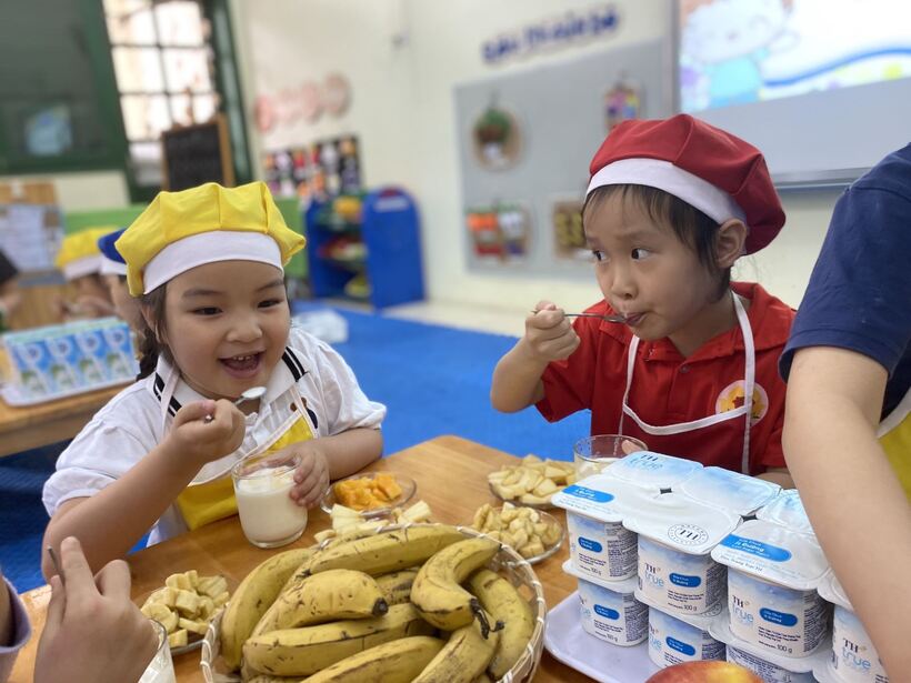 Tuần nay, các bé lớp A2 được cùng nhau tập làm nội trợ trải nghiệm với món "Hoa quả dầm sữa chua". Đây là một trong những hoạt động vô cùng hấp dẫn, thu hút sự tham gia nhiệt tình của các bé.