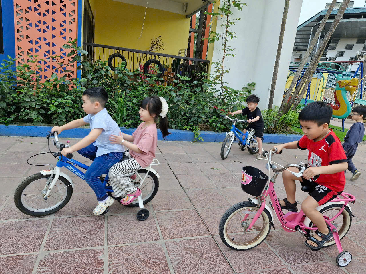 Trong tuần này, các bạn nhỏ lớp A1 đã có buổi đi xe đạp vui nhộn và đầy năng lượng! Những chiếc xe mini xinh xắn cùng sự cổ vũ của cô giáo đã mang đến không khí sôi nổi, tiếng cười rộn rã khắp sân trường. Hoạt động giúp bé rèn luyện sức khỏe, khả năng giữ thăng bằng và tinh thần tự lập. Bé nào cũng cố gắng, bé nào cũng vui – một buổi sáng thật đáng nhớ!