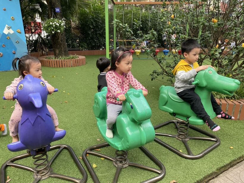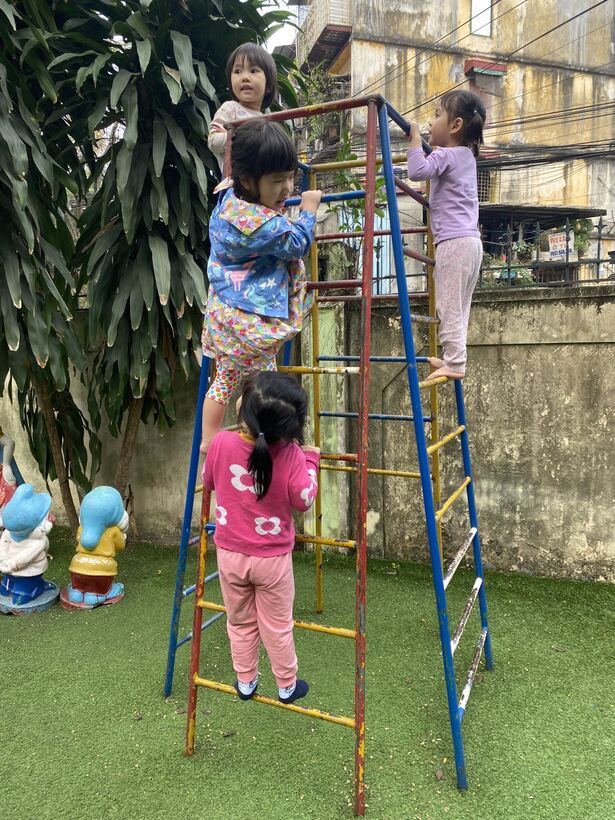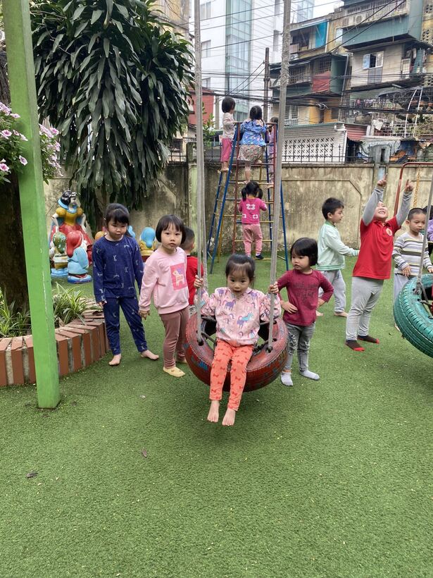 Tham gia các hoạt động ngoài trời, trẻ được quan sát quang cảnh, bầu trời để nhận biết thời tiết, tiếp xúc với ánh nắng tự nhiên rất tốt cho sự phát triển hệ xương của bé. Bên cạnh đó, các bài học về quan sát sự vật, cây cối cũng cung cấp cho trẻ vốn hiểu biết về thế giới xung quanh mình. Các trò chơi vận động là nội dung không thể thiếu giúp trẻ phát triển thể chất và kĩ năng giao tiếp xã hội từ đó giúp trẻ mạnh dạn, tự tin và hòa đồng, tạo sự đoàn kết trong tập thể lớp. Dạo chơi ngoài trời là một trong những hoạt động vui chơi có ý nghĩa vô cùng quan trọng giúp trẻ được hít thở không khí trong lành, được quan sát và ngắm nhìn thế giới xung quanh, mà trẻ hứng thú nhất. Sau đây là một số hình ảnh của các bé lớp C2: