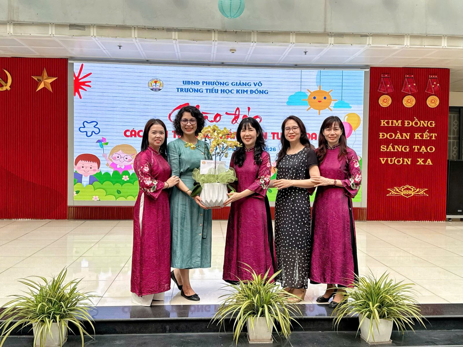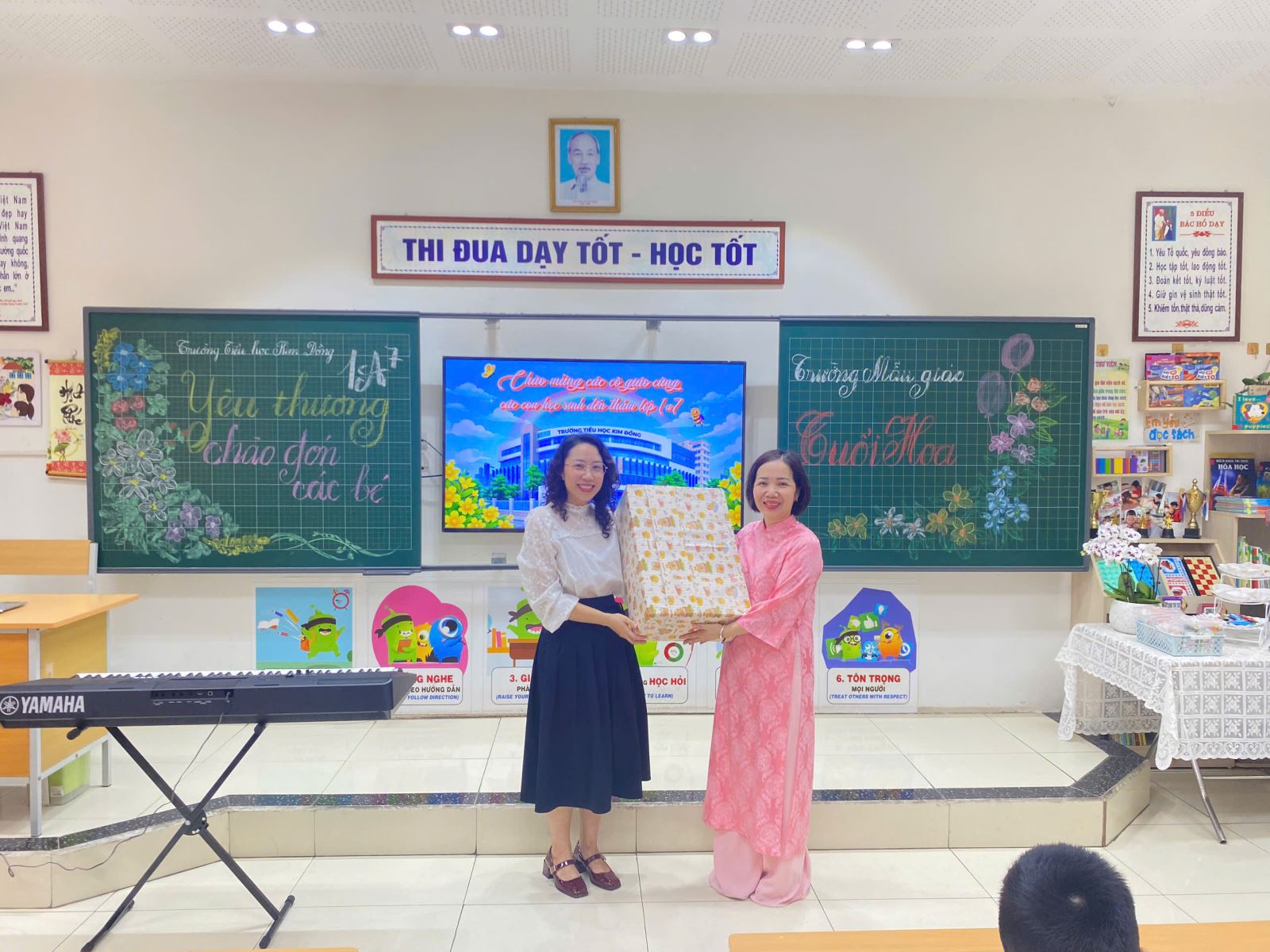 Nhà giáo Phạm Thanh Hoa chúc mừng BGH trường tiểu học Kim Đồng