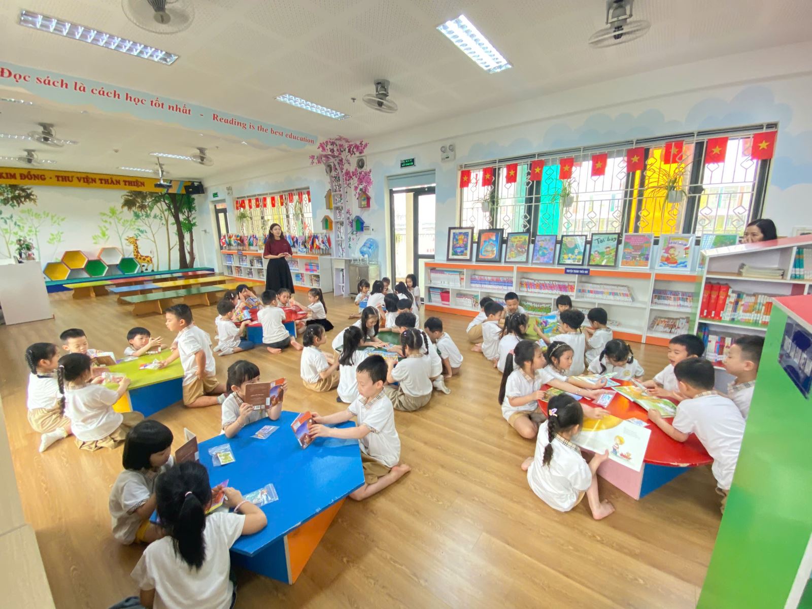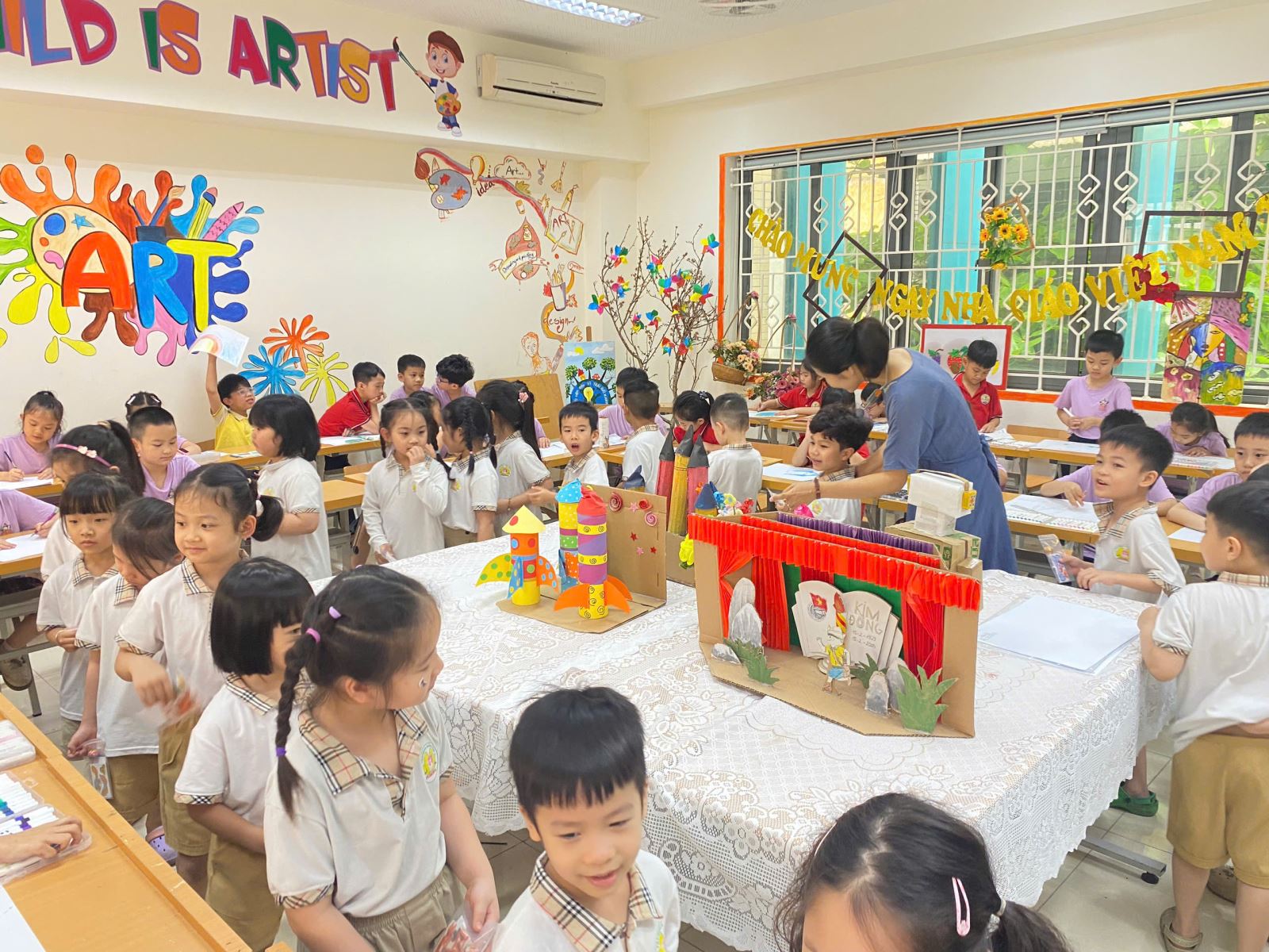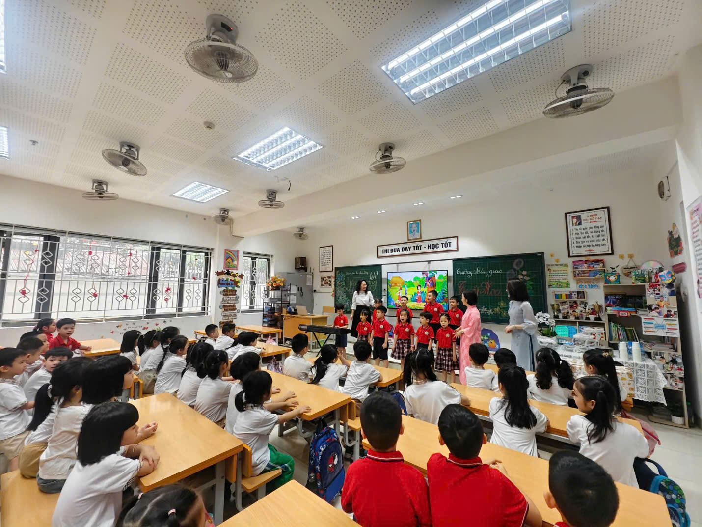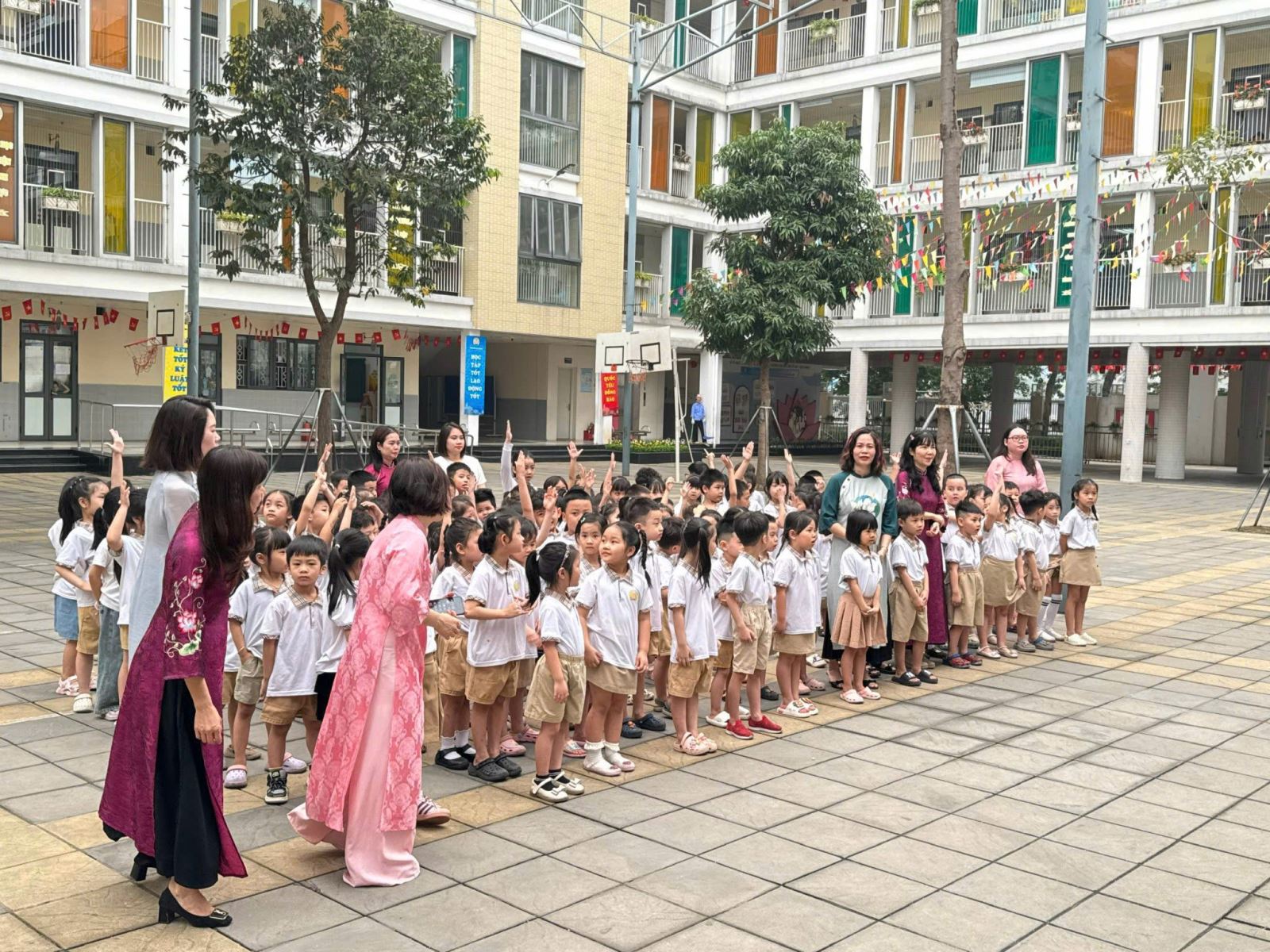 Các bạn nhỏ khối mẫu giáo lớn mạnh dạn, hào hứng tham gia vào các hoạt động tại trường tiểu học Kim Đồng