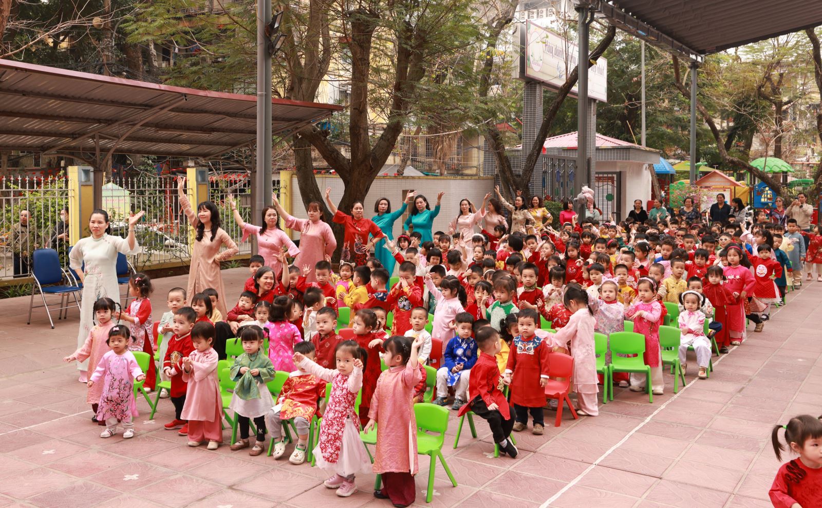 Lễ hội trình diễn Áo dài – hoạt động ý nghĩa nhằm tôn vinh trang phục truyền thống của dân tộc Việt Nam. Ngay từ sáng sớm, Các cô giáo diện áo dài với nhiều gam màu và họa tiết khác nhau: từ sắc đỏ rực rỡ, vàng tươi ấm áp đến những tông pastel nhẹ nhàng. Các bé cũng được ba mẹ mặc áo dài cách tân, vừa gọn gàng vừa đáng yêu.