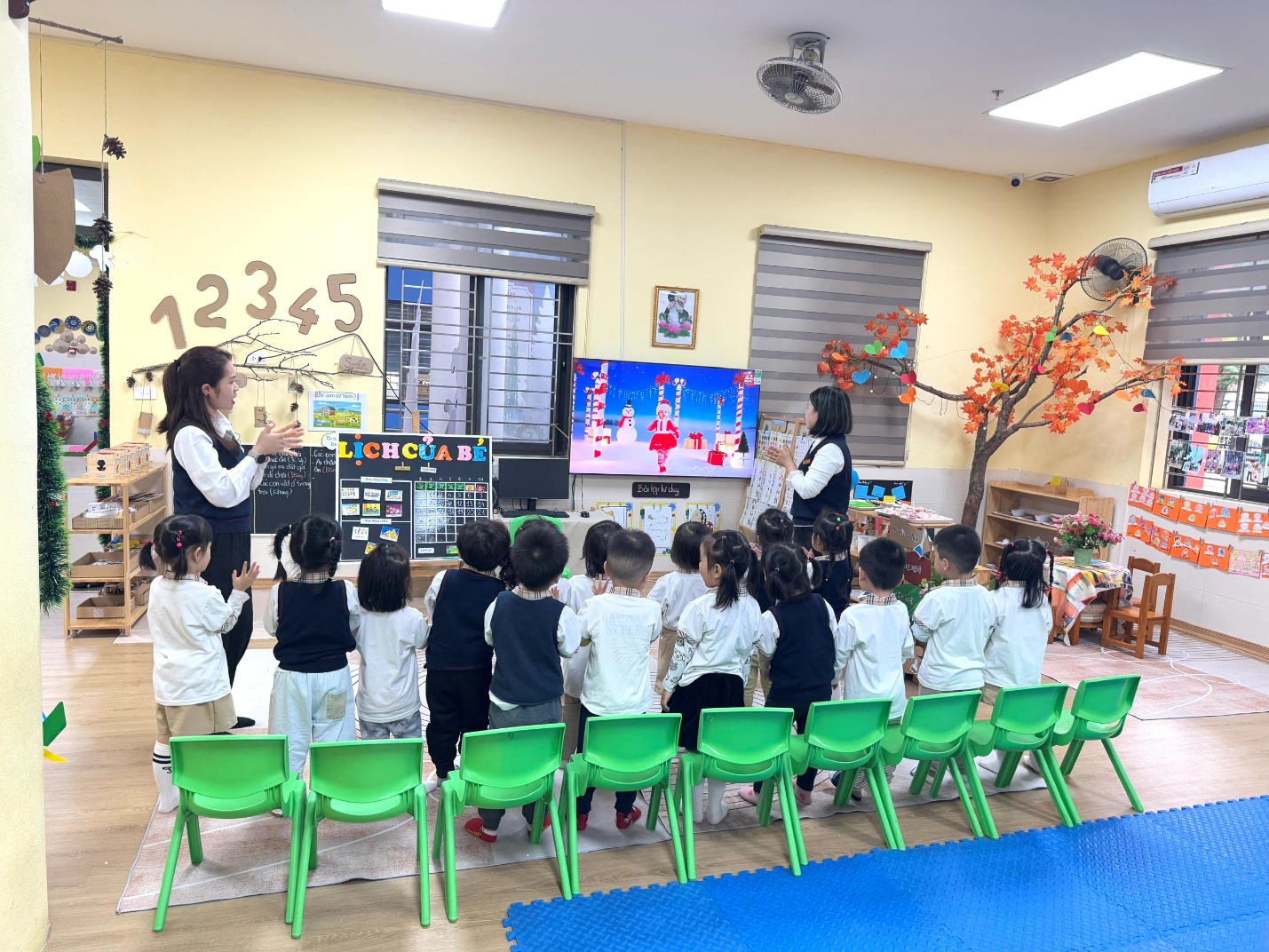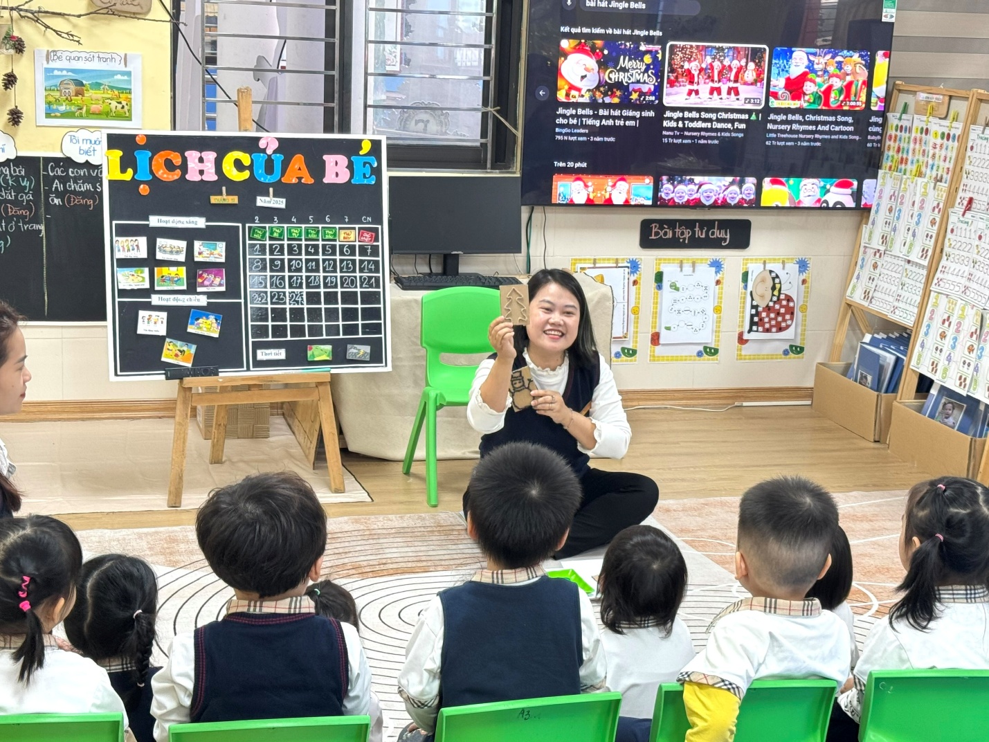 Hình ảnh cô và trò cùng nhau hát múa bài jingle bell vui nhộn