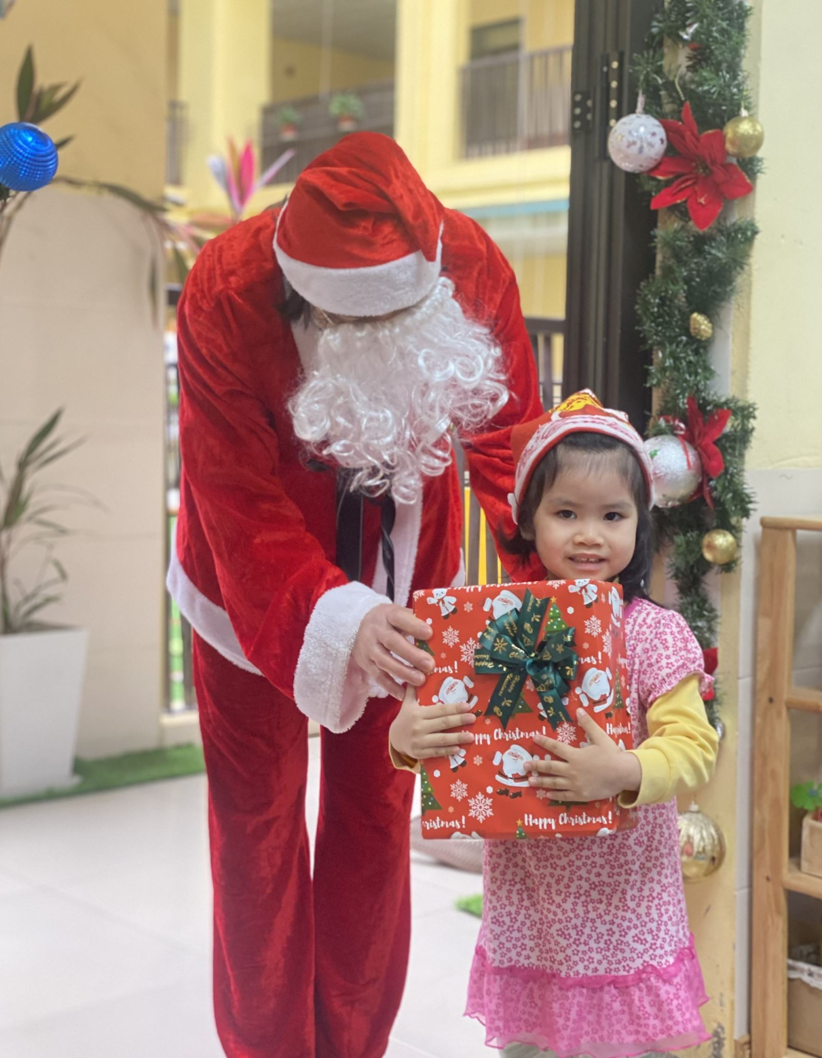 Ở đó, ông già Noel xuất hiện mang theo túi quà đầy ắp, cùng những lời chúc yêu thương dành cho các bạn nhỏ. Ánh mắt háo hức, nụ cười rạng rỡ và những cái ôm ngọt ngào đã làm cho không khí Giáng sinh thêm ấm áp.