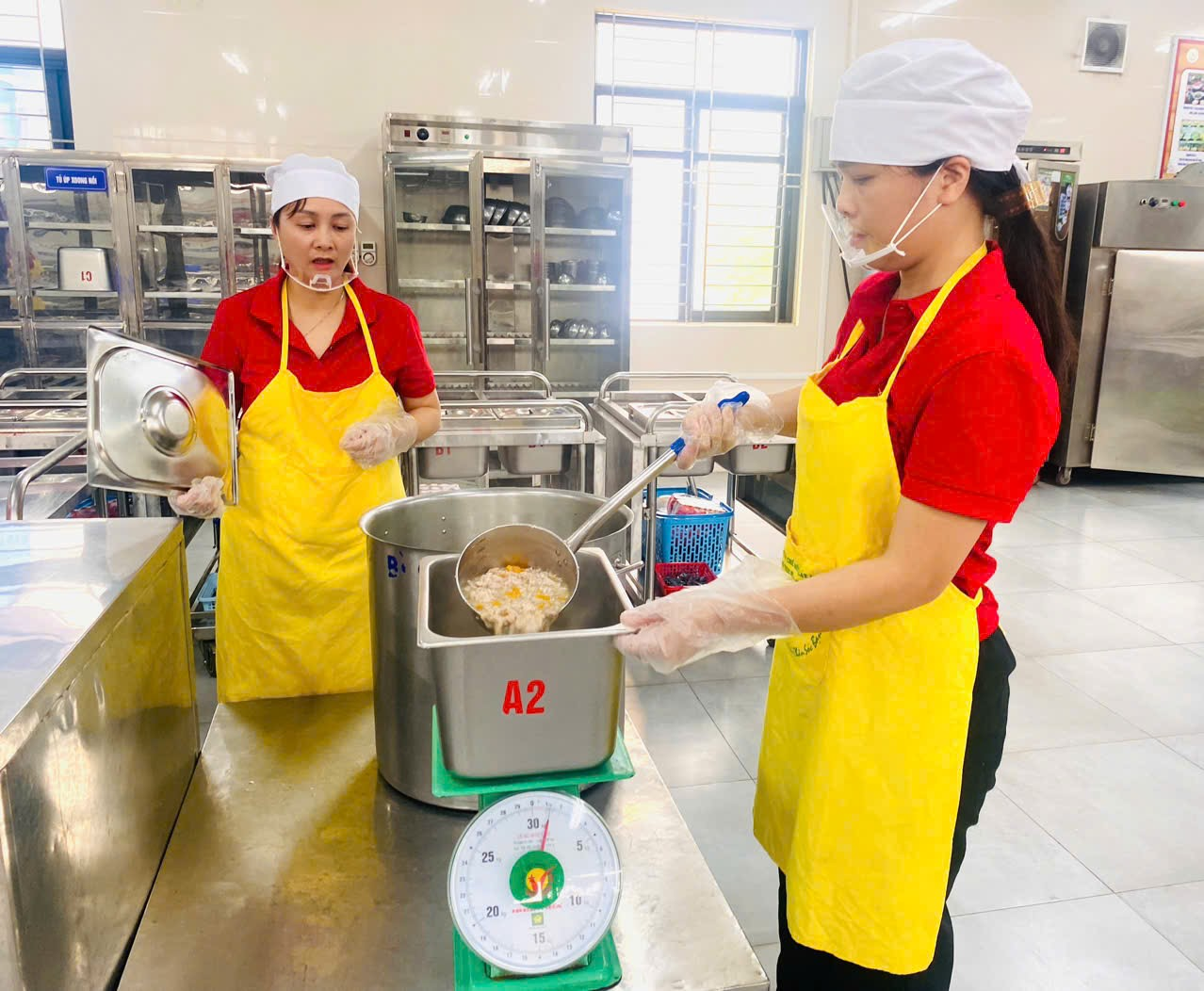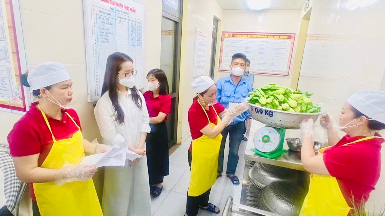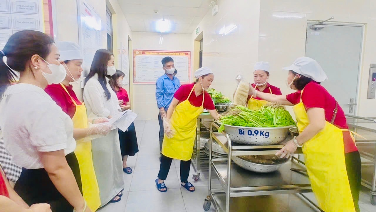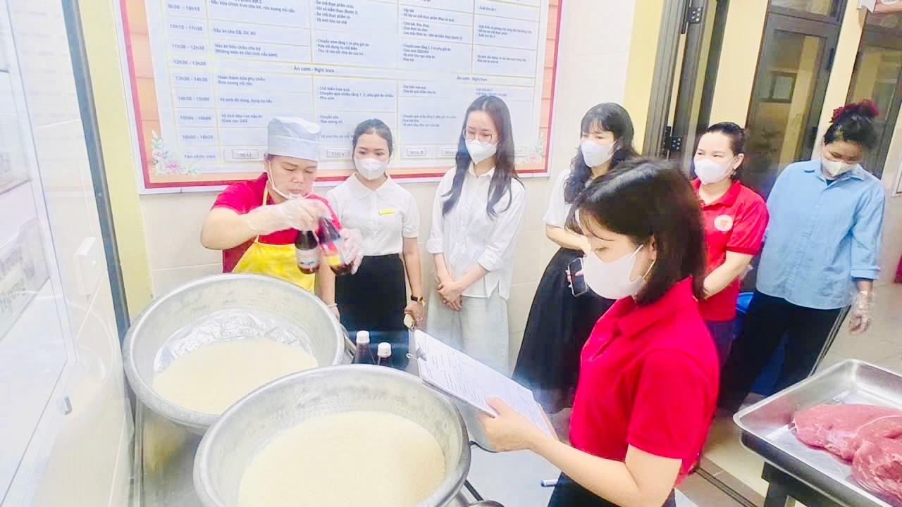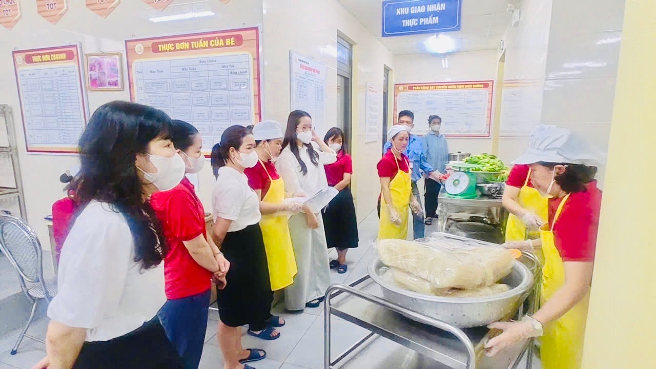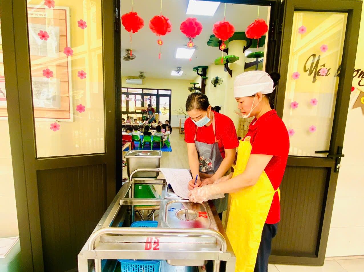 Tăng cường kiểm tra giám sát - Đảm bảo vệ sinh an toàn thực phẩm hàng ngày tại bếp ăn bán trú của trường mầm non Tuổi Hoa.