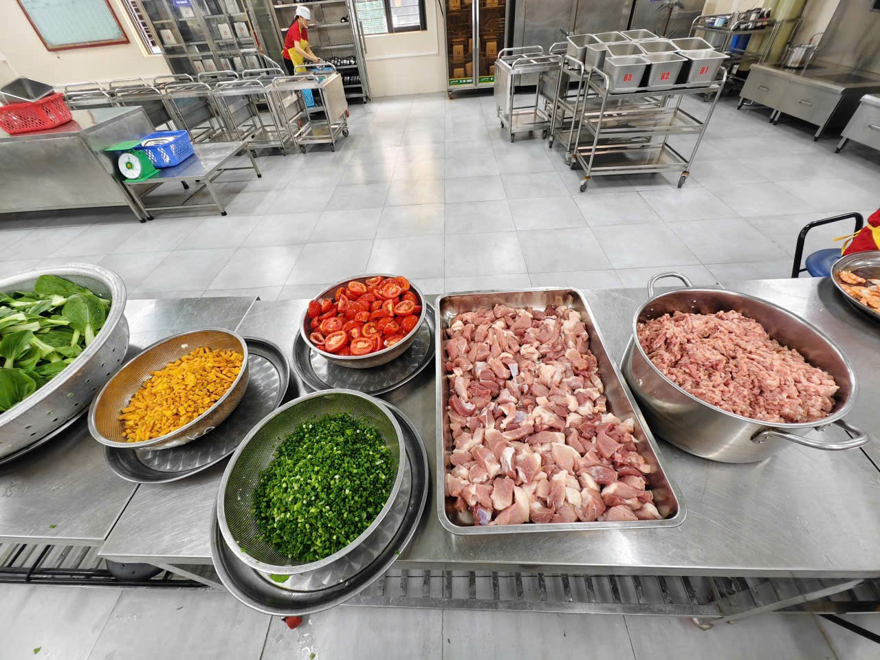 Mỗi buổi giao nhận, nhà trường tiến hành đầy đủ các thành phần giám sát đều có mặt tại bếp ăn: