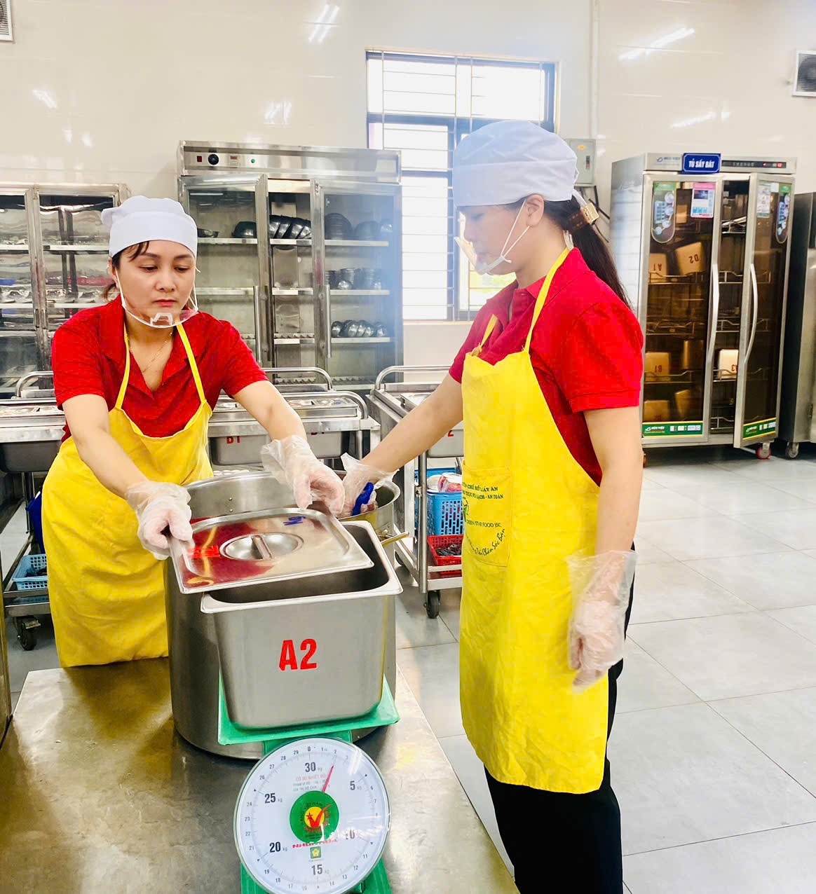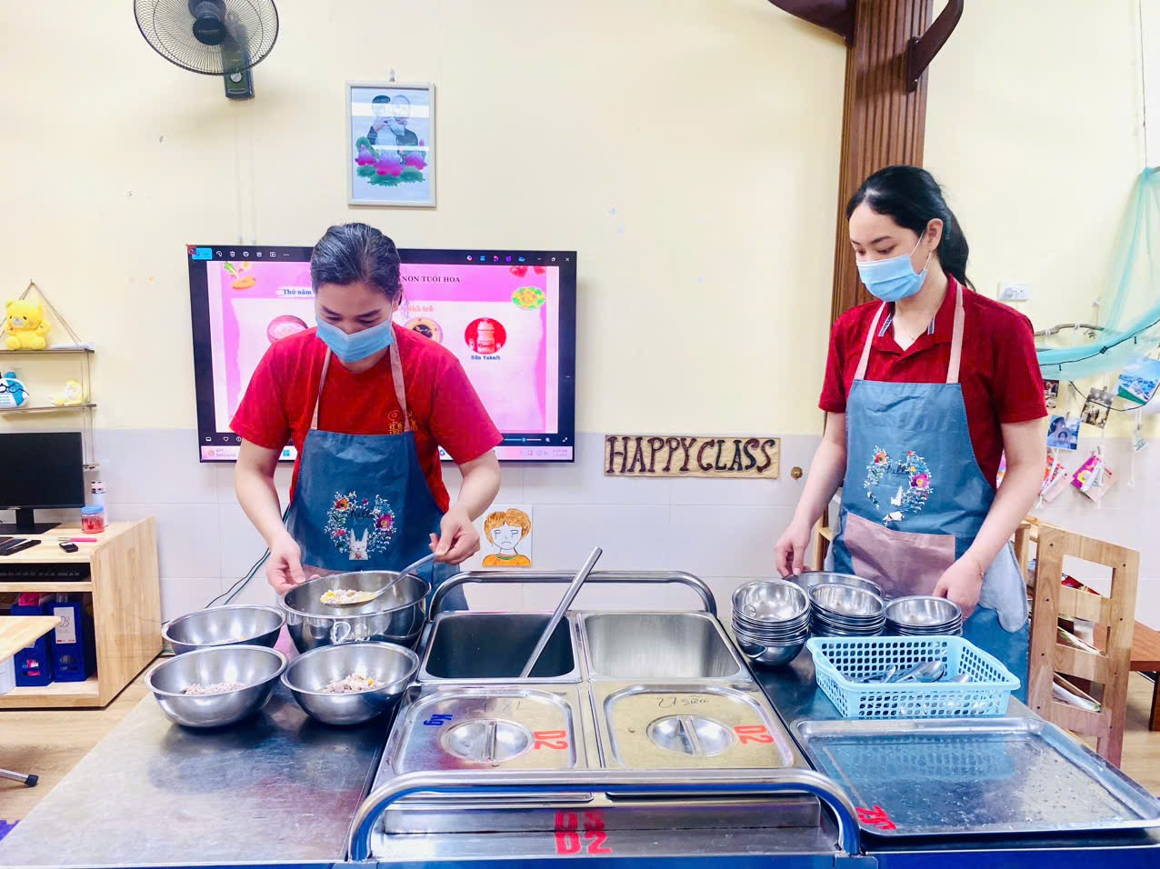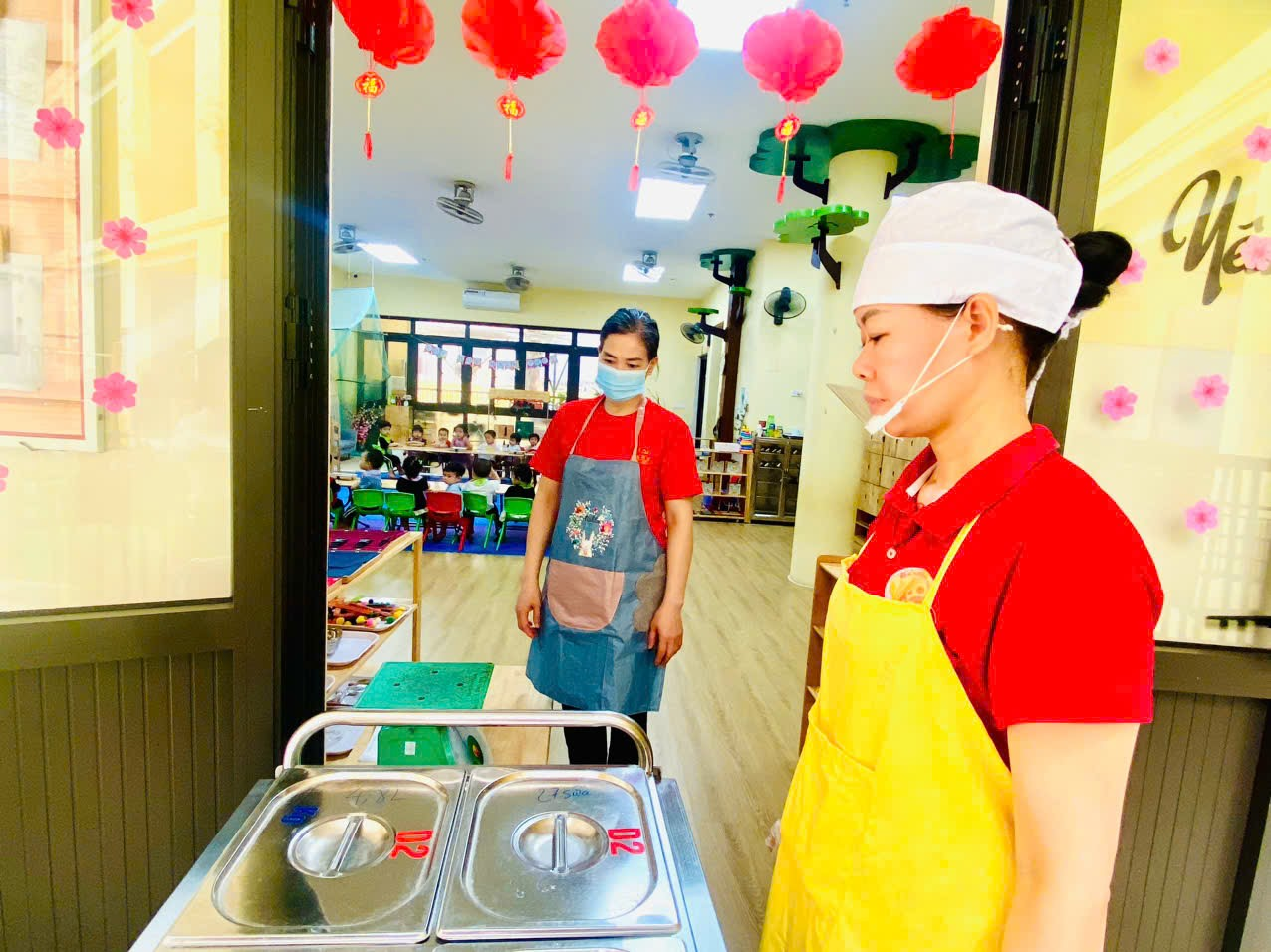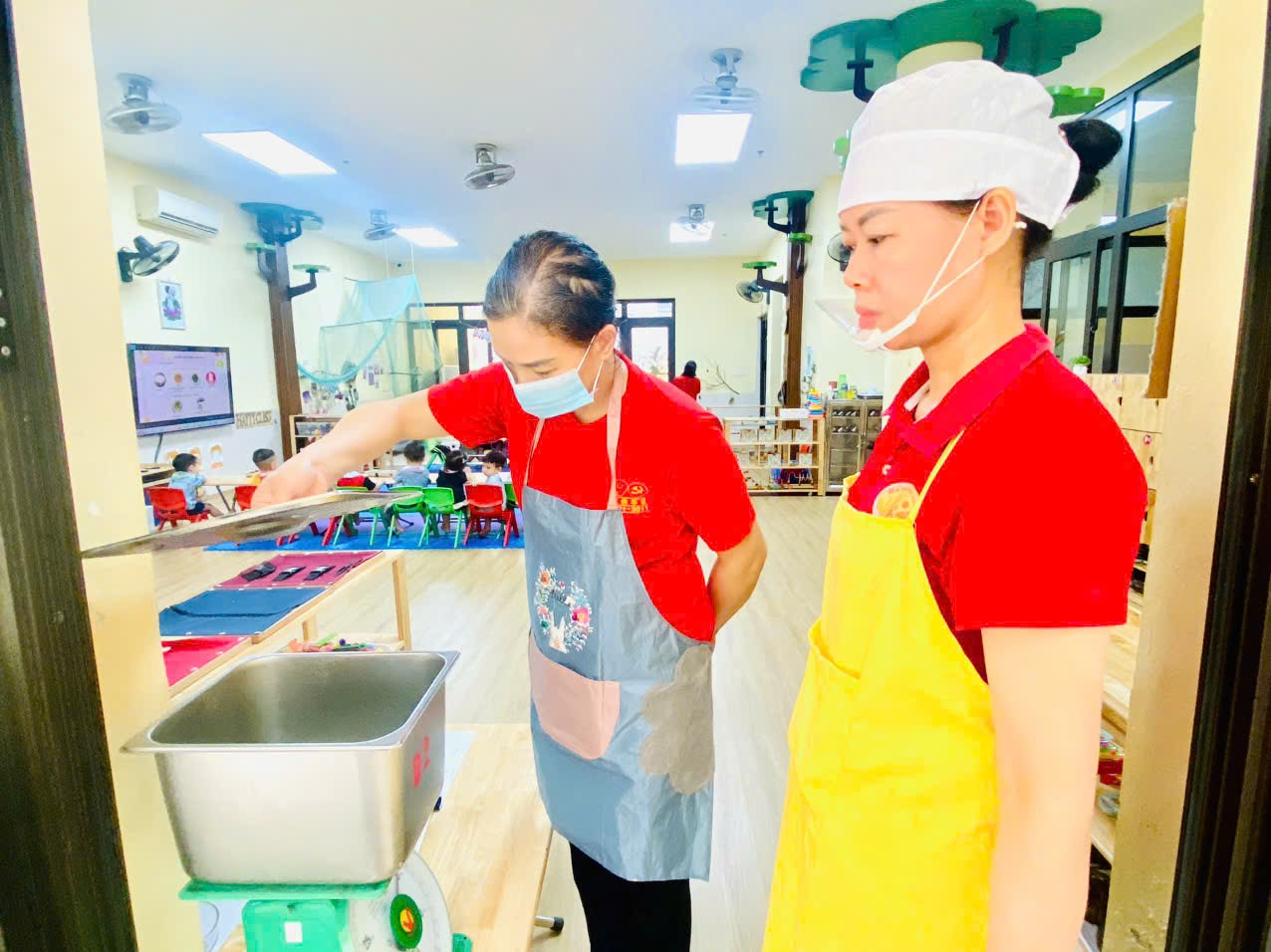- Giao nhận thực phẩm chín với nhân viên nuôi dưỡng tại lớp.