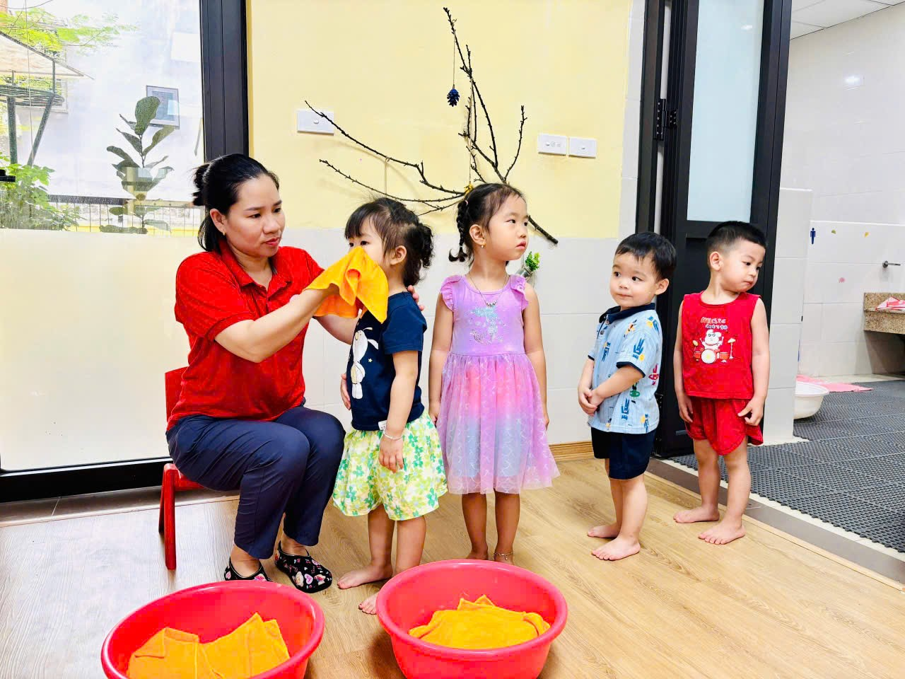 - Hướng dẫn trẻ rửa tay, lau mặt sạch sẽ