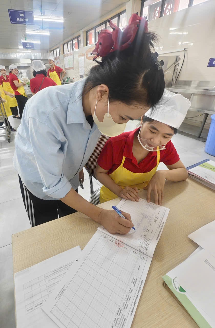 Giáo viên ký nhận vào sổ kiểm thực 3 bước và biên bản giám sát giao nhận TP.