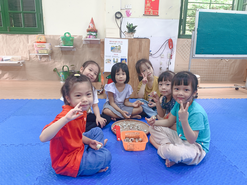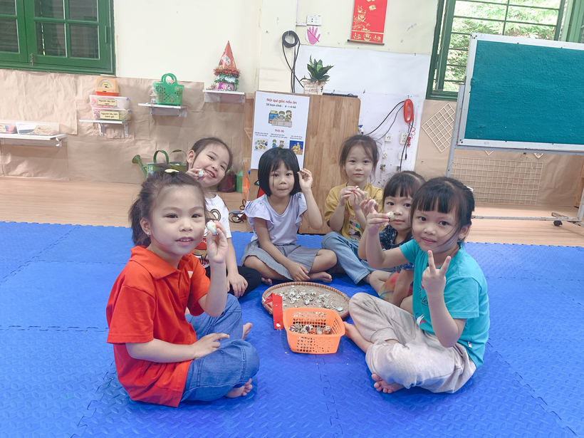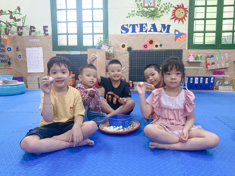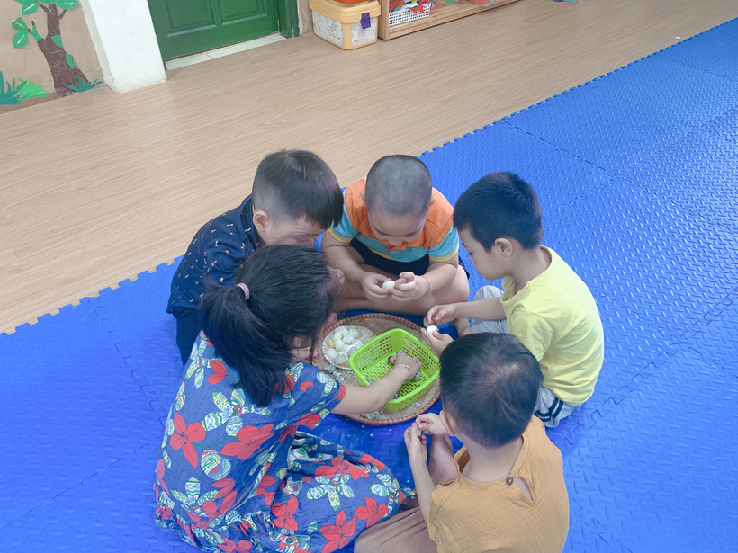 Thử thách sự khéo léo của đôi bàn tay thông qua hoạt động bóc trứng của các bạn nhỏ lớp A1.!!!