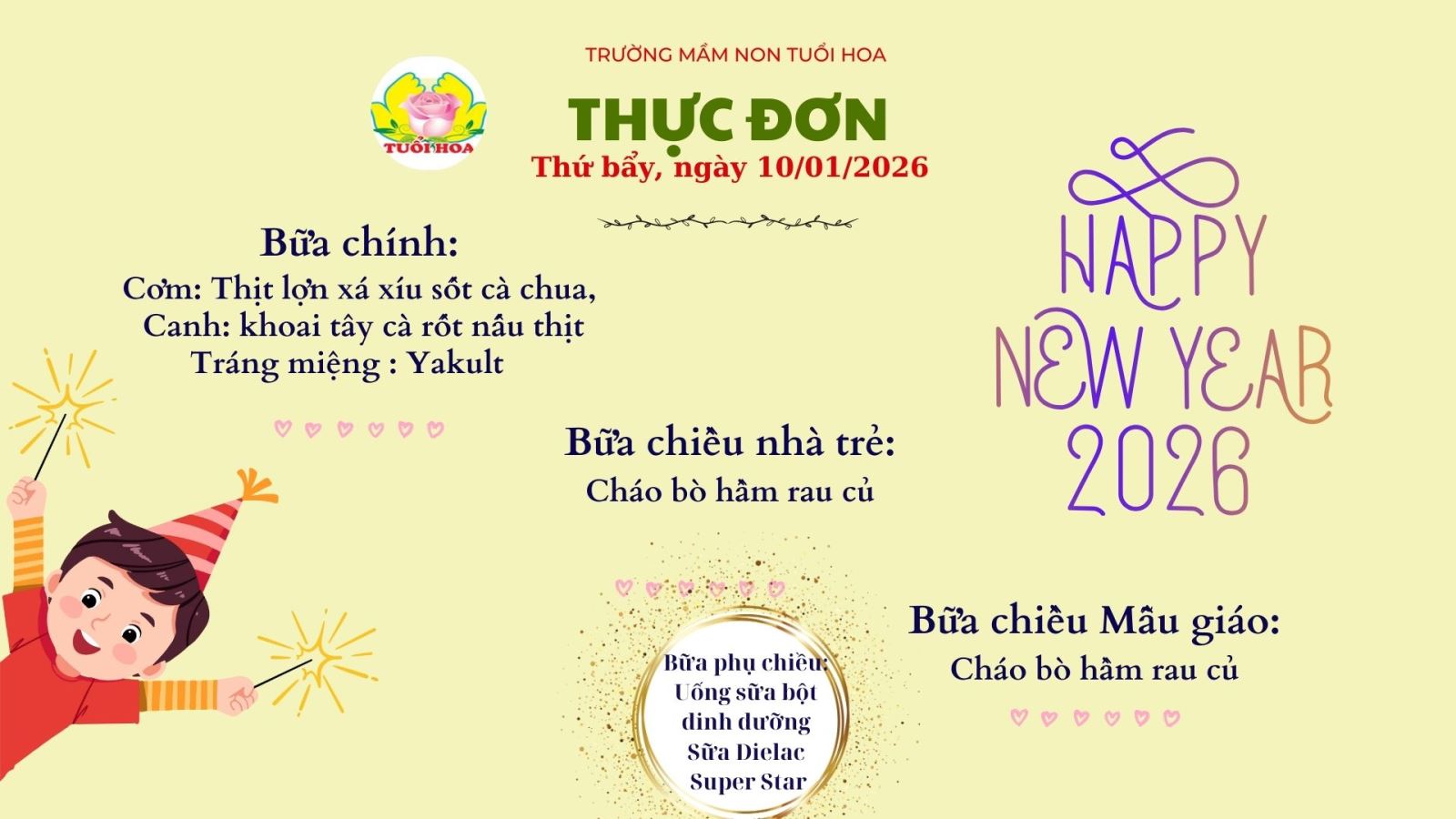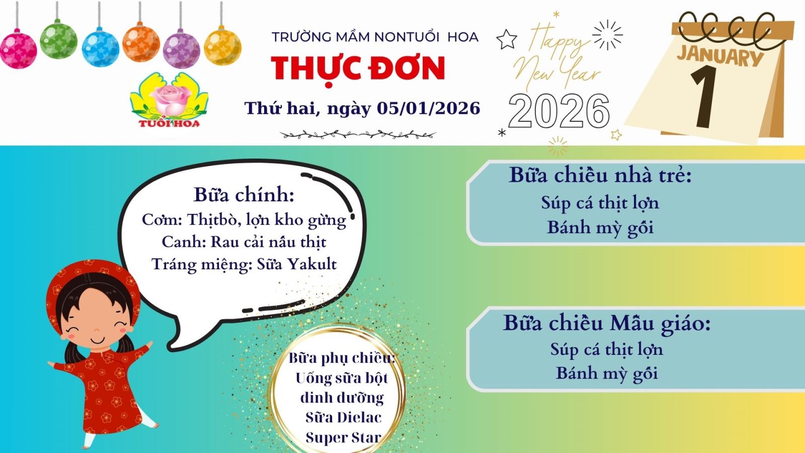 Thực đơn tuần 1 tháng 1 năm 2026, từ ngày 05/01/2026 đến ngày 10/01/2026