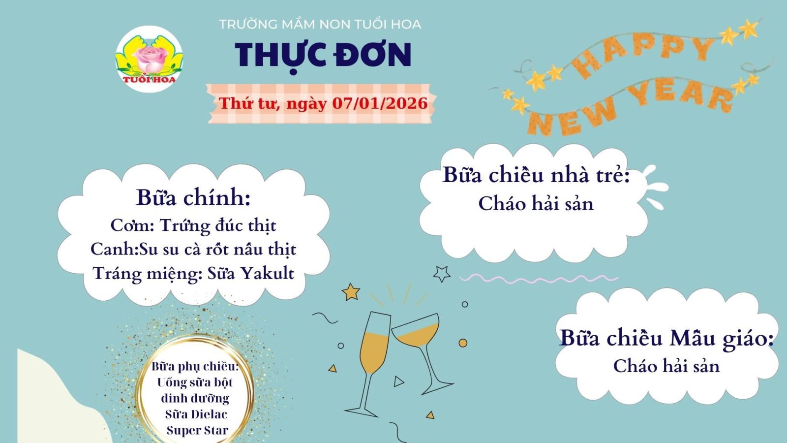 Ghi chú: Thực đơn có thể thay đổi cho phù hợp trong các ngày lễ hội, hoặc có việc đột xuất nhưng vẫn đảm bảo chất dinh dưỡng cho trẻ
