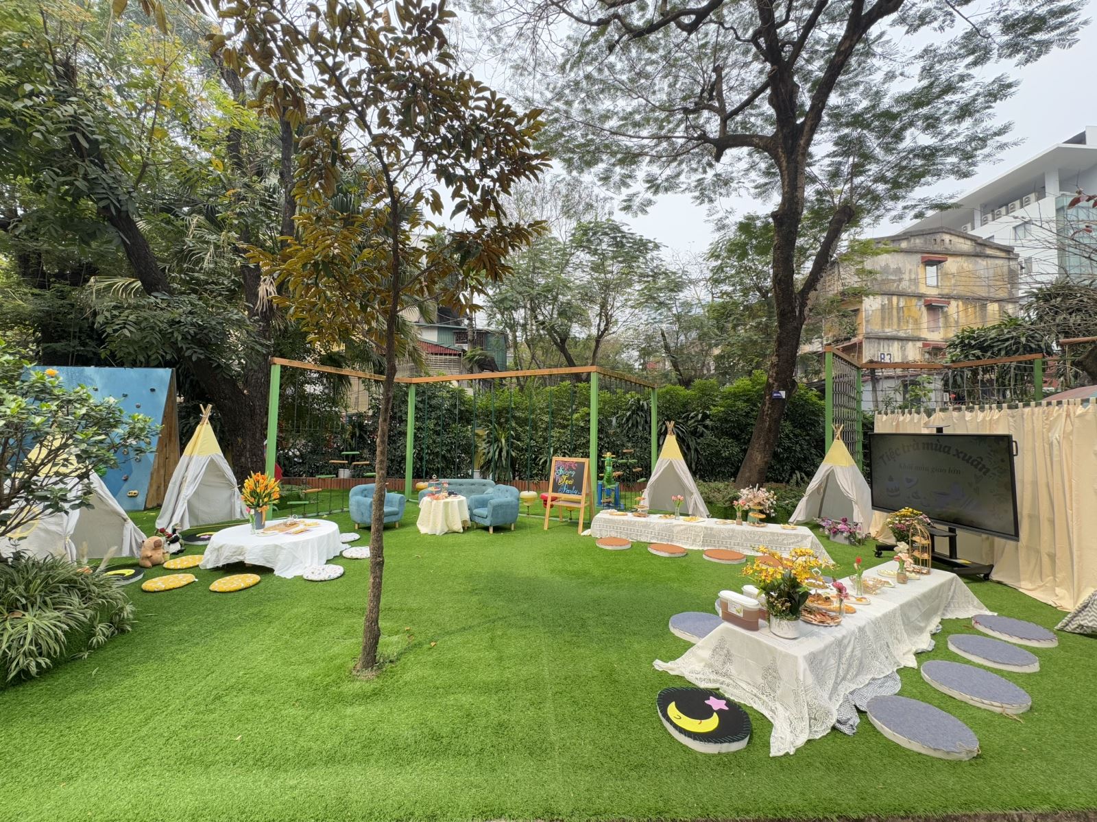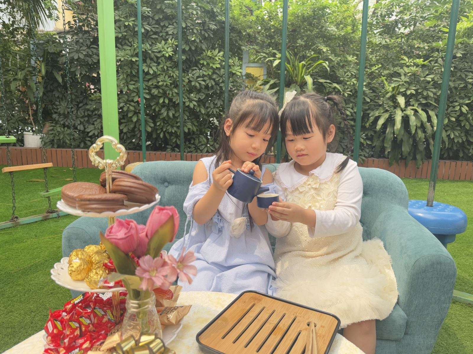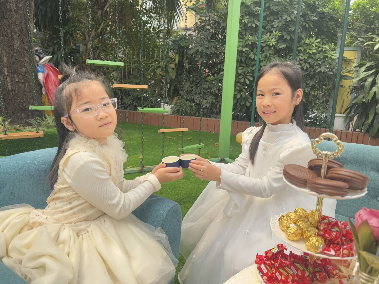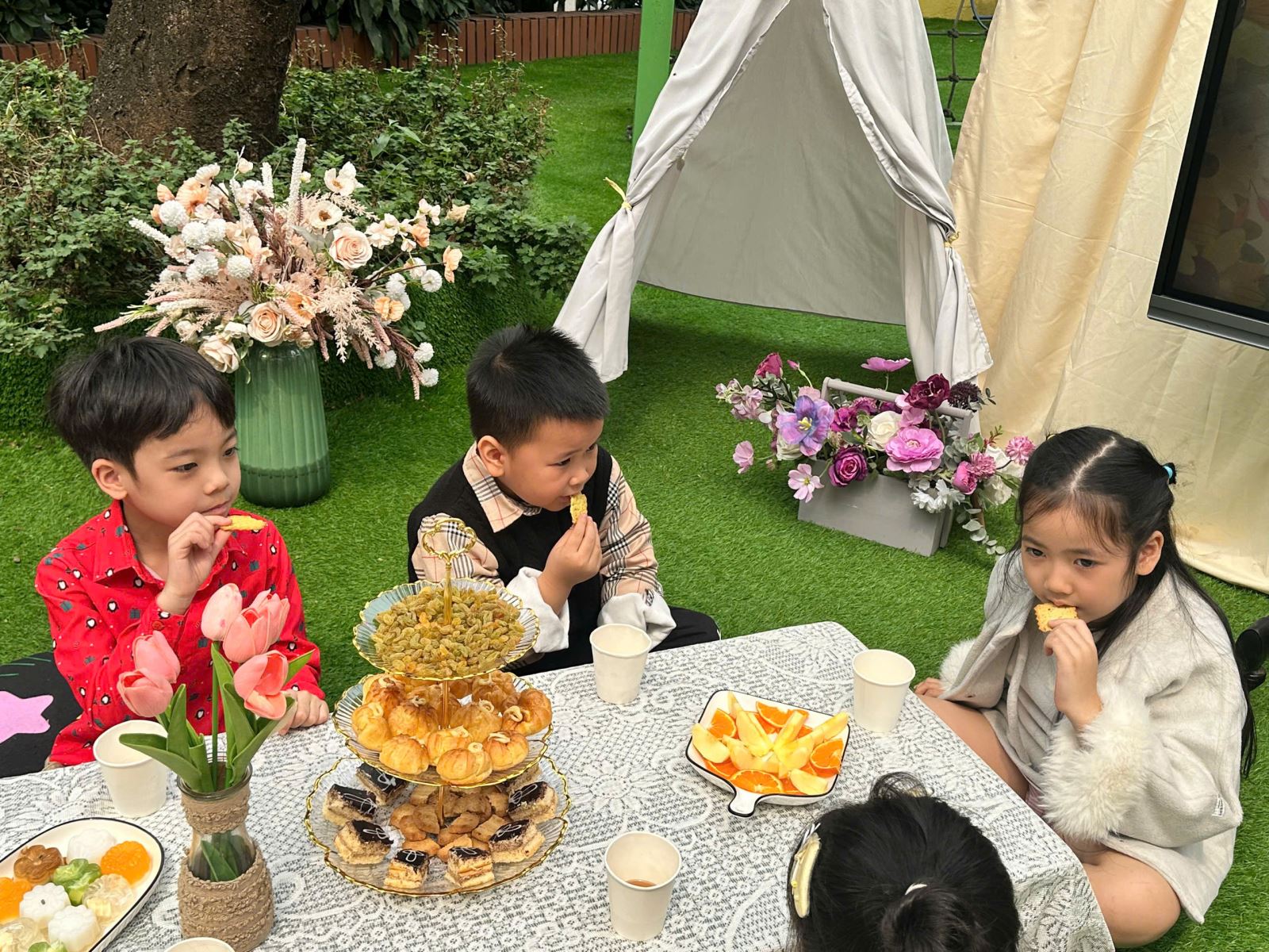Buổi giao lưu là dịp để các bé gặp gỡ, làm quen và cùng nhau chia sẻ những khoảnh khắc đáng nhớ bên bạn bè và cô giáo. Những bàn tiệc nhỏ được trang trí bằng hoa, bánh kẹo và trái cây tươi sắc màu, tạo nên không gian ấm áp, tràn ngập sắc xuân. Các bé hào hứng thưởng thức tiệc trà, trò chuyện, tham gia các trò chơi nhẹ nhàng và biểu diễn những tiết mục văn nghệ dễ thương.