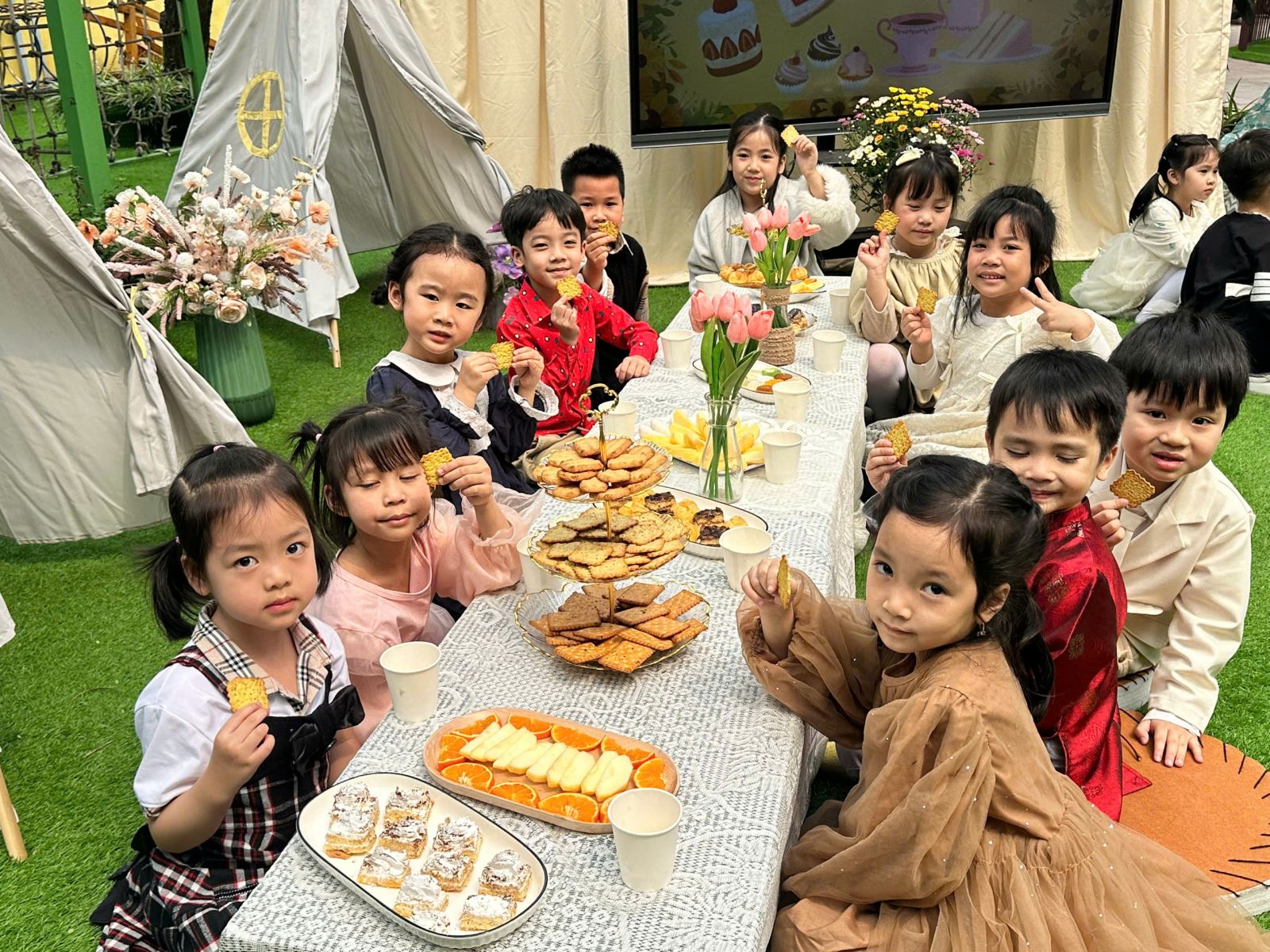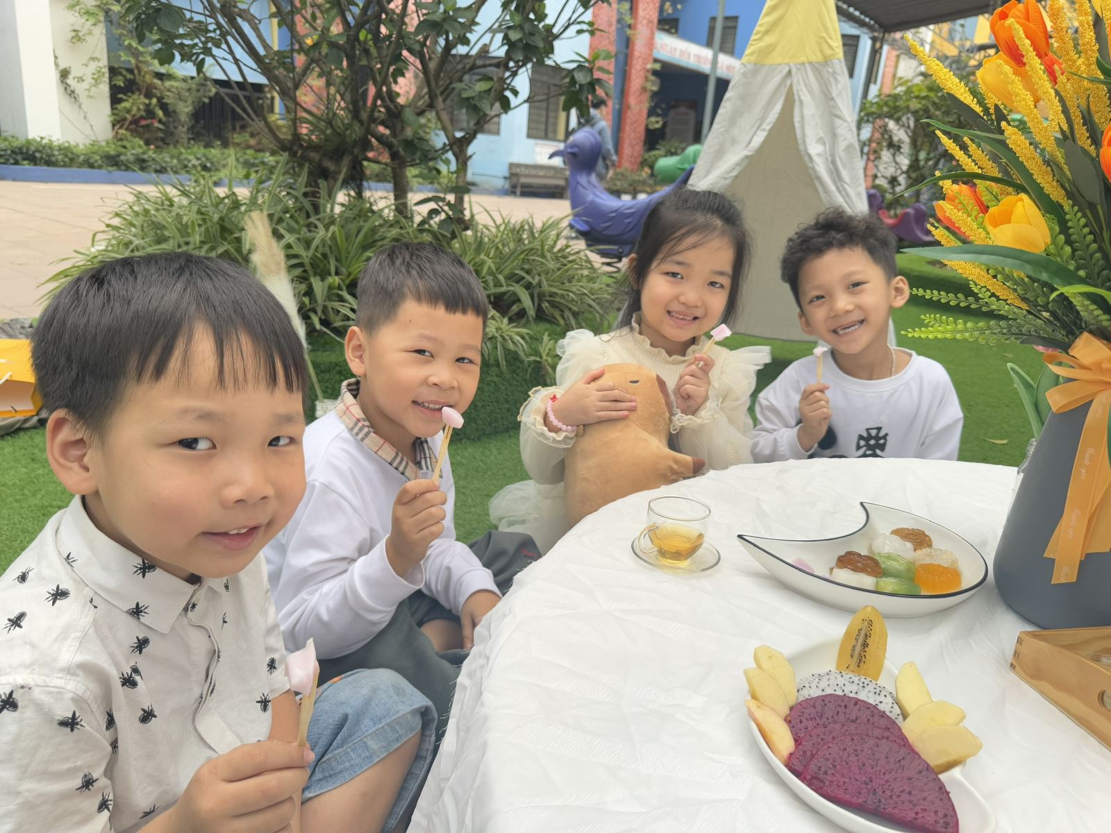 Qua hoạt động này, trẻ không chỉ được rèn luyện kỹ năng giao tiếp, ứng xử lịch sự mà còn học cách chia sẻ, hợp tác và tự tin thể hiện bản thân trước tập thể. Buổi tiệc khép lại trong tiếng cười giòn tan và những kỷ niệm đẹp, góp phần tạo nên một mùa xuân thật đáng nhớ đối với các bé khối mẫu giáo lớn.