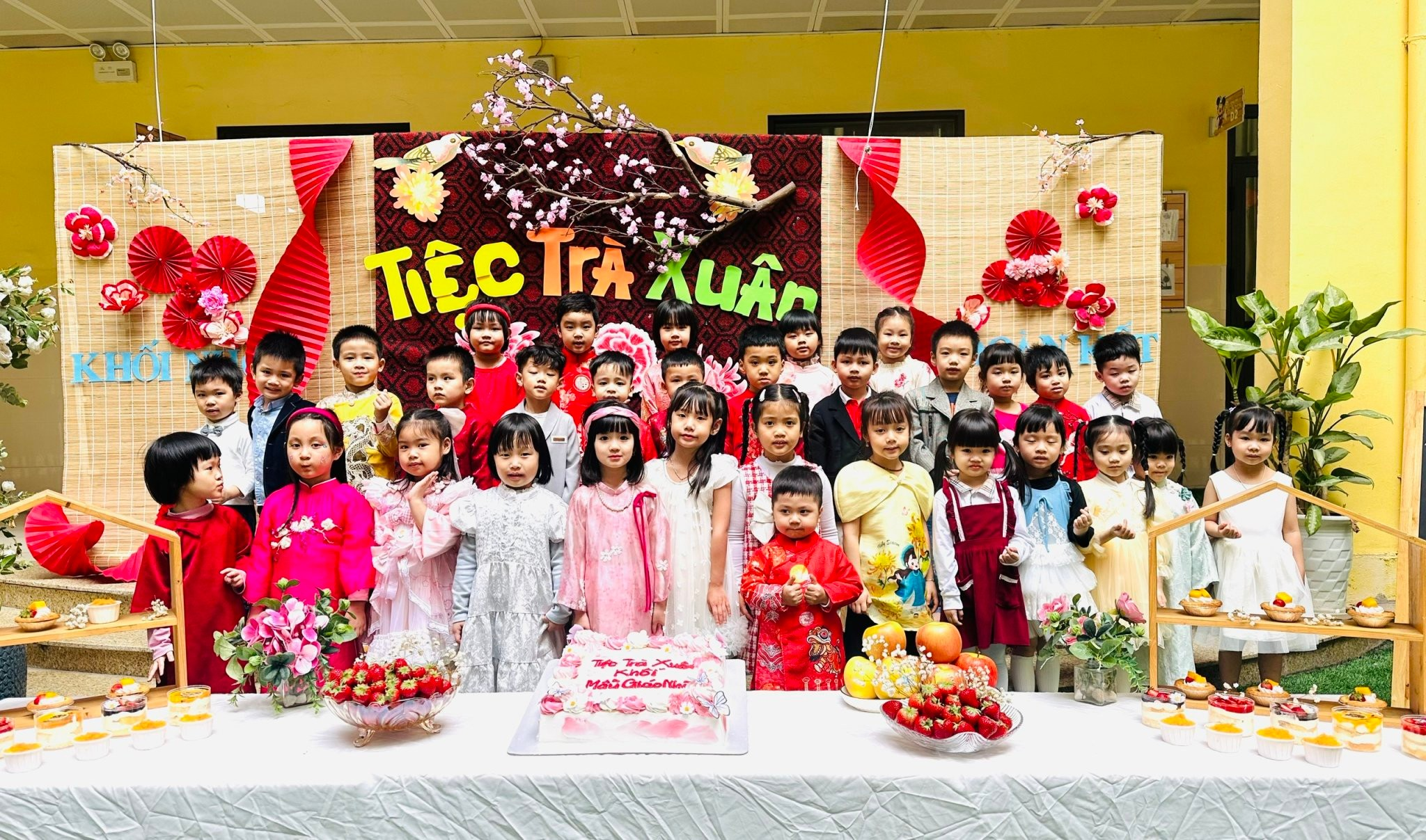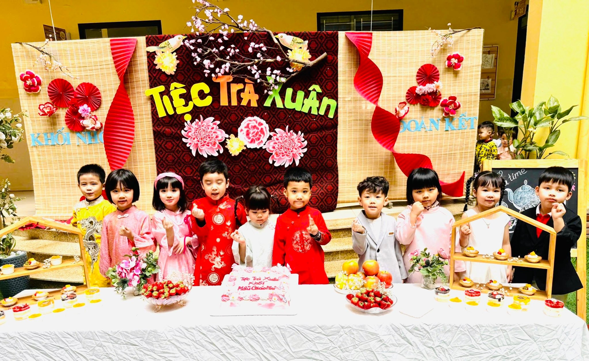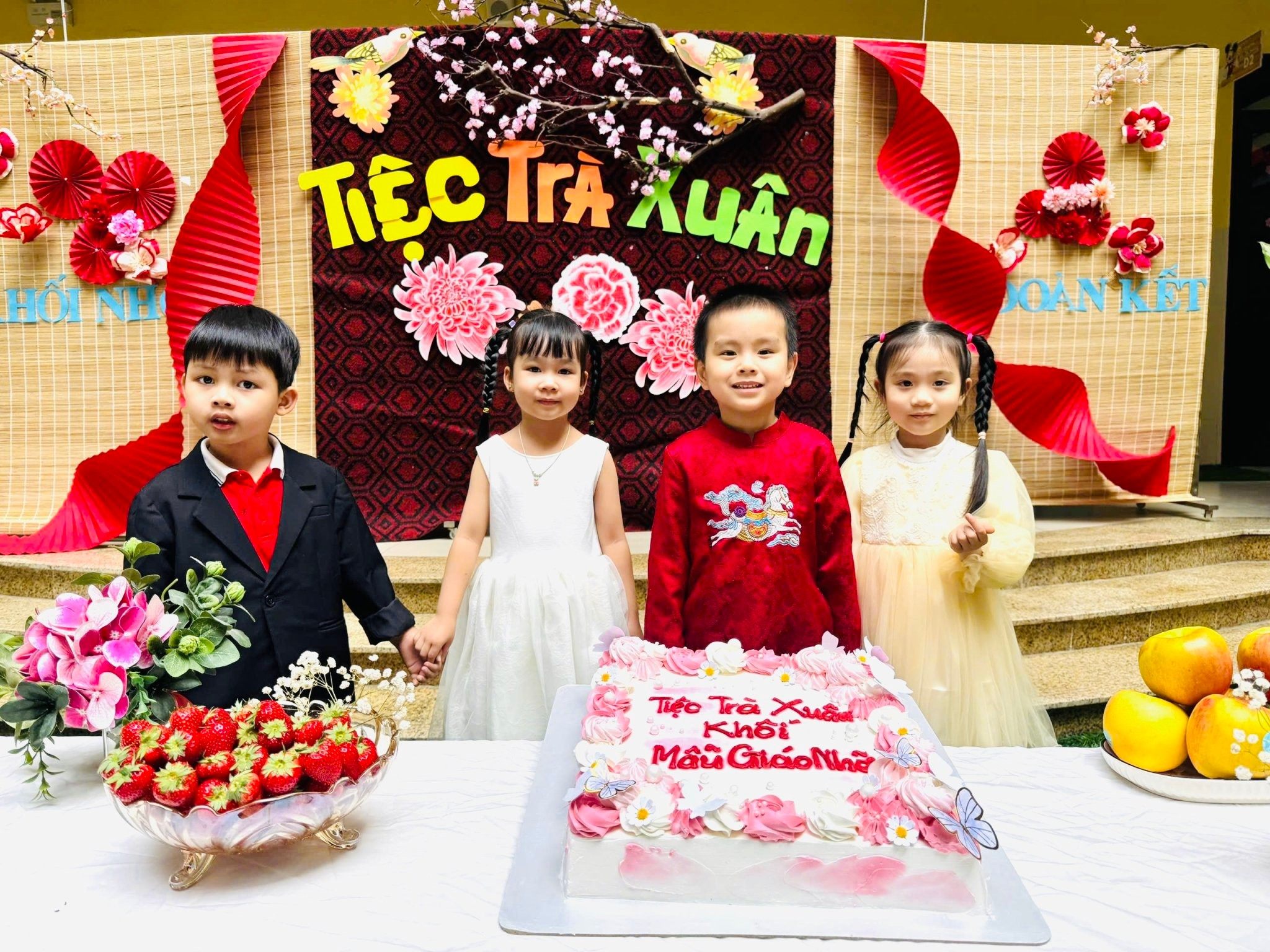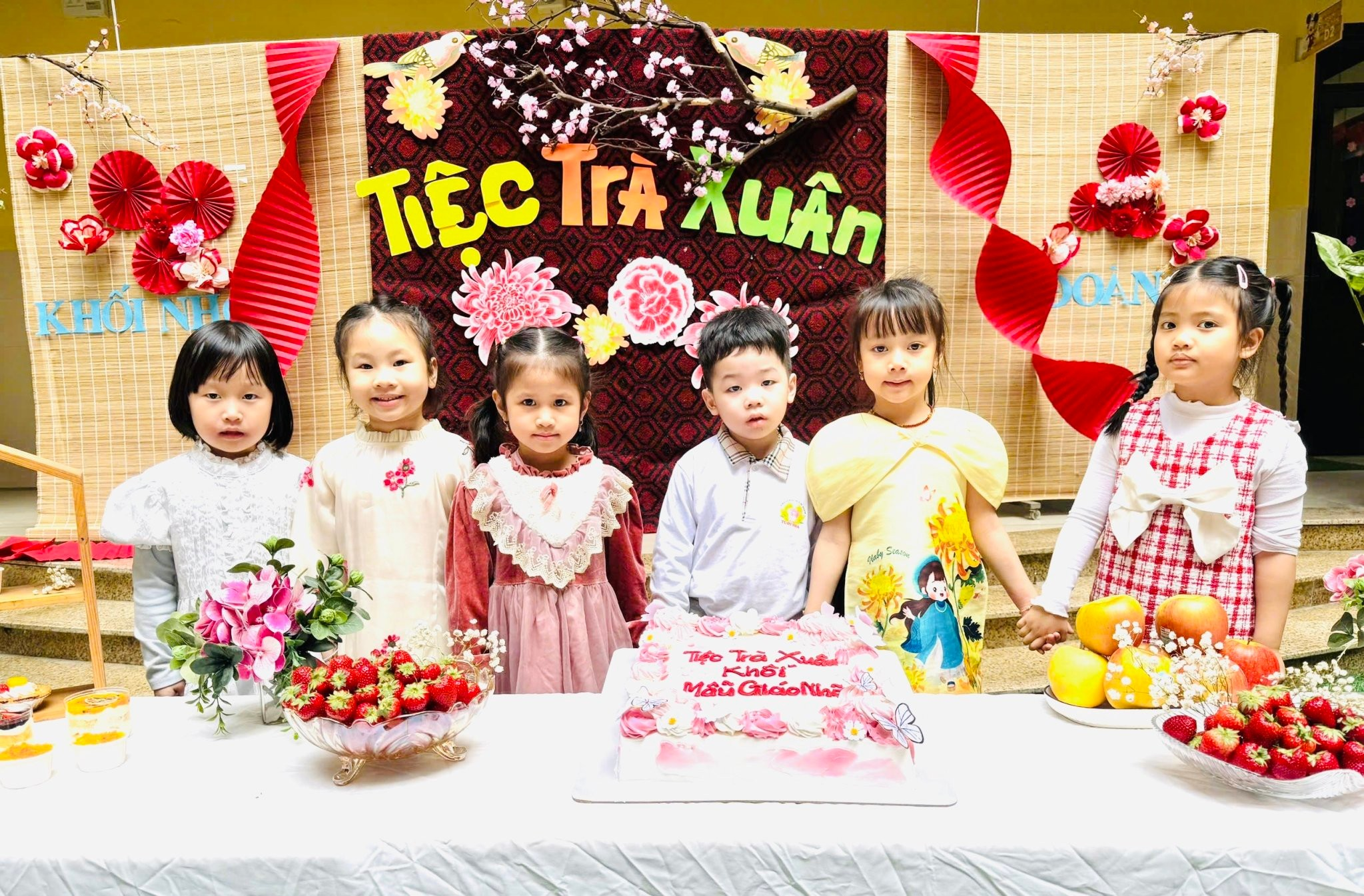 Hôm nay các bạn nhỏ lớp B2 cùng tham gia giao lưu Tiệc trà Xuân trong khối. Đây là cơ hội để các con được gặp gỡ, trò chuyện với các bạn cùng khối.