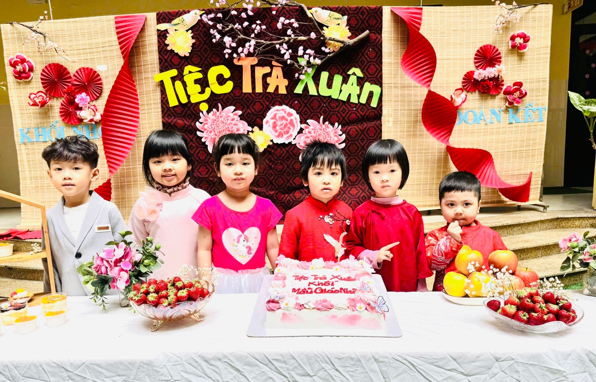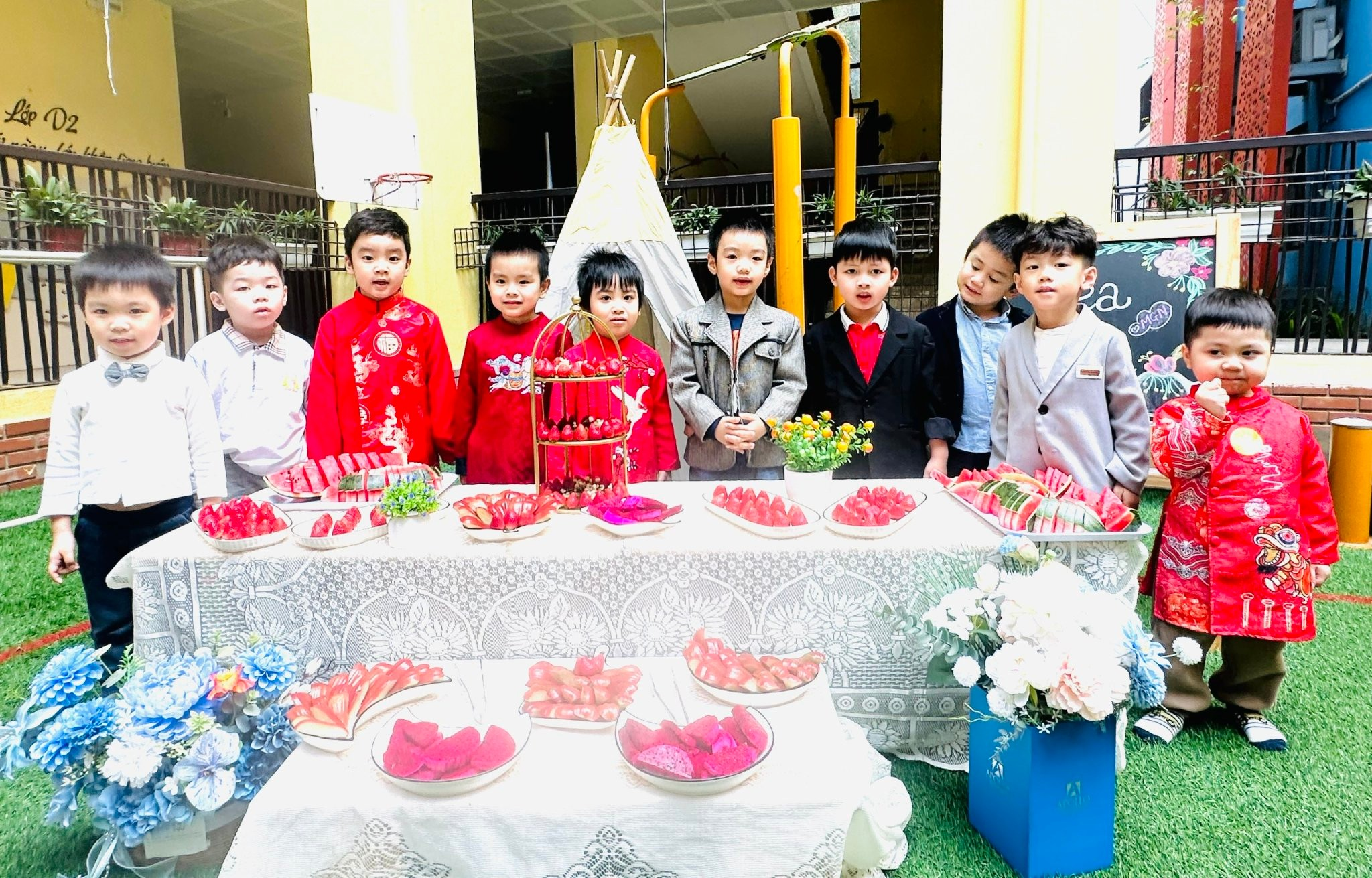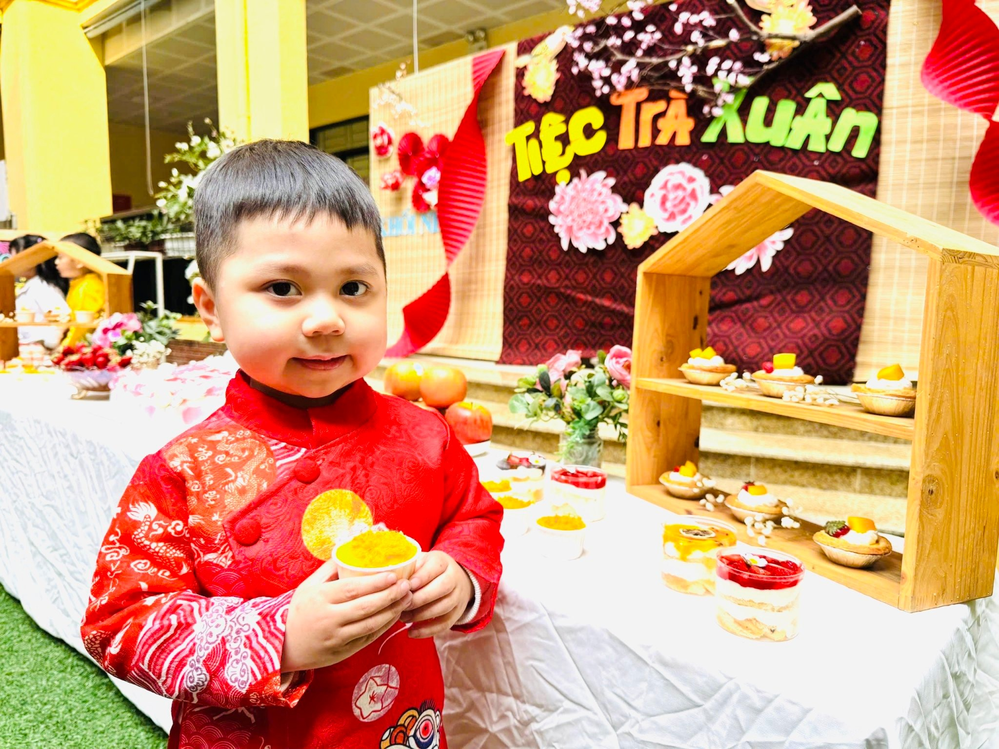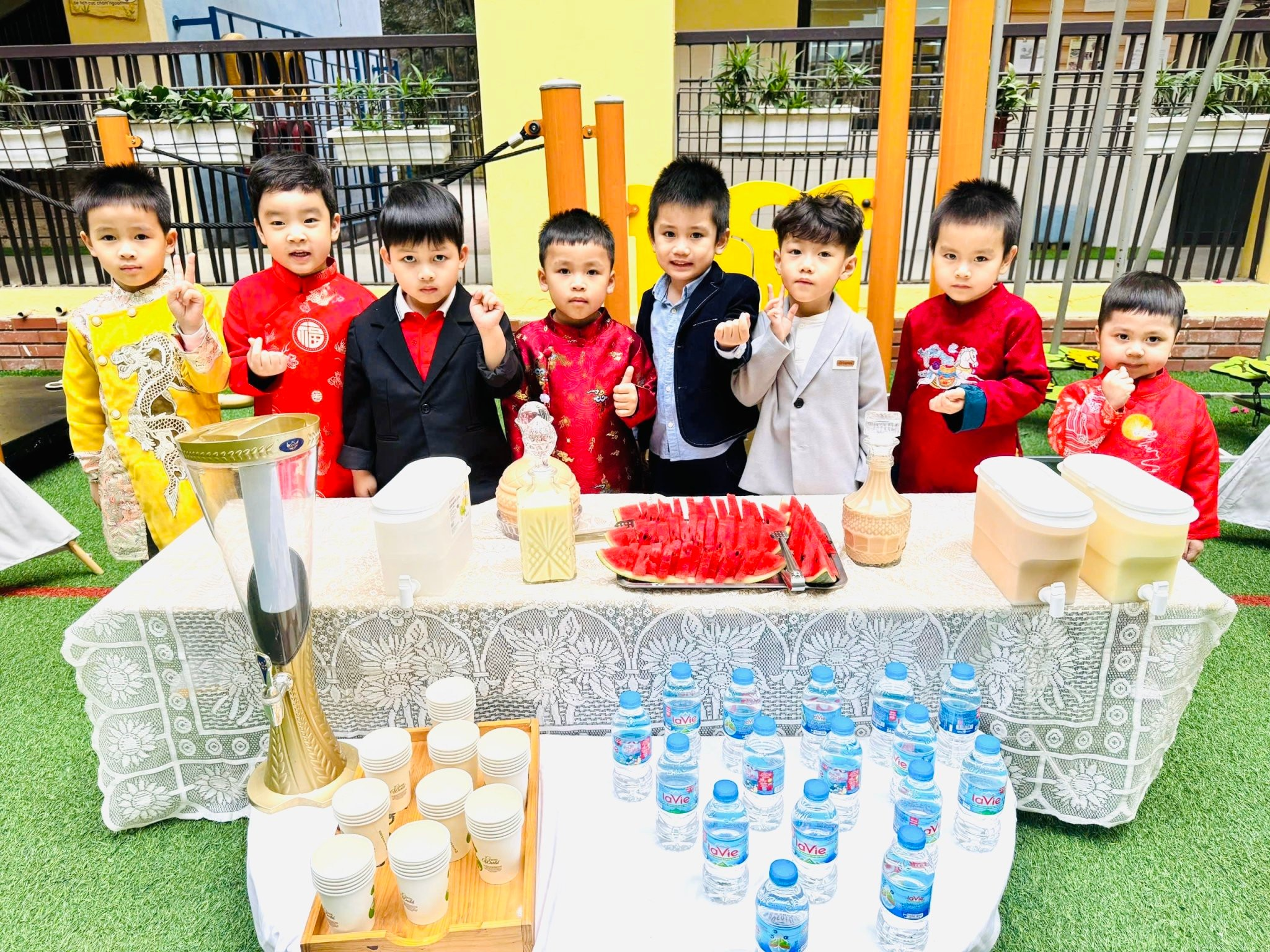Hôm nay các bạn nhỏ lớp B2 cùng tham gia giao lưu Tiệc trà Xuân trong khối. Đây là cơ hội để các con được gặp gỡ, trò chuyện với các bạn cùng khối.