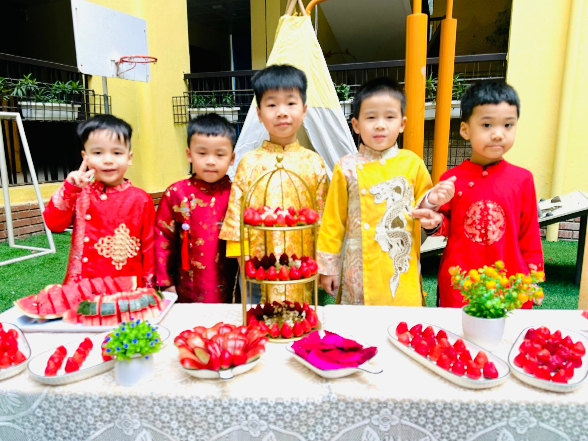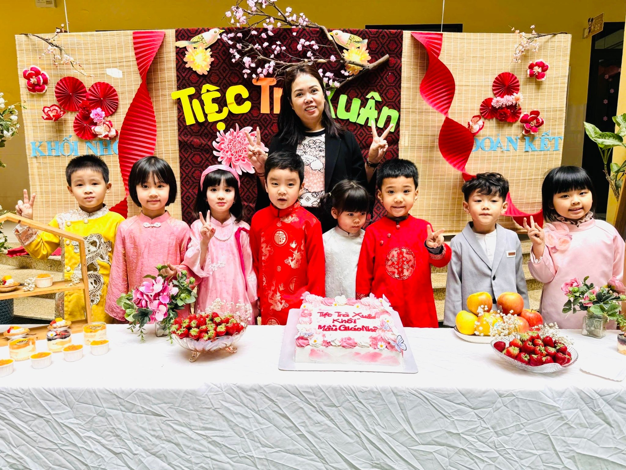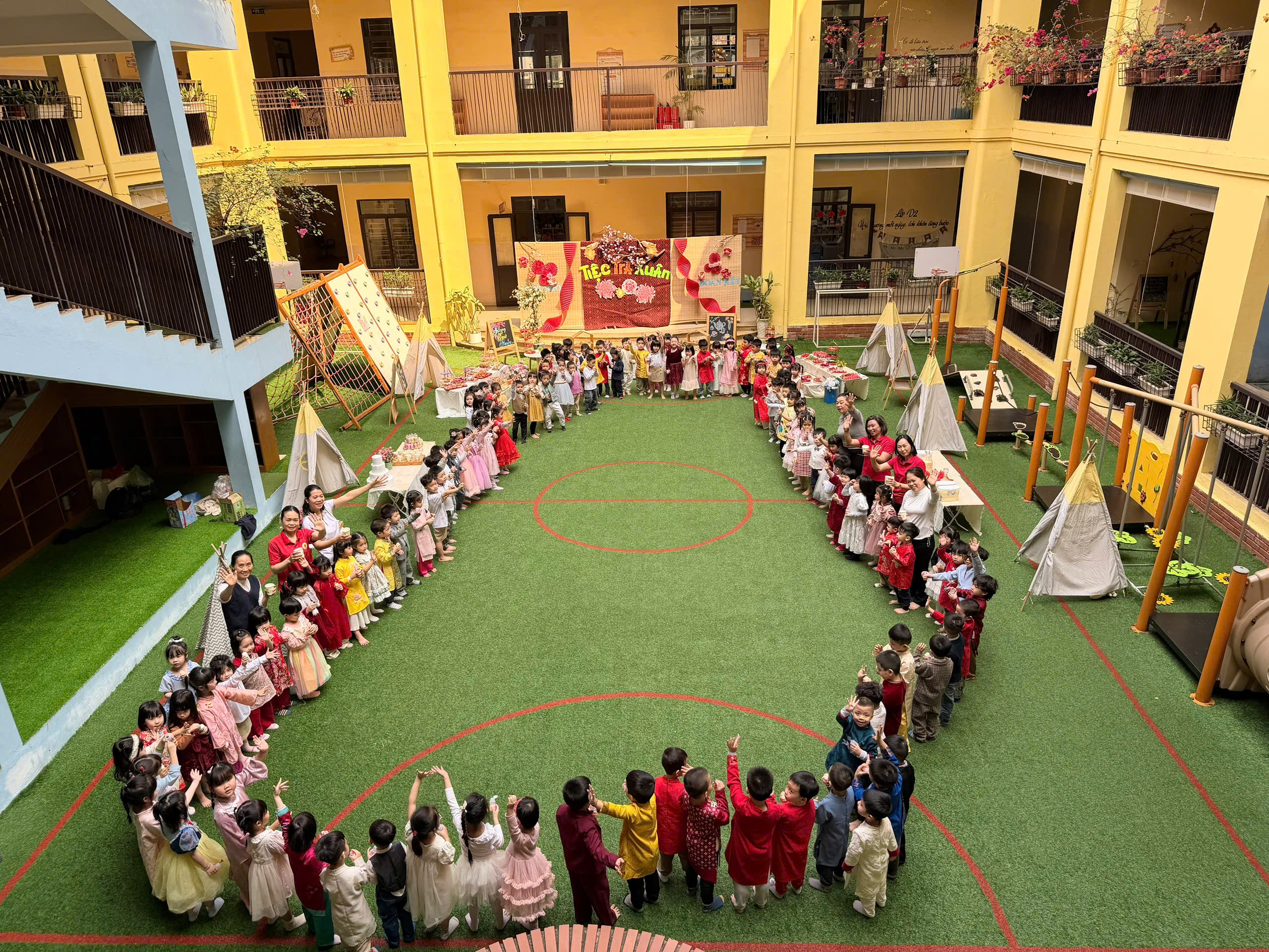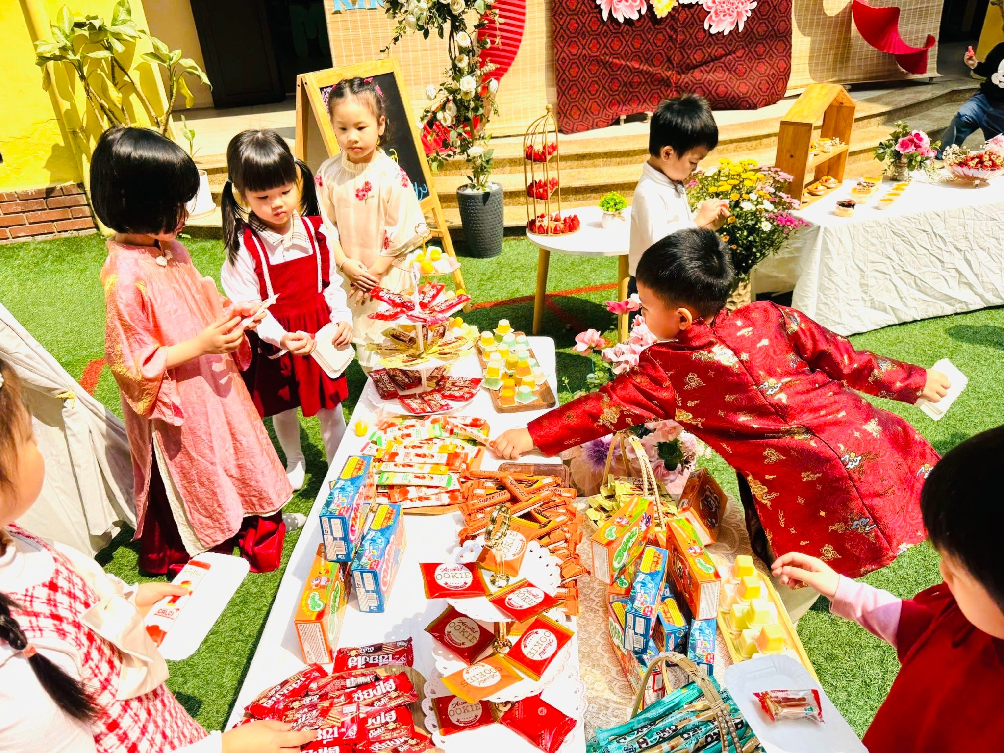 Hôm nay các bạn nhỏ lớp B2 cùng tham gia giao lưu Tiệc trà Xuân trong khối. Đây là cơ hội để các con được gặp gỡ, trò chuyện với các bạn cùng khối.