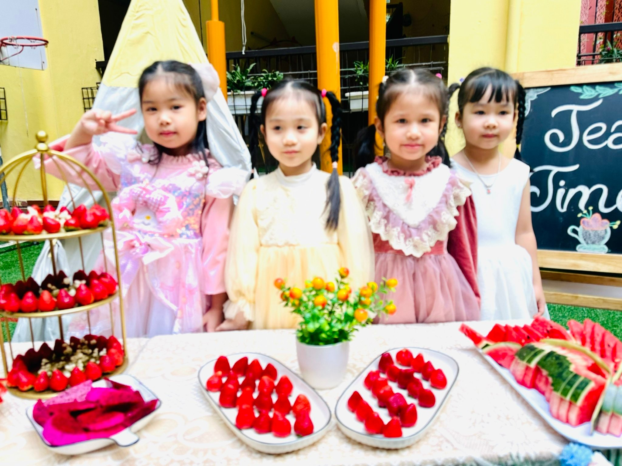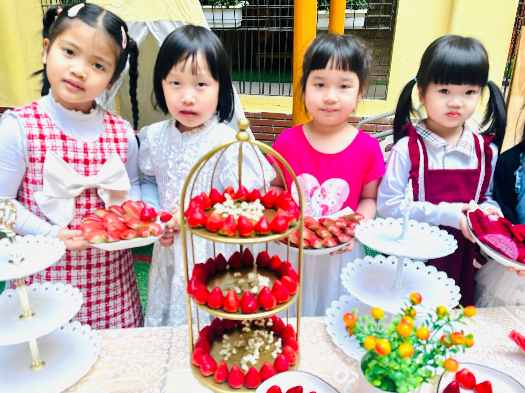 Các bé rất vui khi được tham gia tiệc trà cùng các bạn trong khối