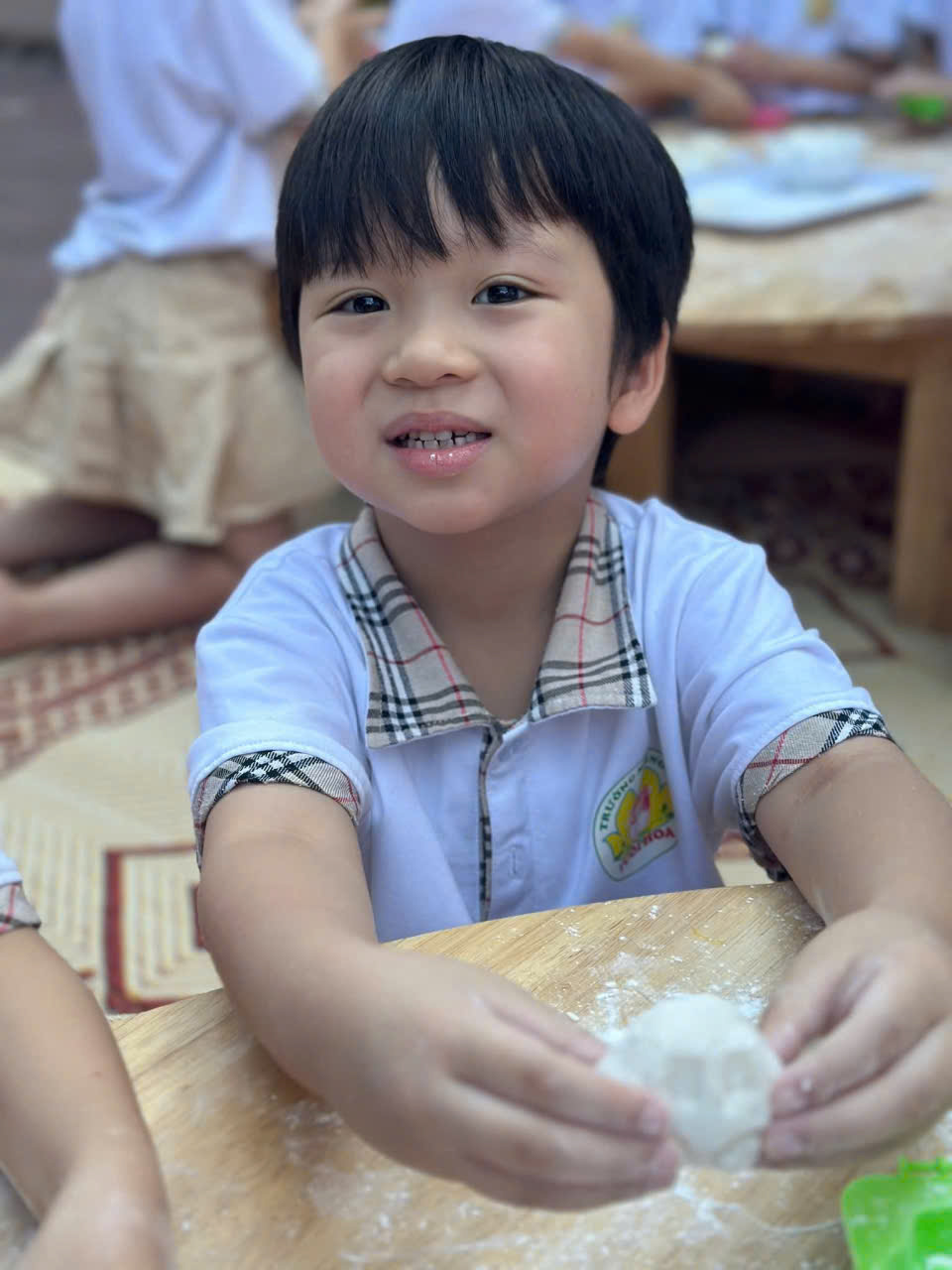 Các bạn nhỏ A2 được hóa thân thành Chị Hằng, Chú Cuội, cùng nhau bày mâm ngũ quả, làm đèn ông sao, nặn bánh dẻo, làm mặt nạ thật xinh xắn.