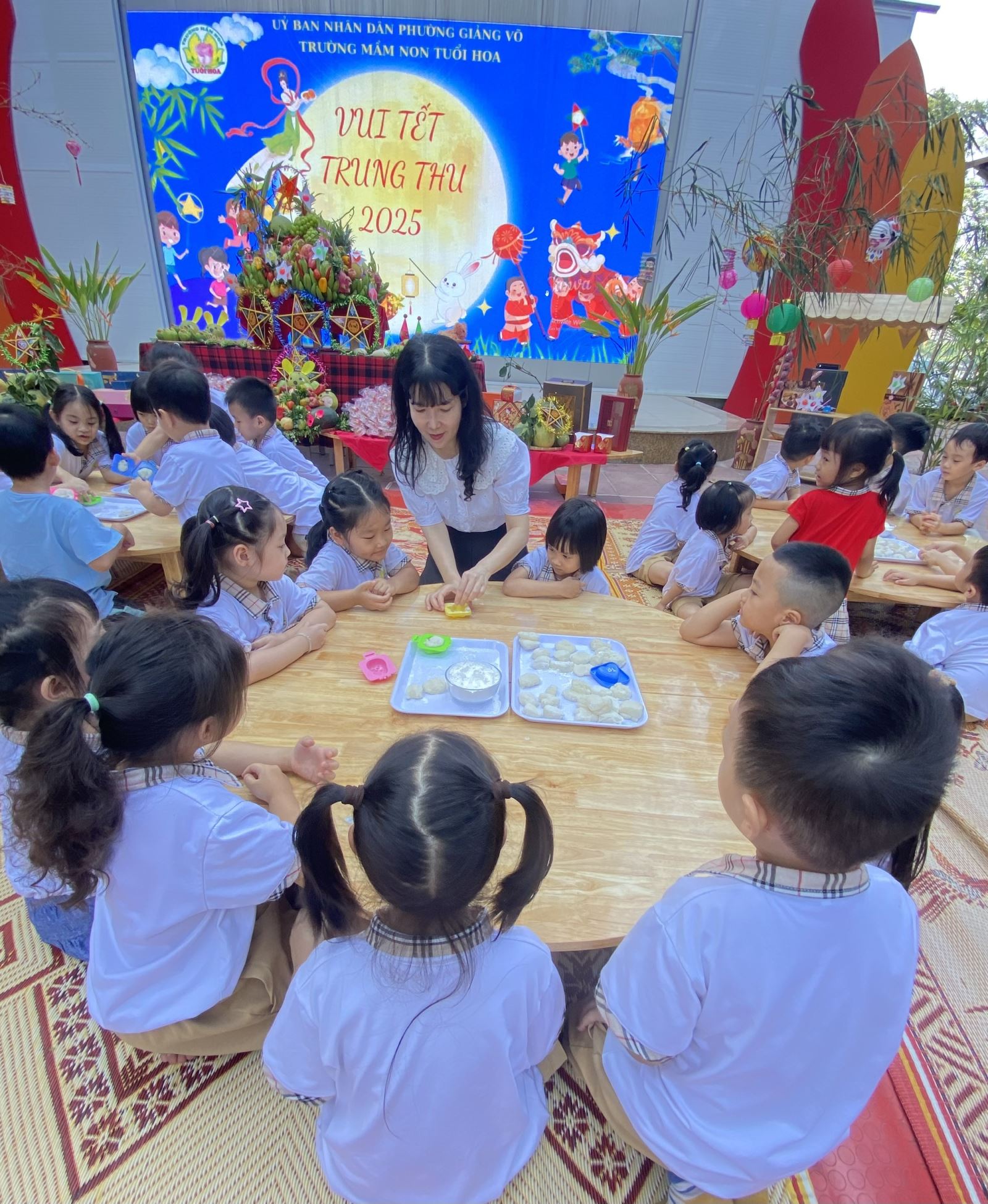Các con được tham gia nhiều hoạt động trải nghiệm vô cùng thú vị: tự tay làm bánh nướng, sáng tạo đồ chơi trung thu, thưởng thức những tiết mục văn nghệ đặc sắc và còn được gặp gỡ, giao lưu cùng chị Hằng và chú Cuội – những nhân vật gắn liền với đêm hội trăng rằm.🌙🎶🥮