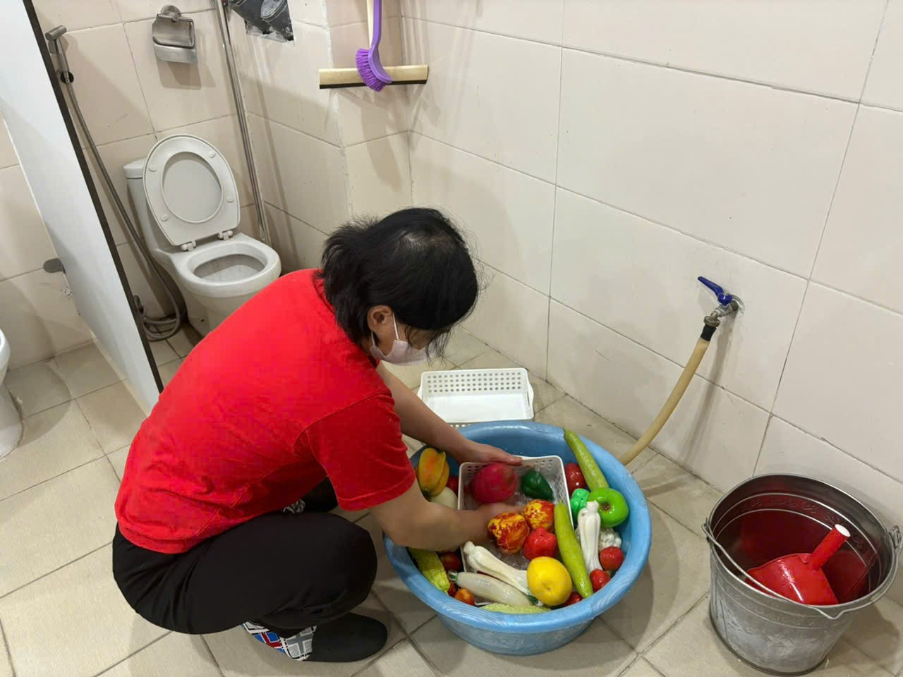 Ảnh: Giáo viên vệ sinh ban công