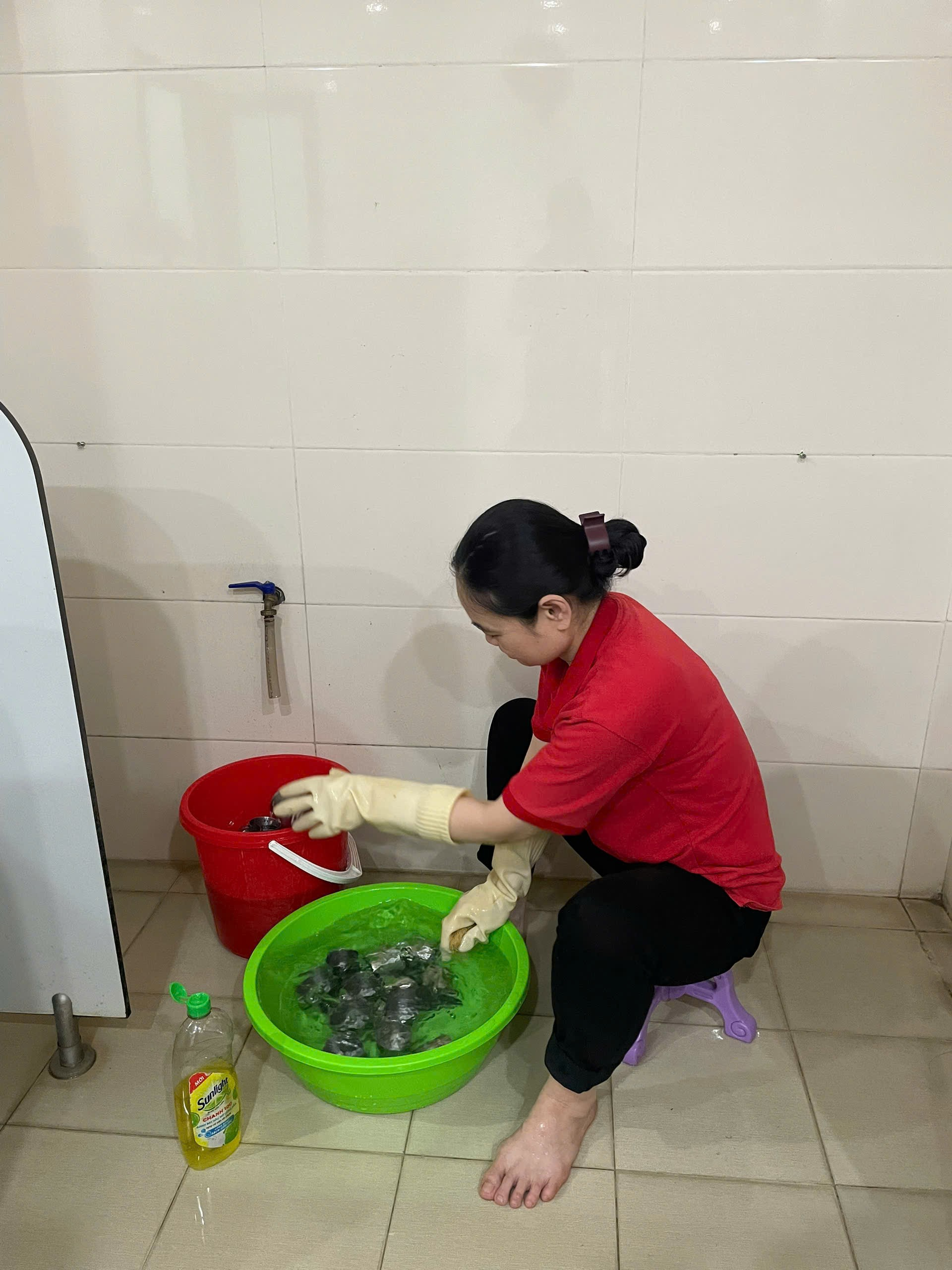 Ảnh: Giáo viên vệ sinh ca cốc.