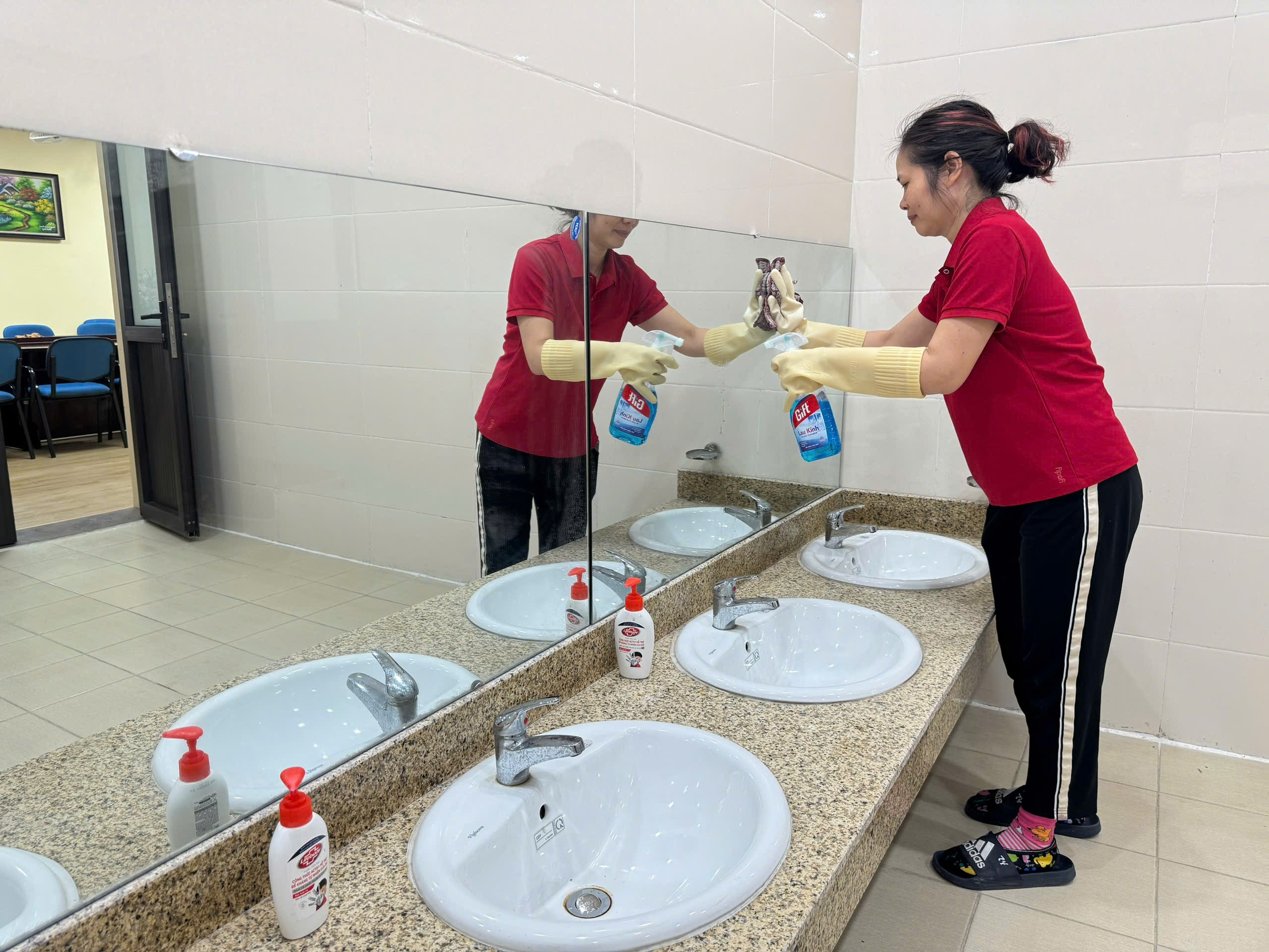 Ảnh: Cô vệ sinh các phòng chức năng