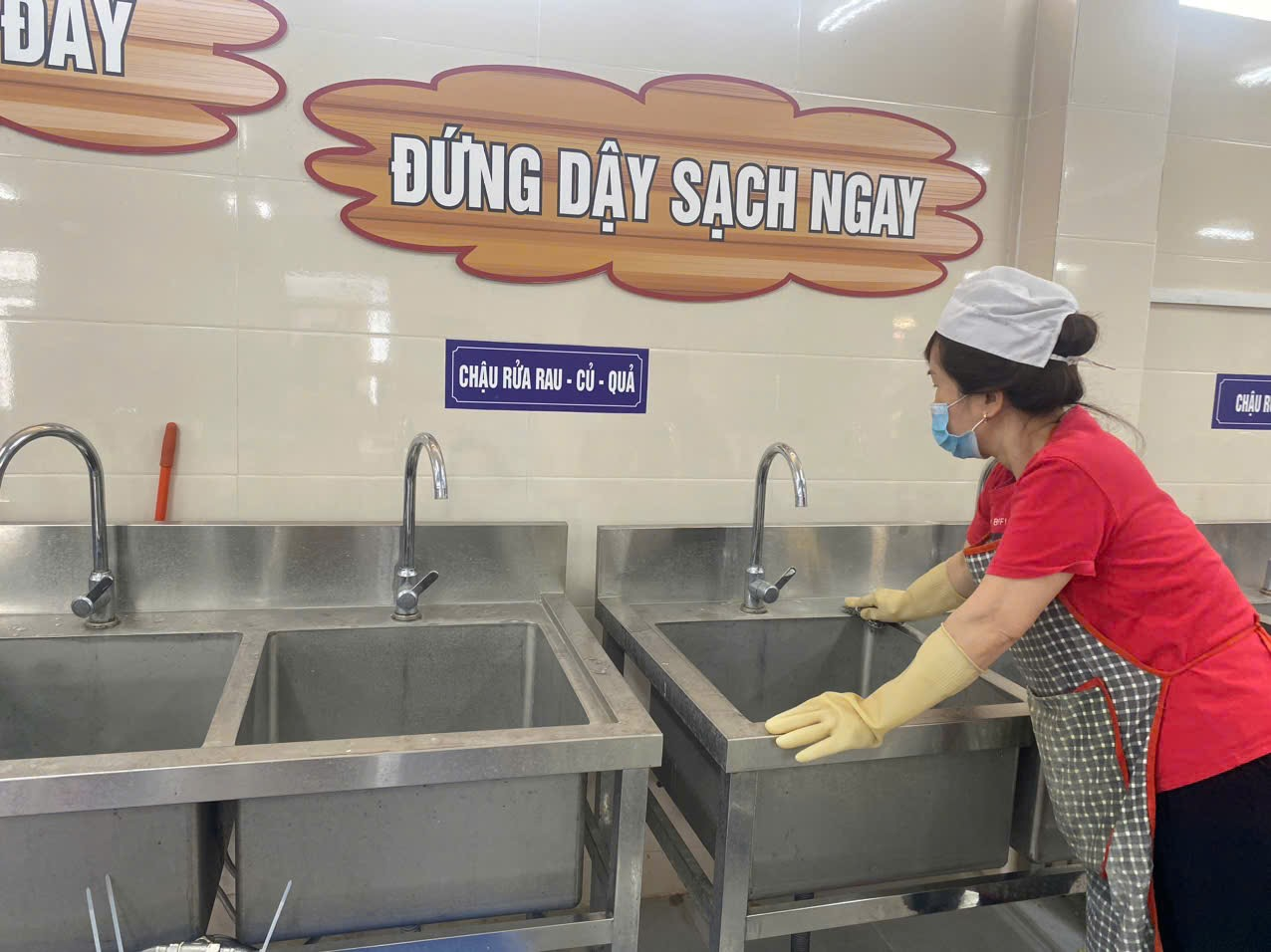 Ảnh: vệ sinh khu vực bếp ăn nhà trường