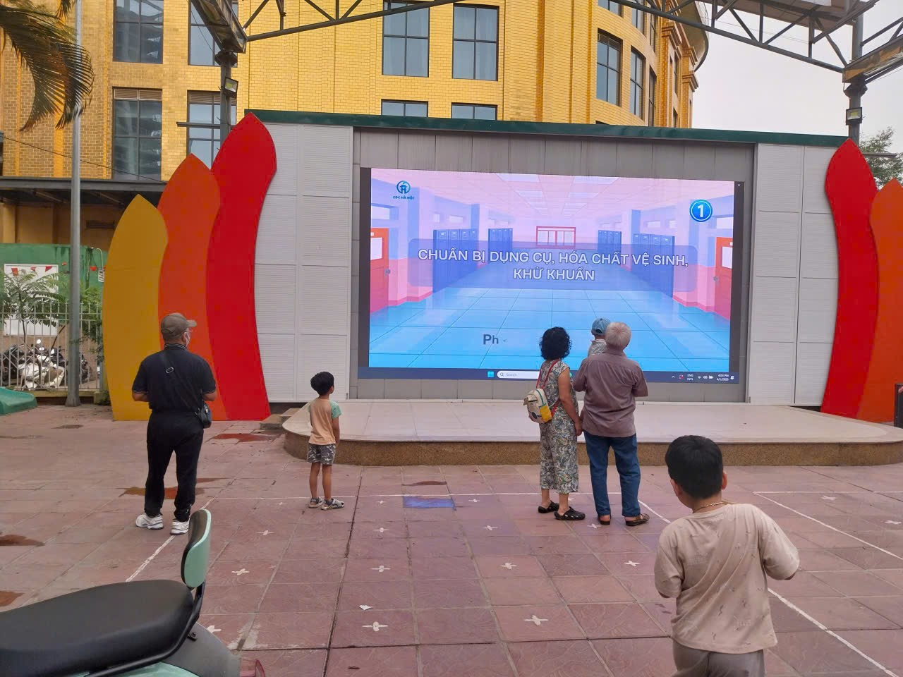 Ảnh tuyên truyền phòng chống dịch tới phụ huynh qua màn hình led sân trường