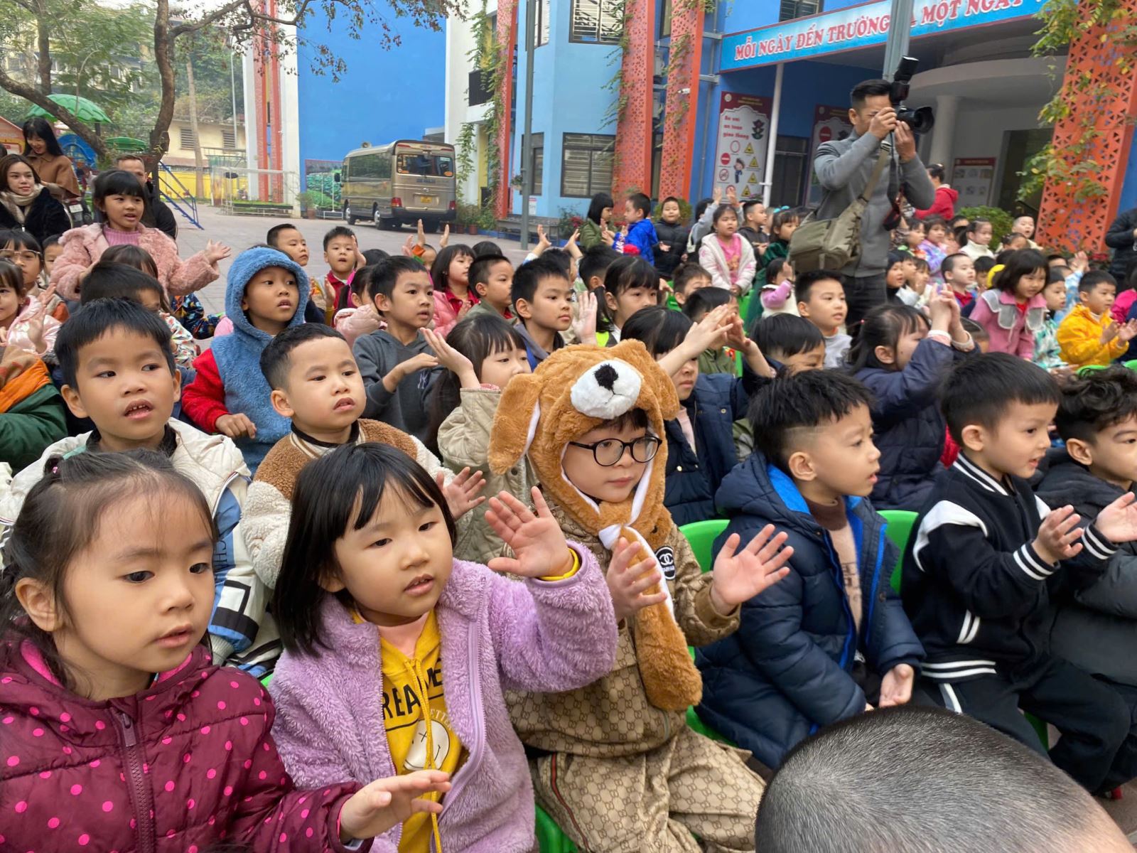 Nhằm giúp trẻ cảm nhận loại hình nghệ thuật dân gian, từ đó phát triển khả năng cảm thụ nghệ thuật của trẻ. Hôm nay, các bạn nhỏ lớp A1 đã có buổi trải nghiệm xem múa rối tại trường.
