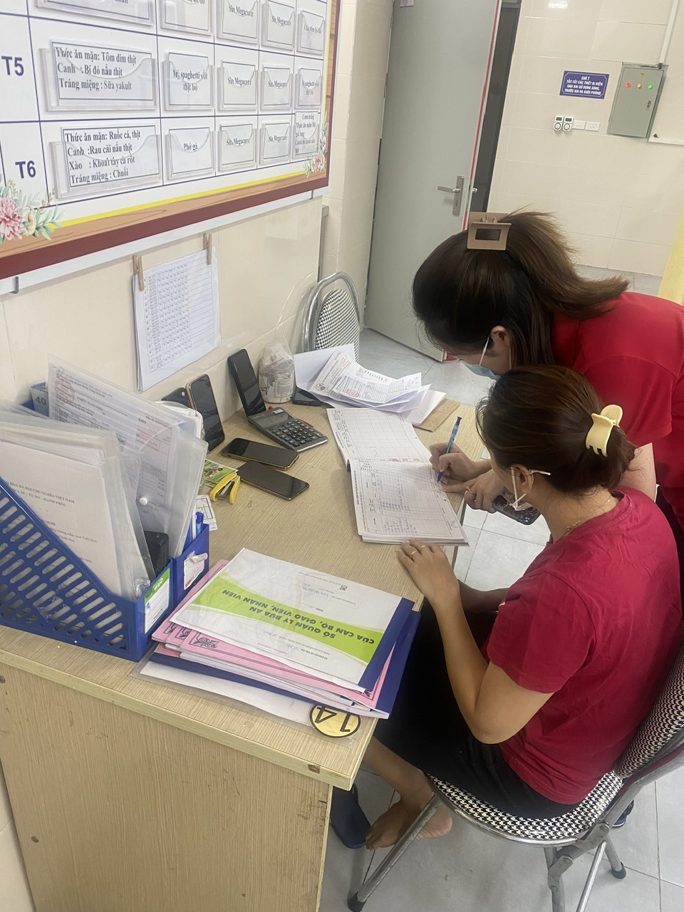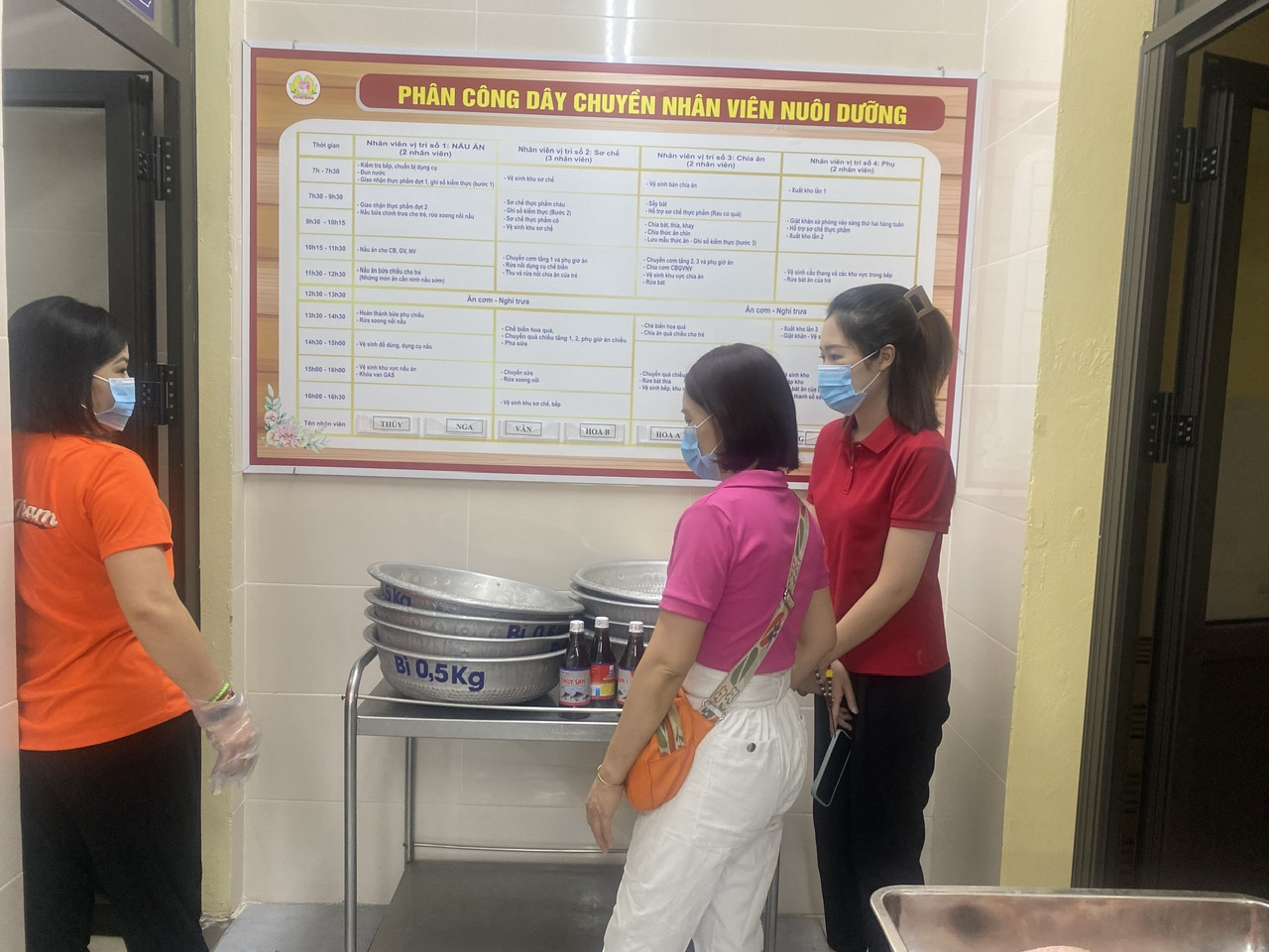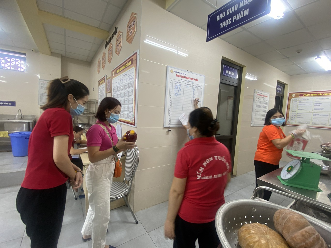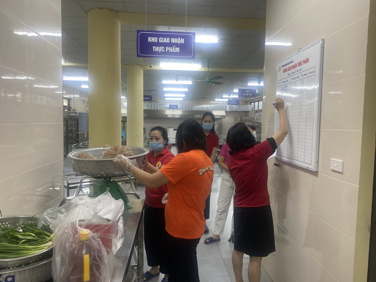 nhận và kiểm tra chất lượng thực phẩm, số lượng thực phẩm có ký xác nhận đầy đủ vào sổ giao nhận thực phẩm. Sau đây là một số hình ảnh buổi giao nhận thực phẩm: