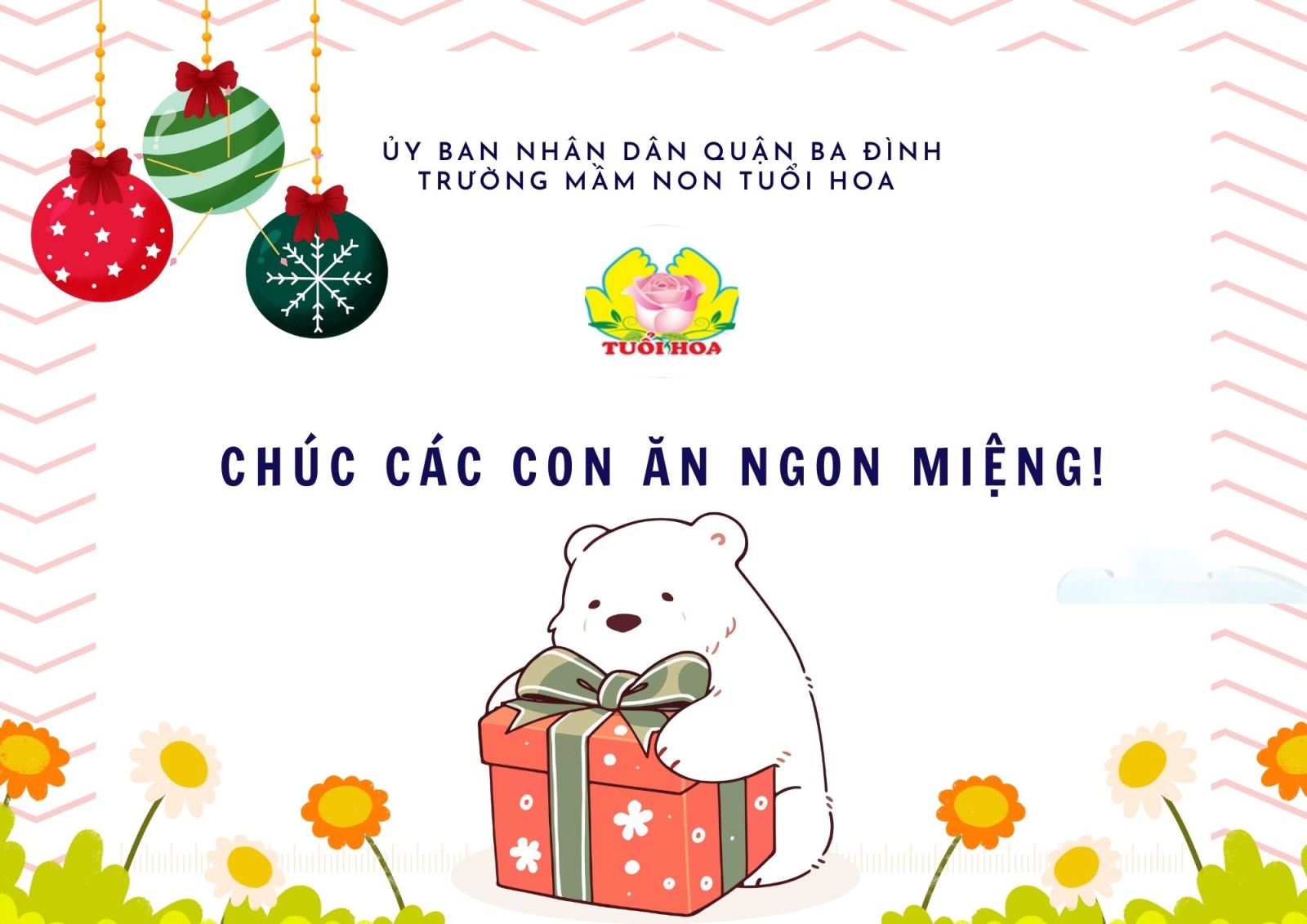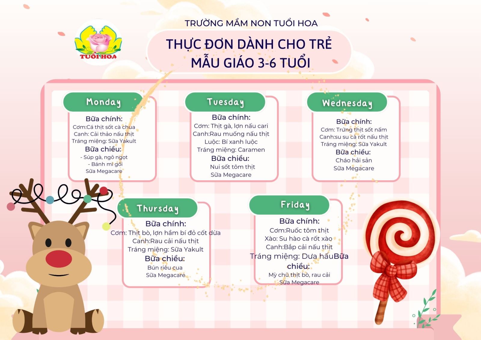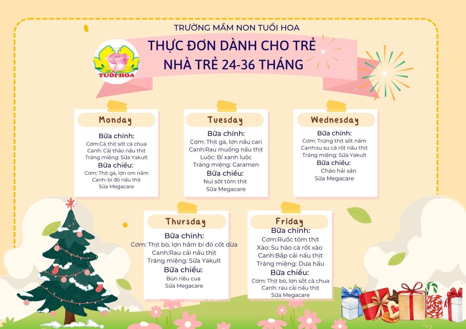 Mời các quý phụ huynh tham khảo thực đơn dành cho bé ở trường Mầm non Tuổi Hoa Tuần 2 tháng 12 từ ngày 09/12/2024 đến ngày 13/12/2024 Các bé ăn ngon miệng là niềm vui của các bác, các cô!